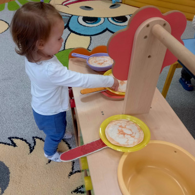 Pomysłów było sporo, a zabawa z patelniami, naczyniami i kuchenką nie miała końca.🥞😍