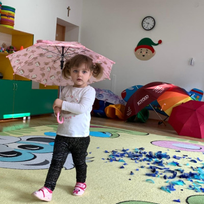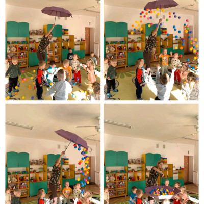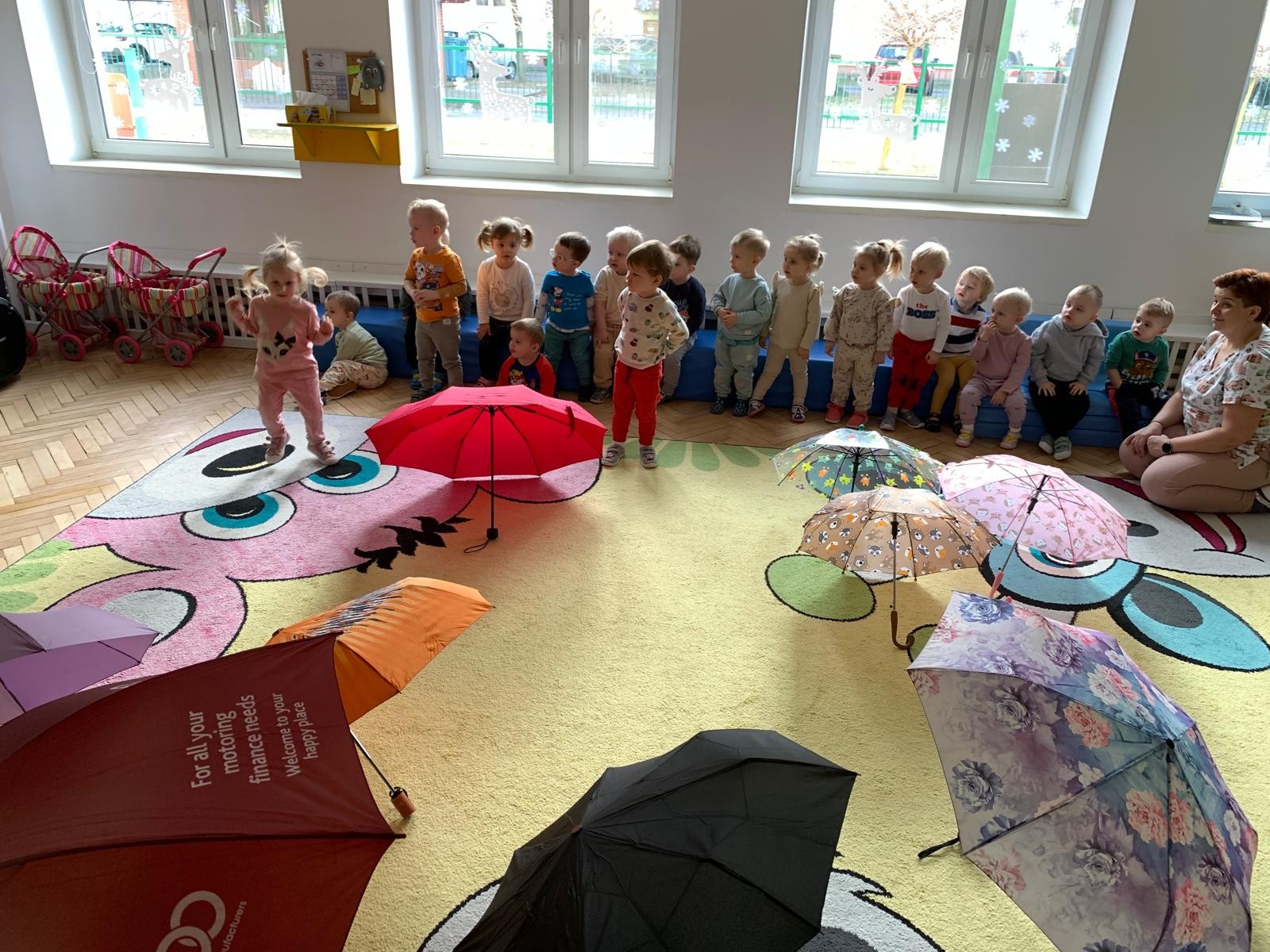 10 lutego obchodzimy Międzynarodowy Dzień Parasola☂️☂️☂️, który był w naszej grupie doskonałą okazją do zapoznania się ze zjawiskiem pogodowym jakim jest deszcz 🌧️ oraz z przydatną podczas jego opadów parasolką🌂☂️. Podczas tego dnia nasze MISIE 🐻 miały możliwość nauki właściwego posługiwania się parasolem, a także uczestniczenia w zabawach z jego użyciem.