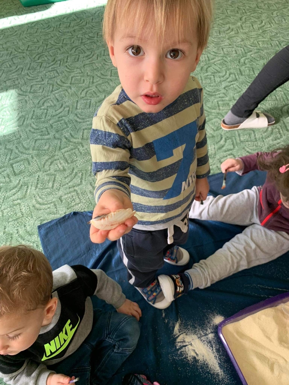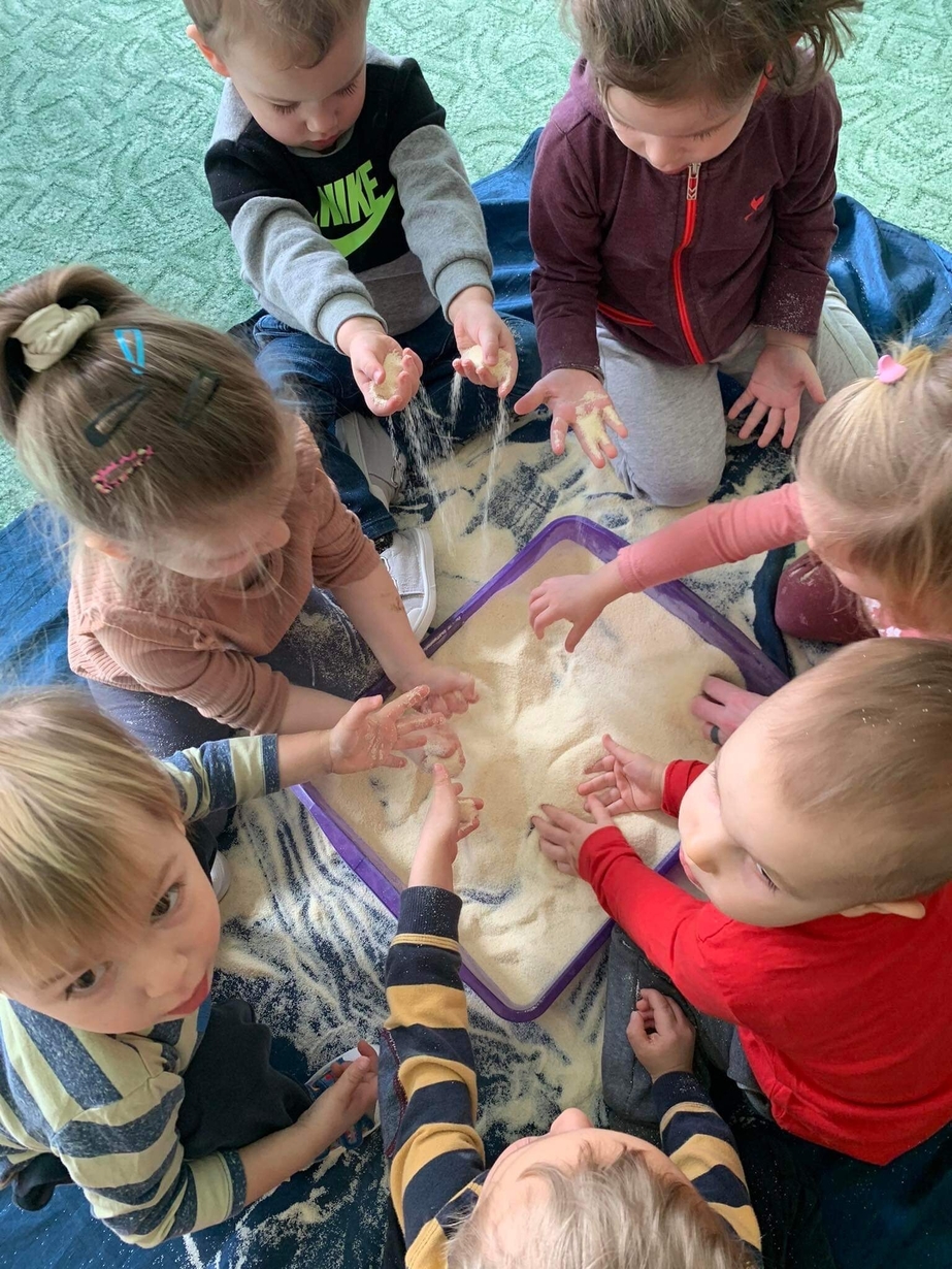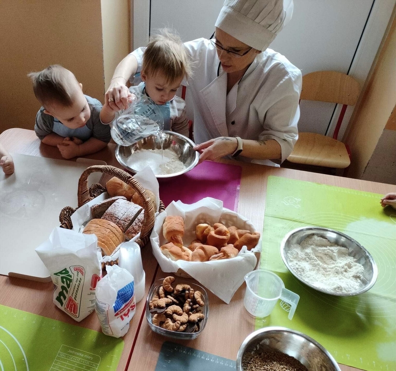 Tego dnia Misie? dowiedziały się na czym polega praca piekarza i cukiernika?? . Maluszki z zaciekawieniem słuchały opowiadania jak powstaje chleb oraz zapoznały się ze składnikami potrzebnymi do jego wypieku . Misie miały okazję wcielić się w rolę prawdziwego piekarza - robiąc własne ciasto z masy solnej . To była wspaniała zabawa . ?Uwieńczeniem zajęć była degustacja rogalików ?
