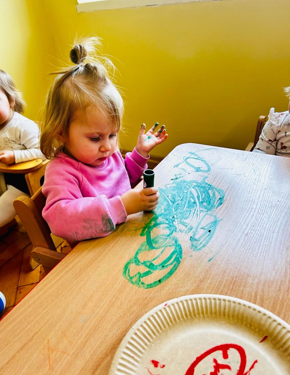 talerzykach farbkami w sztyfcie. Jak zawsze prace naszych Biedroneczek zawisły na naszej tablicy. ?