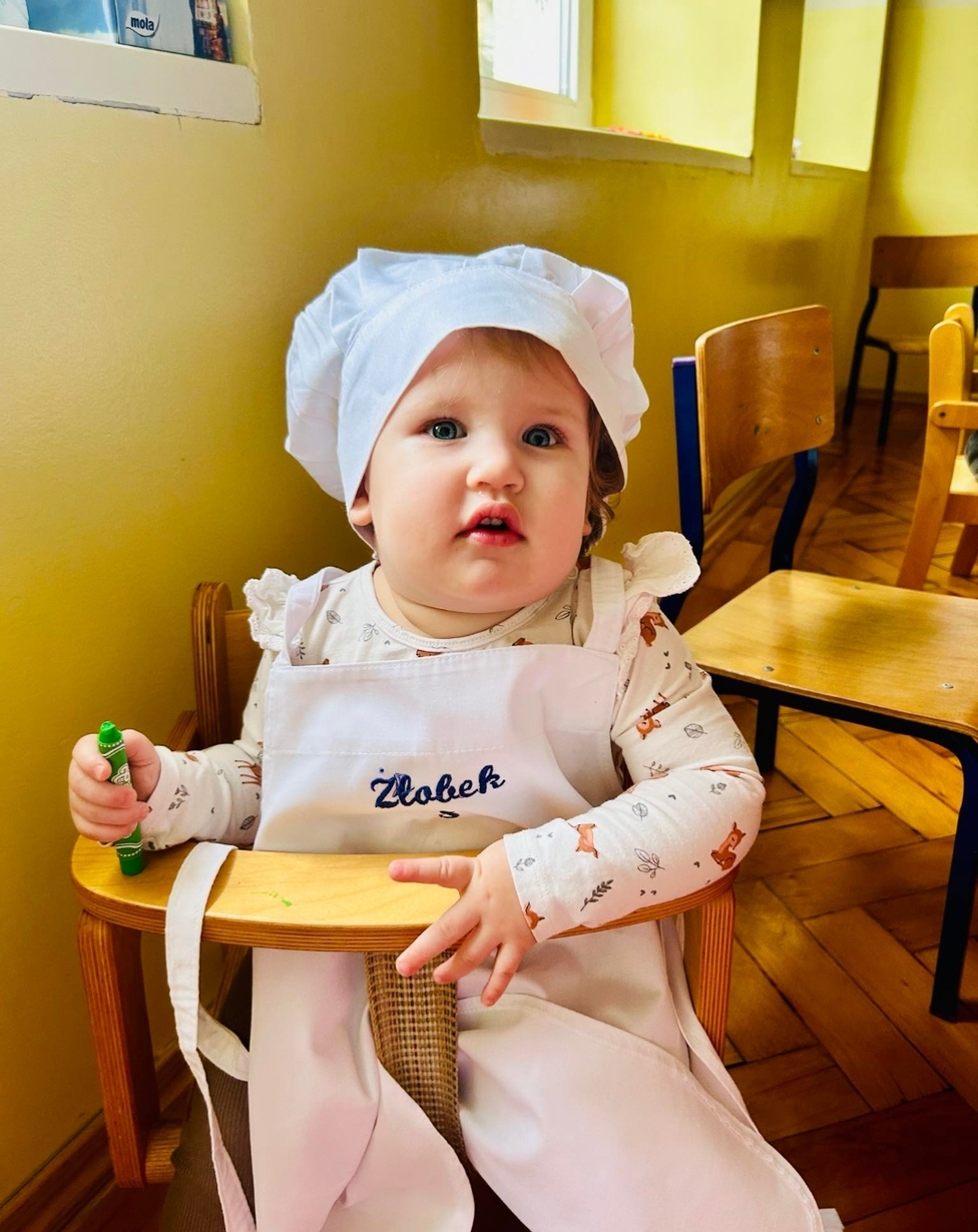 przystało w fartuszkach i kucharskich czapeczkach. Wielką frajdę dzieciaczkom również sprawiło kolorowanie pizzy na papierowych