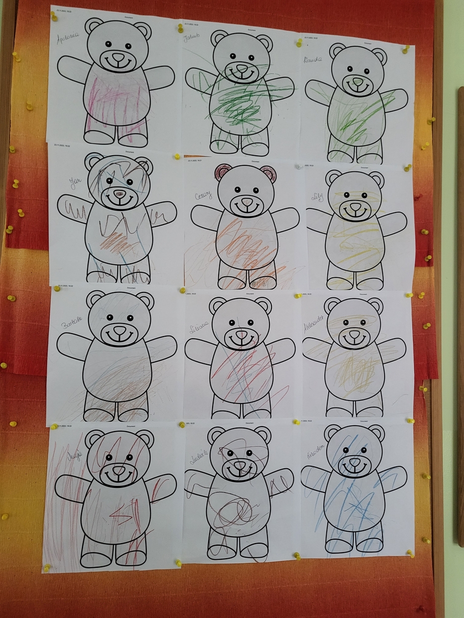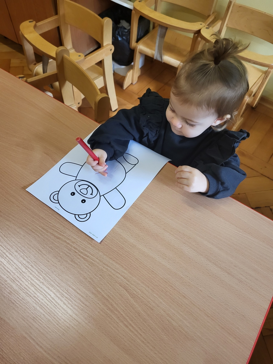 Biedroneczki kolorowały obrazek misia a na koniec dostały dyplomik przyjaciela Misia