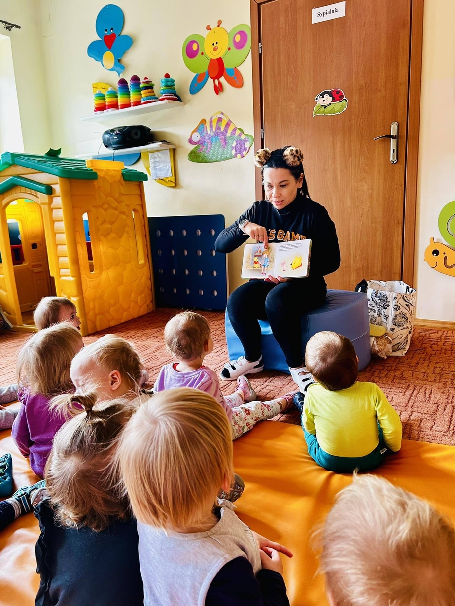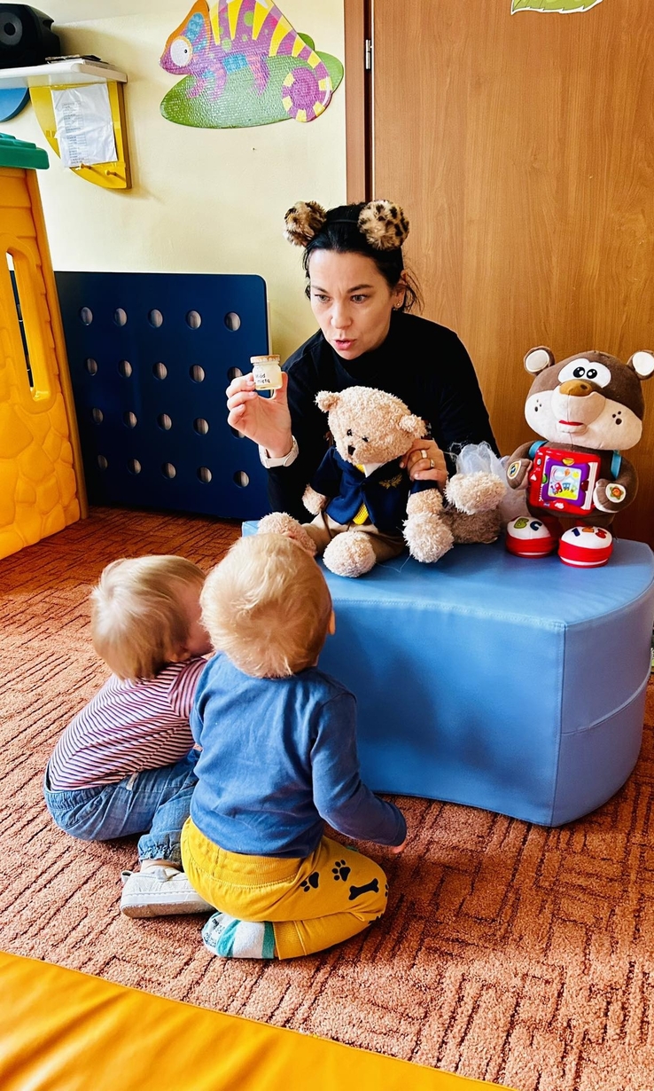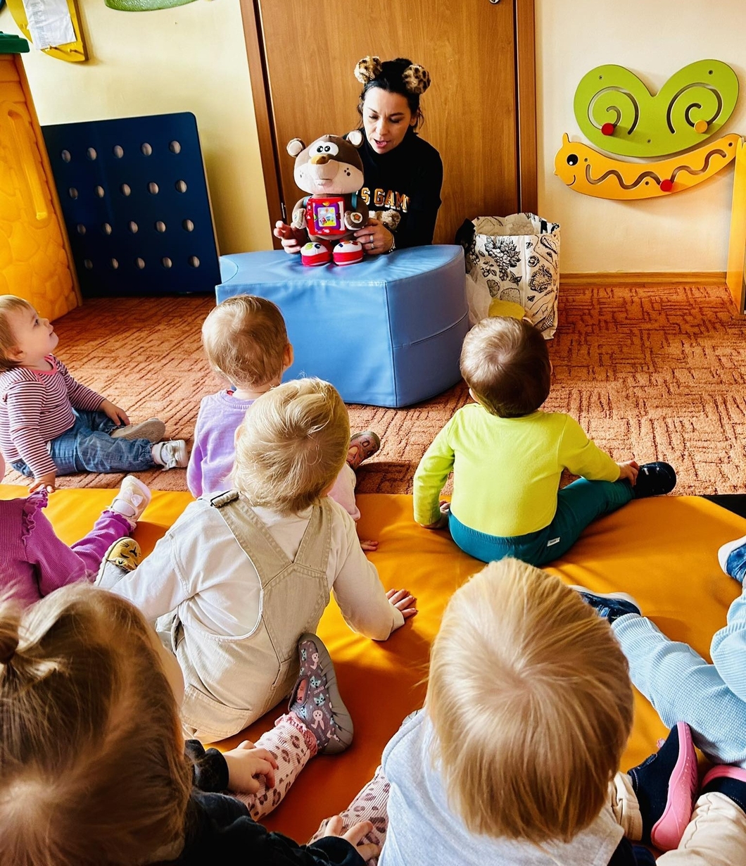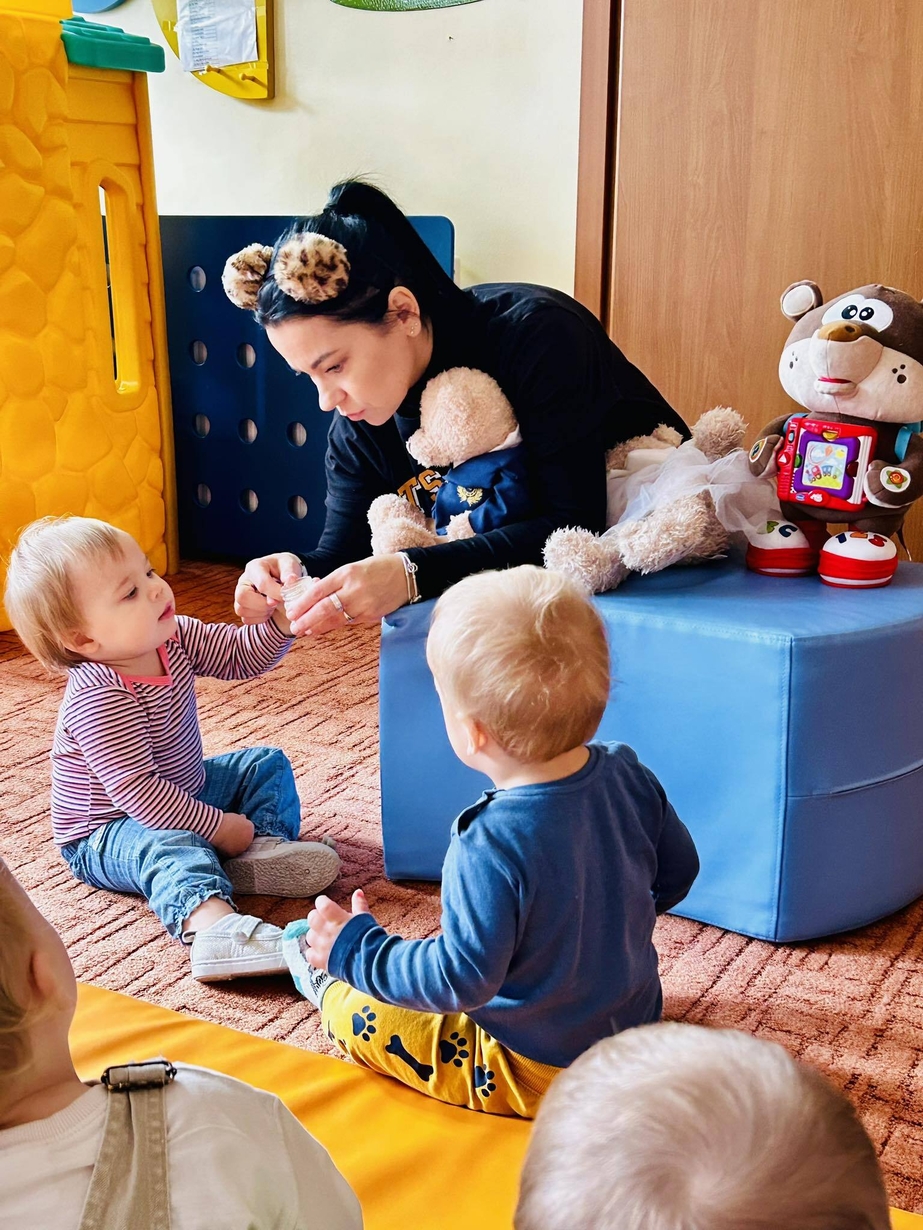 Dzieci przyniosły do żłobka Swoje ukochane pluszaczki. Podczas zajęć słuchały bajeczki o Kubusiu puchatku, próbowały miodu, oraz składaliśmy Misia z kółeczek.