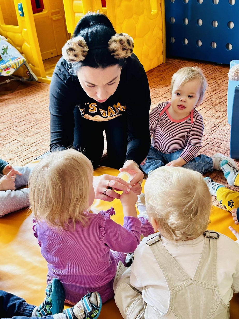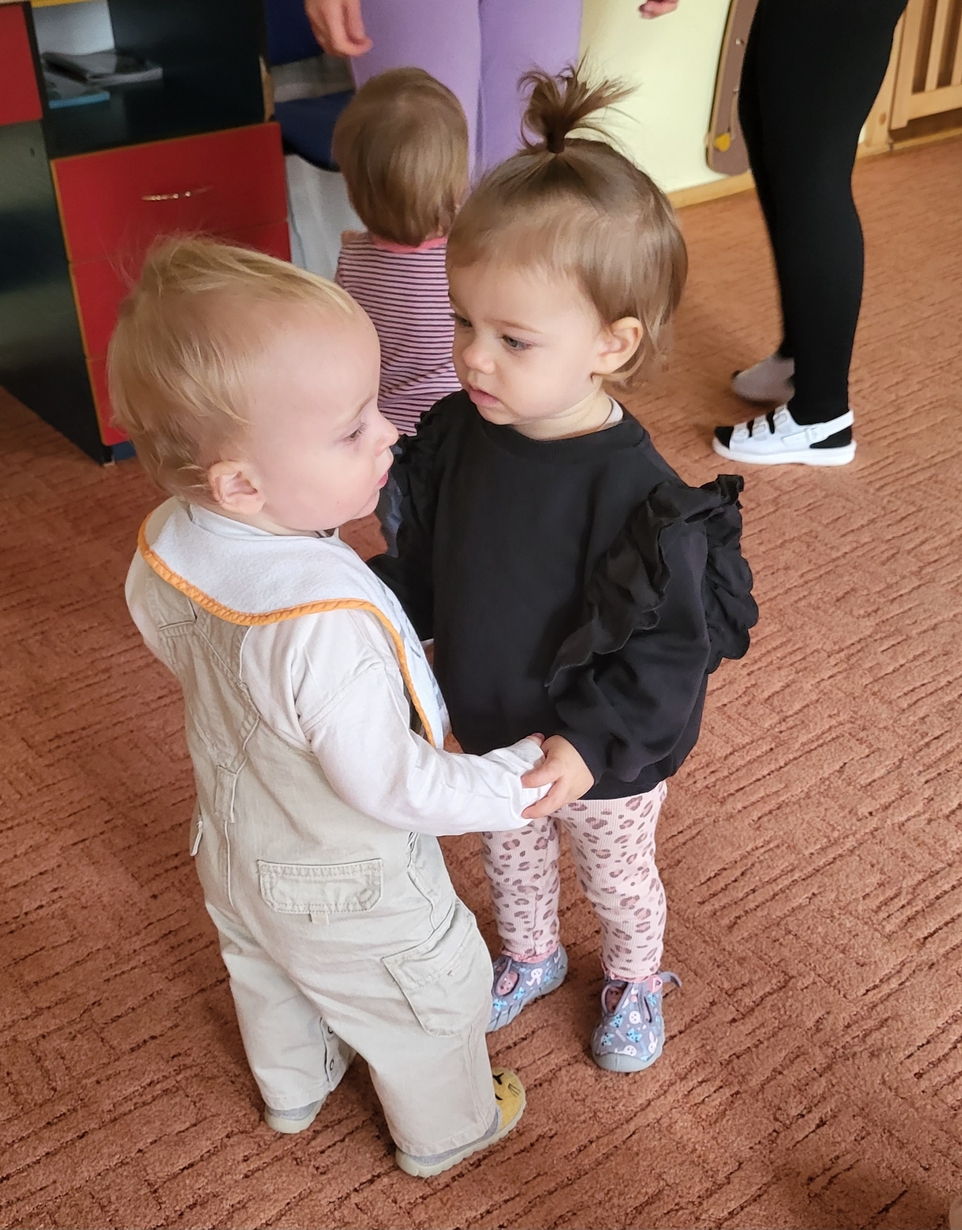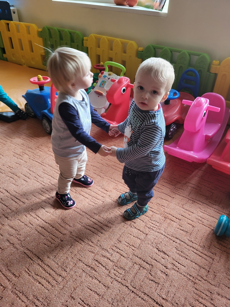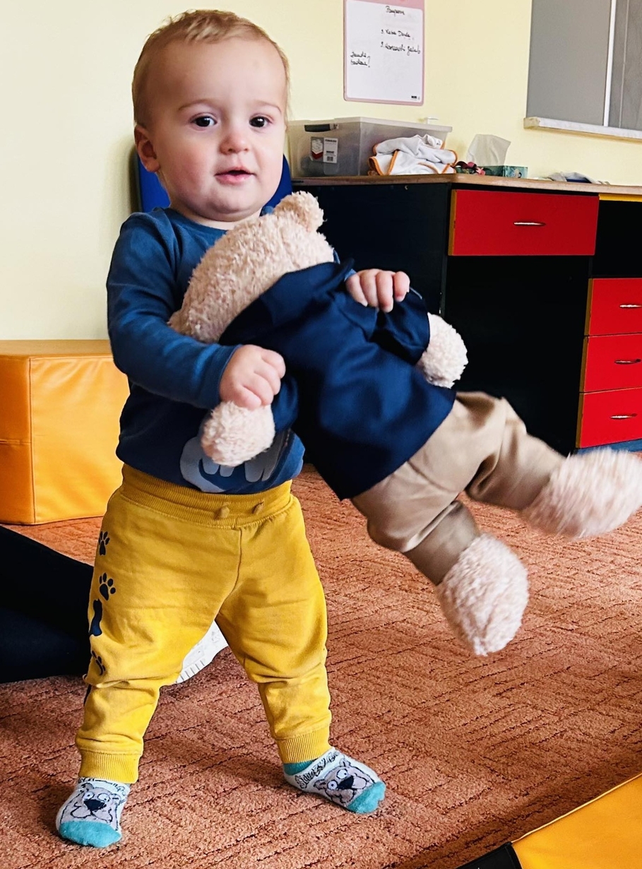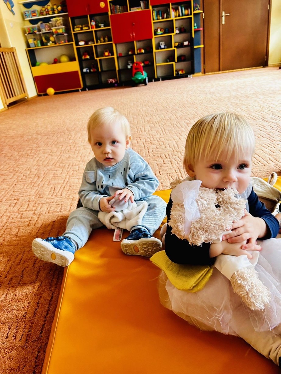 Dzieci przyniosły do żłobka Swoje ukochane pluszaczki. Podczas zajęć słuchały bajeczki o Kubusiu puchatku, próbowały miodu, oraz składaliśmy Misia z kółeczek.