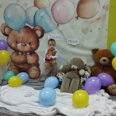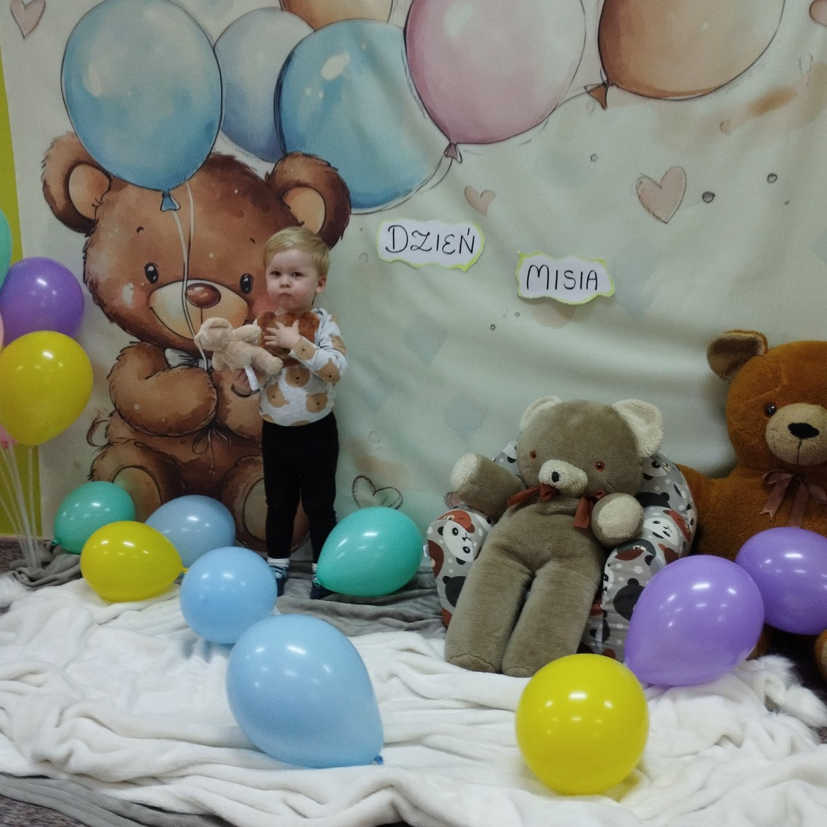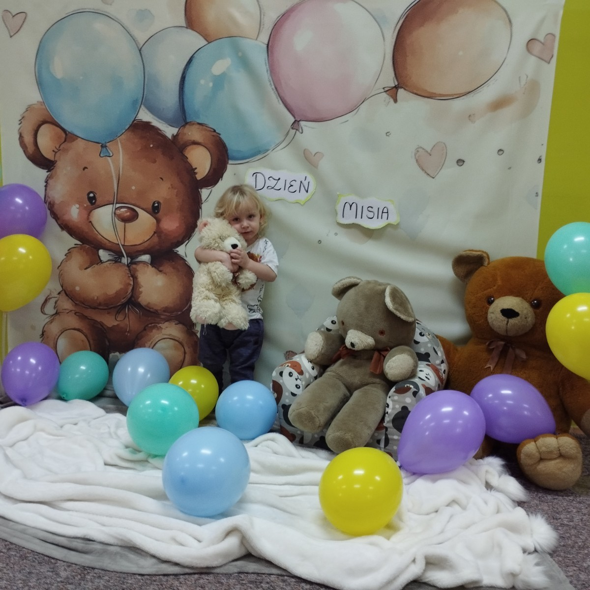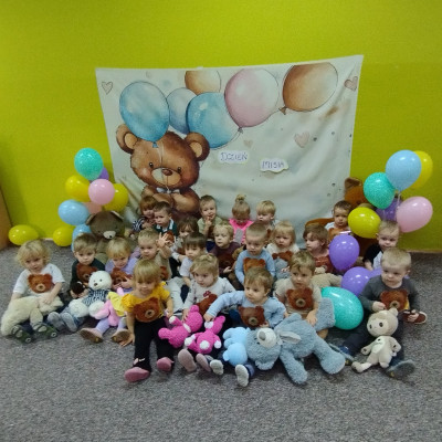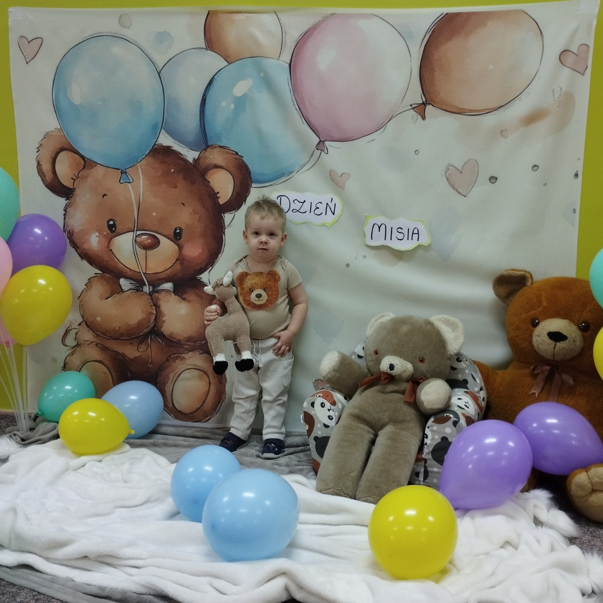 Zdjęcia przedstawiają dzieci świętujące Dzień Pluszowego Misia.