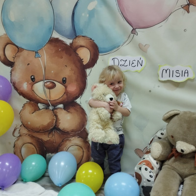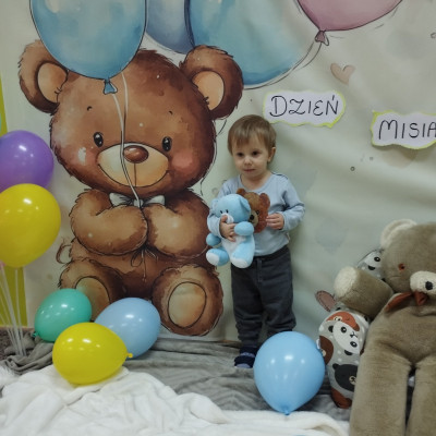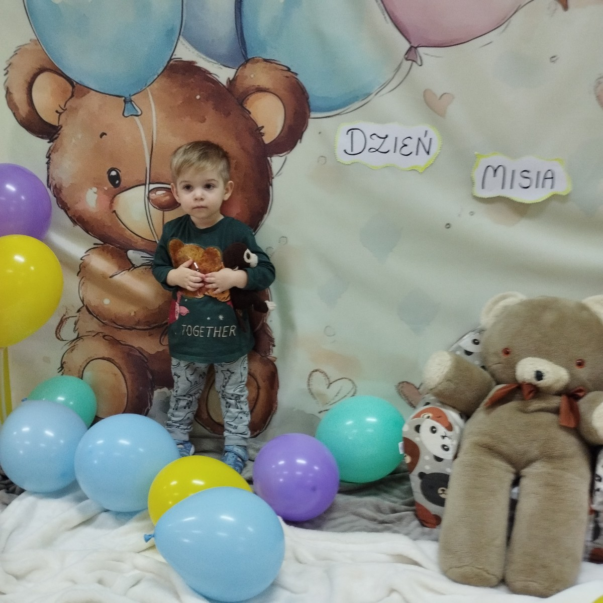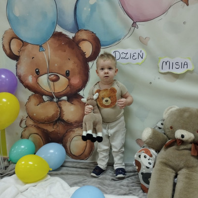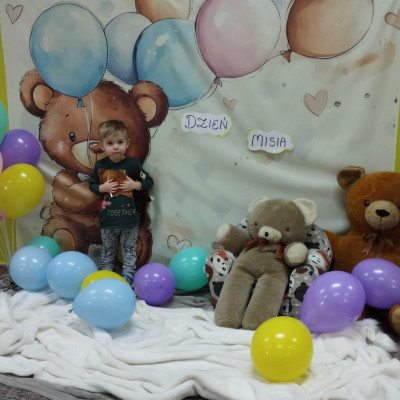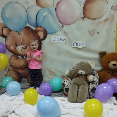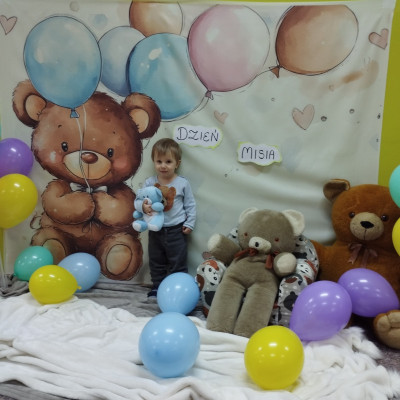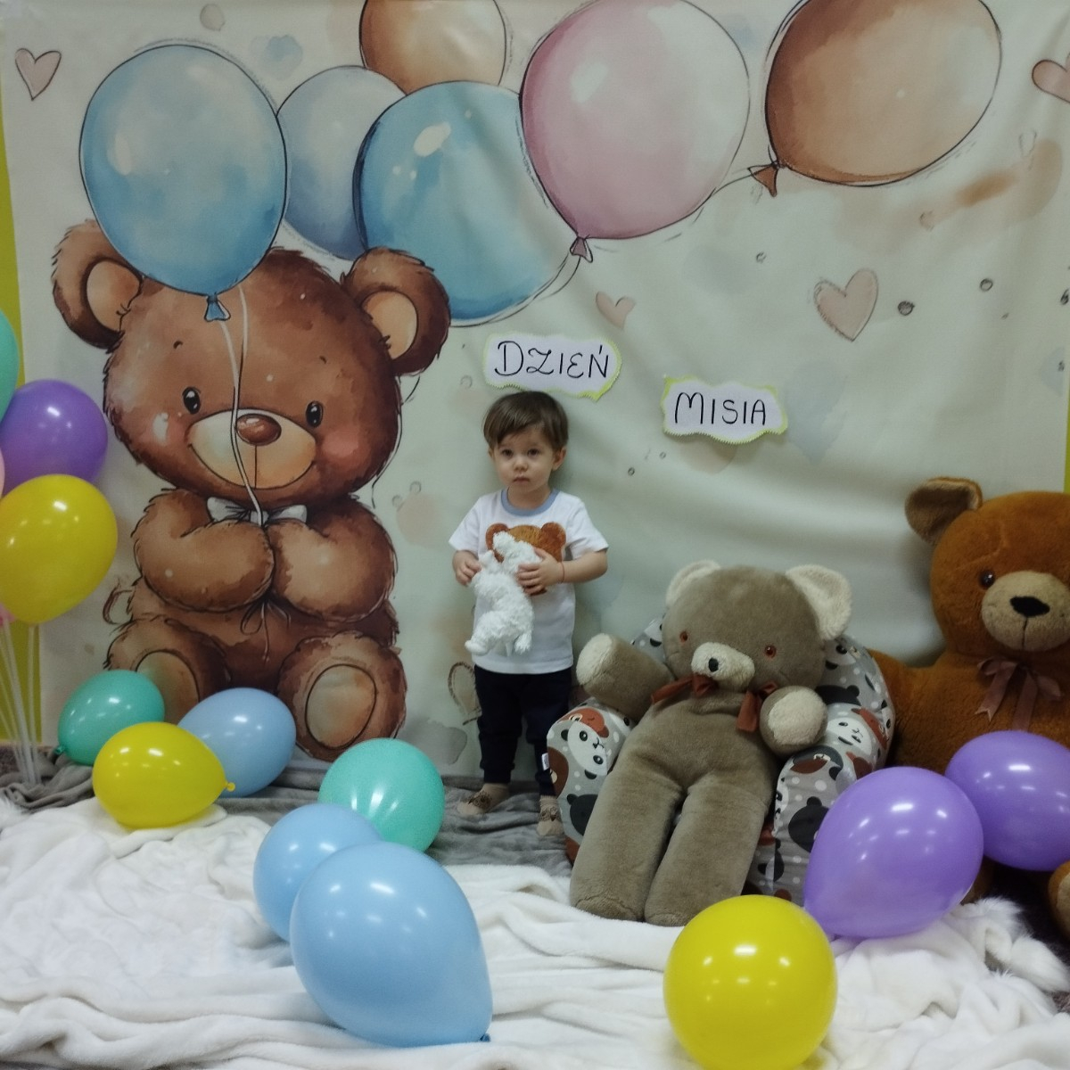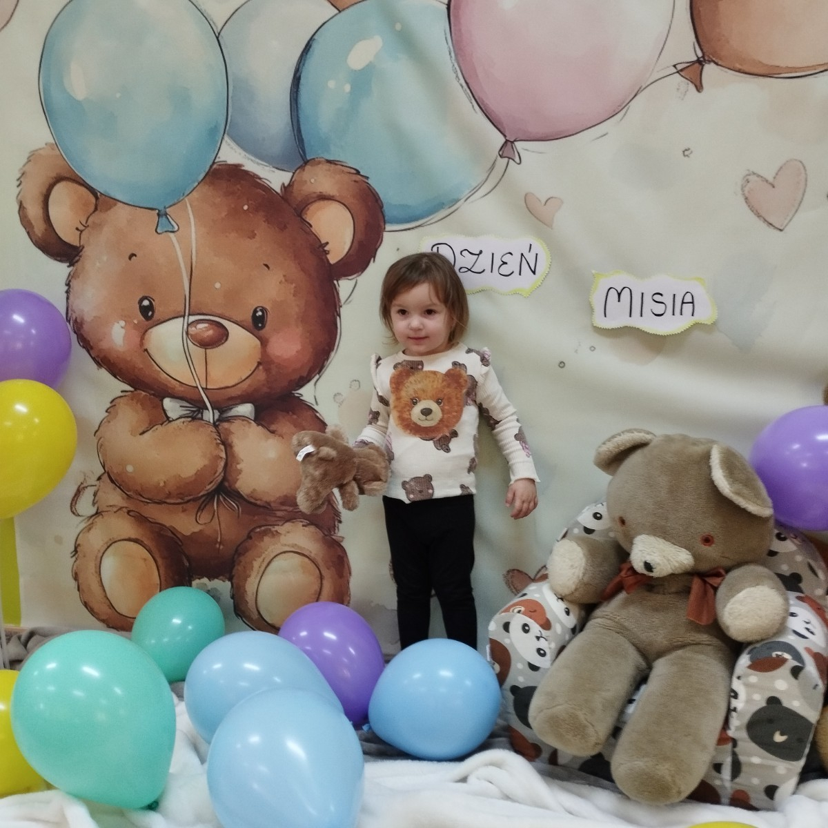 Zdjęcia przedstawiają dzieci świętujące Dzień Pluszowego Misia.