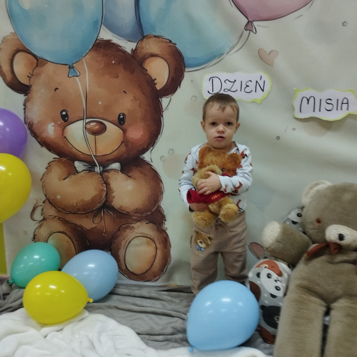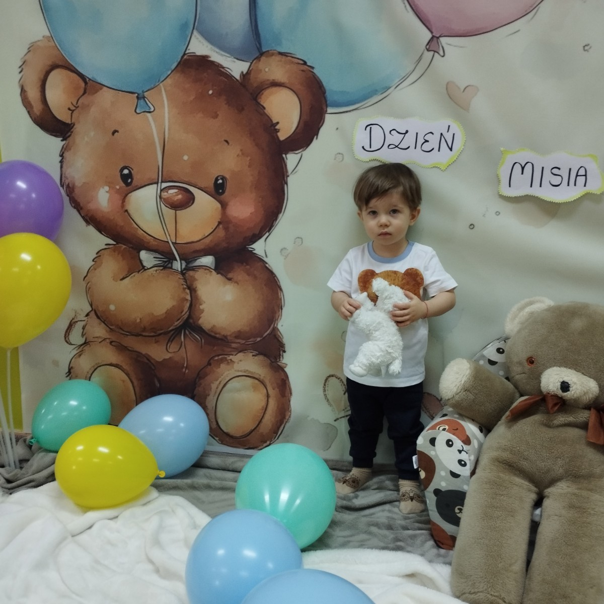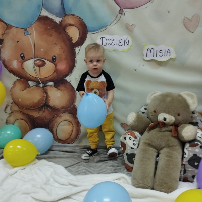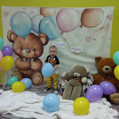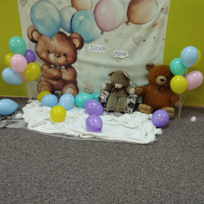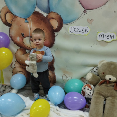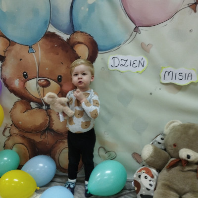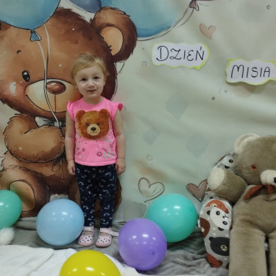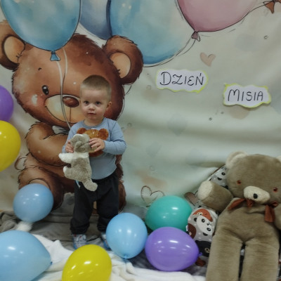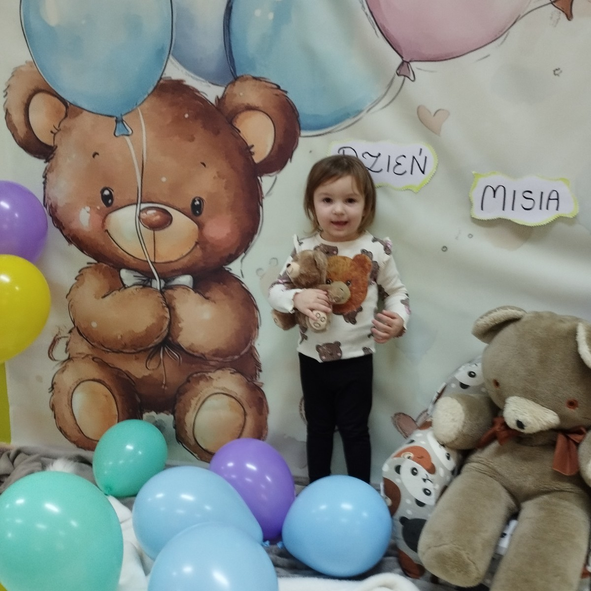 Zdjęcia przedstawiają dzieci świętujące Dzień Pluszowego Misia.