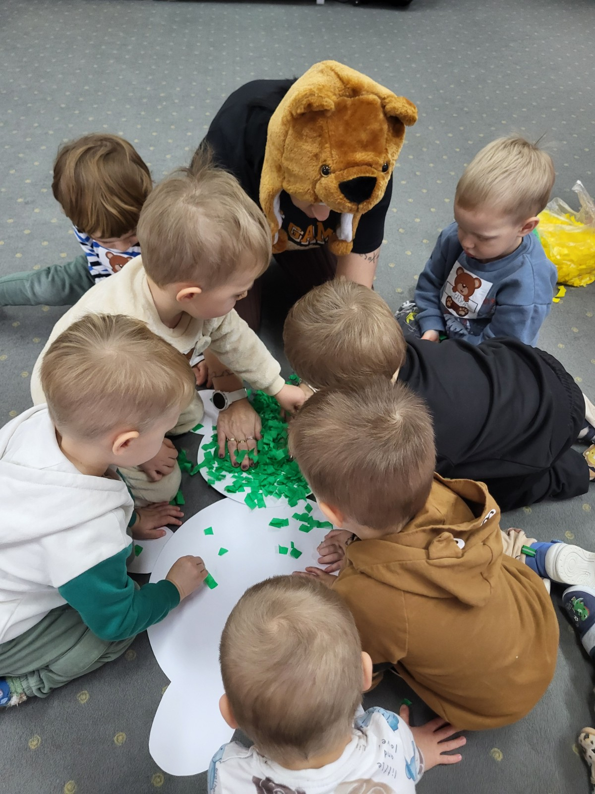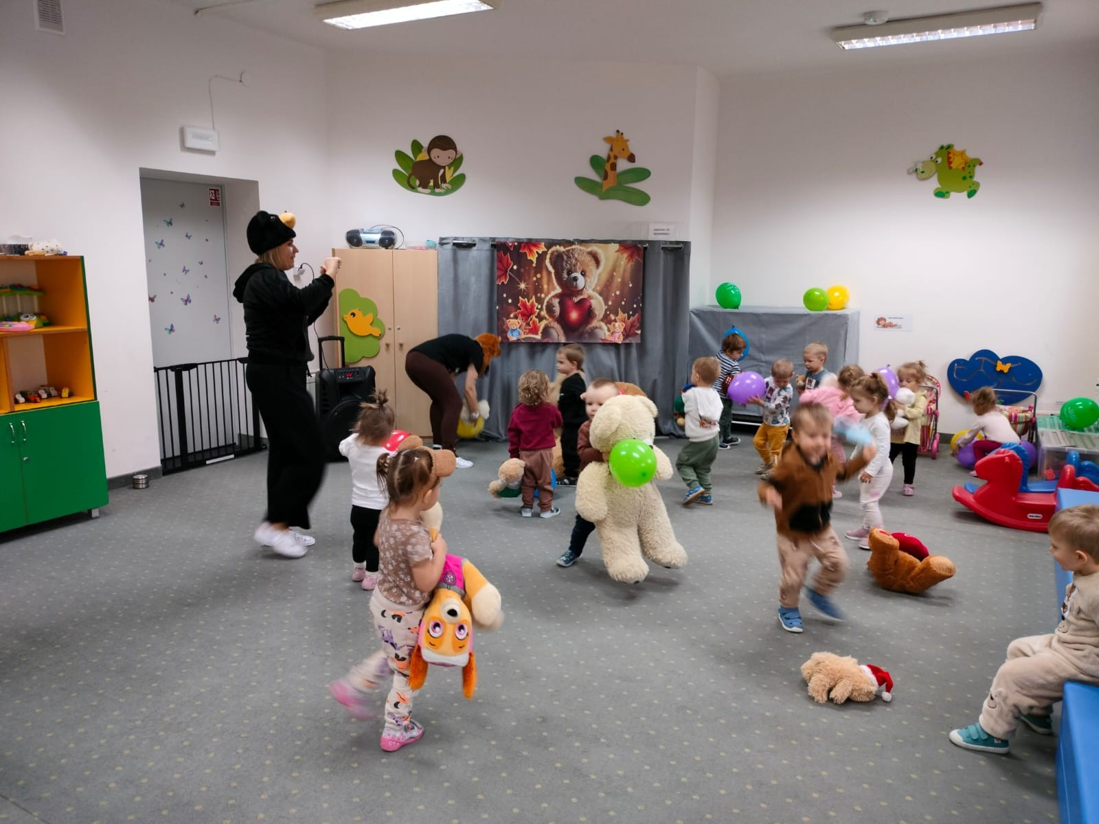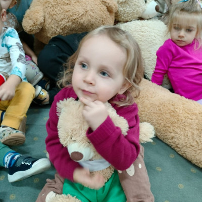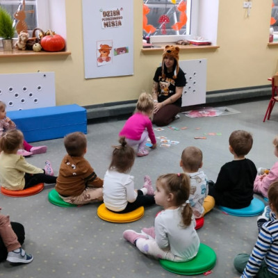 DZIEŃ PLUSZOWEGO MISIA" to radosne święto,podczas którego maluchy przynoszą swoje ulubione misie. Dzieci brały udział w zabawach ruchowych i muzycznych, układały puzzle oraz śpiewały piosenkę o misiu.