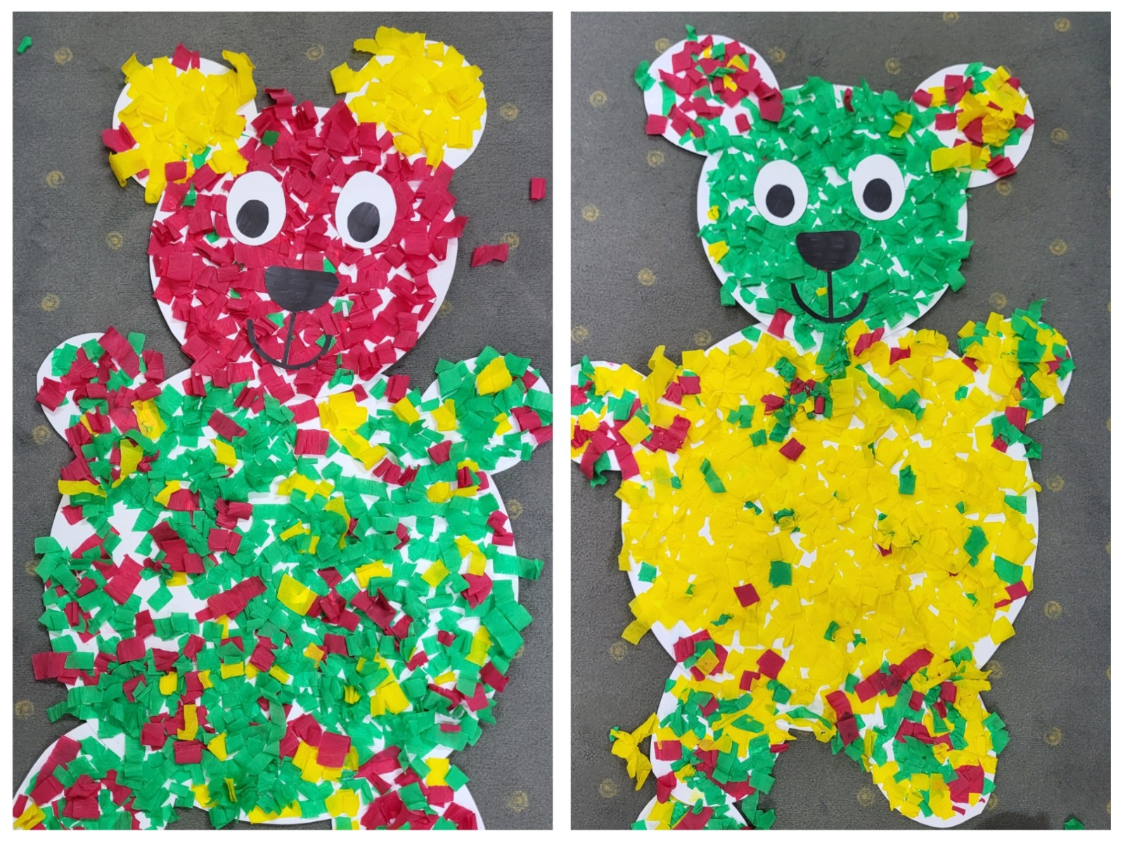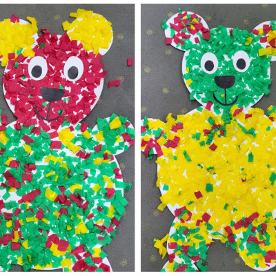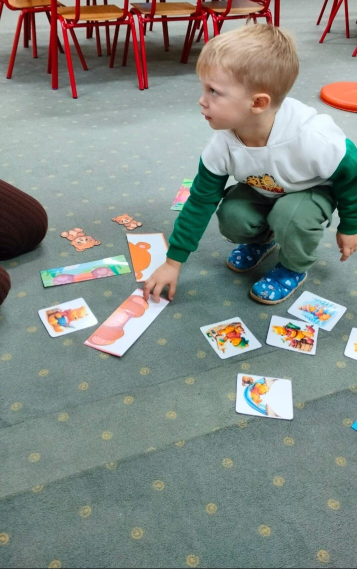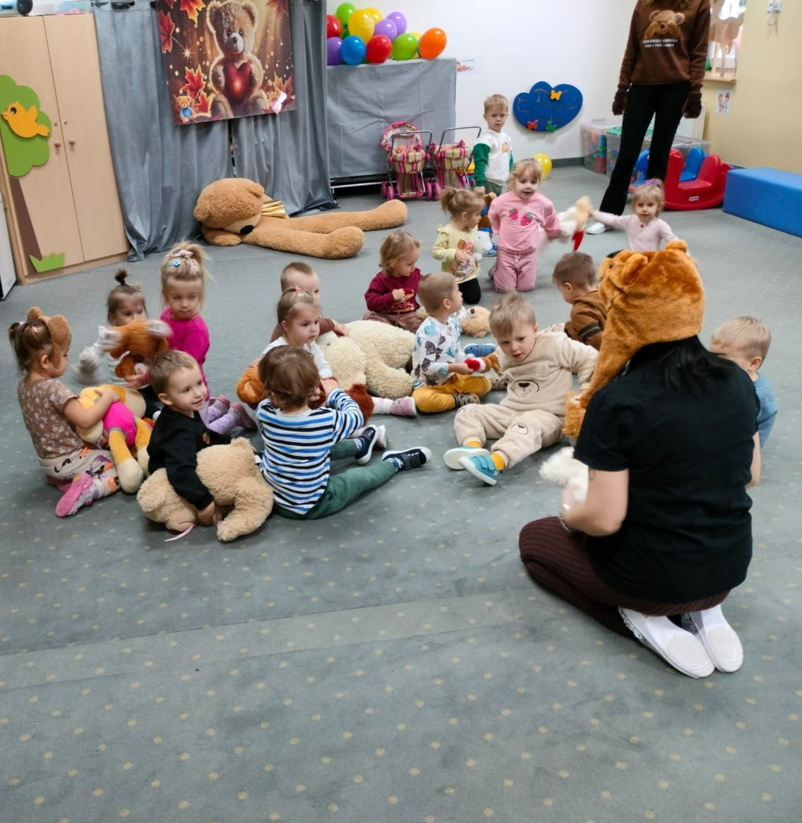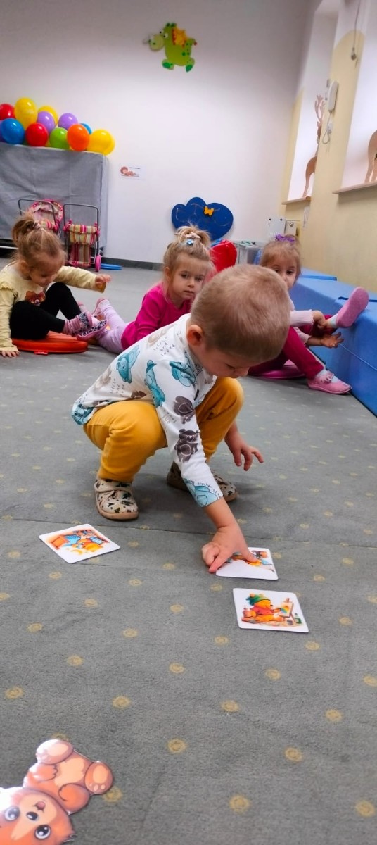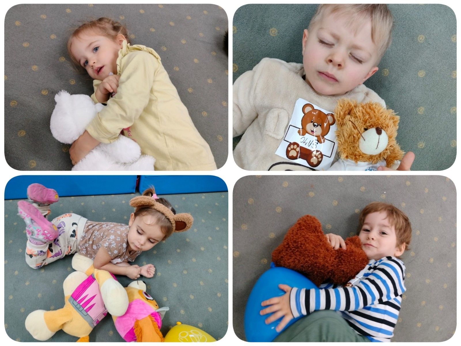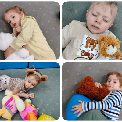 Zdjęcia przedstawiają dzieci podczas aktywności z misiami.