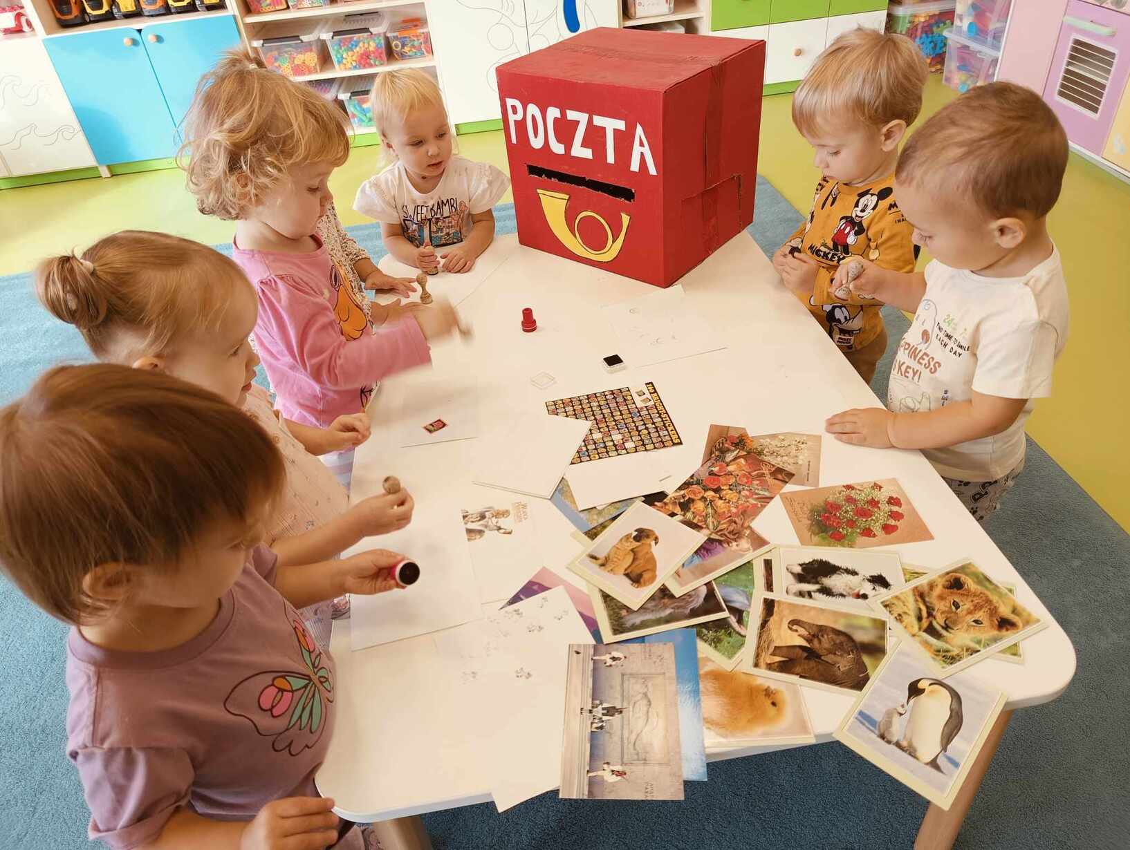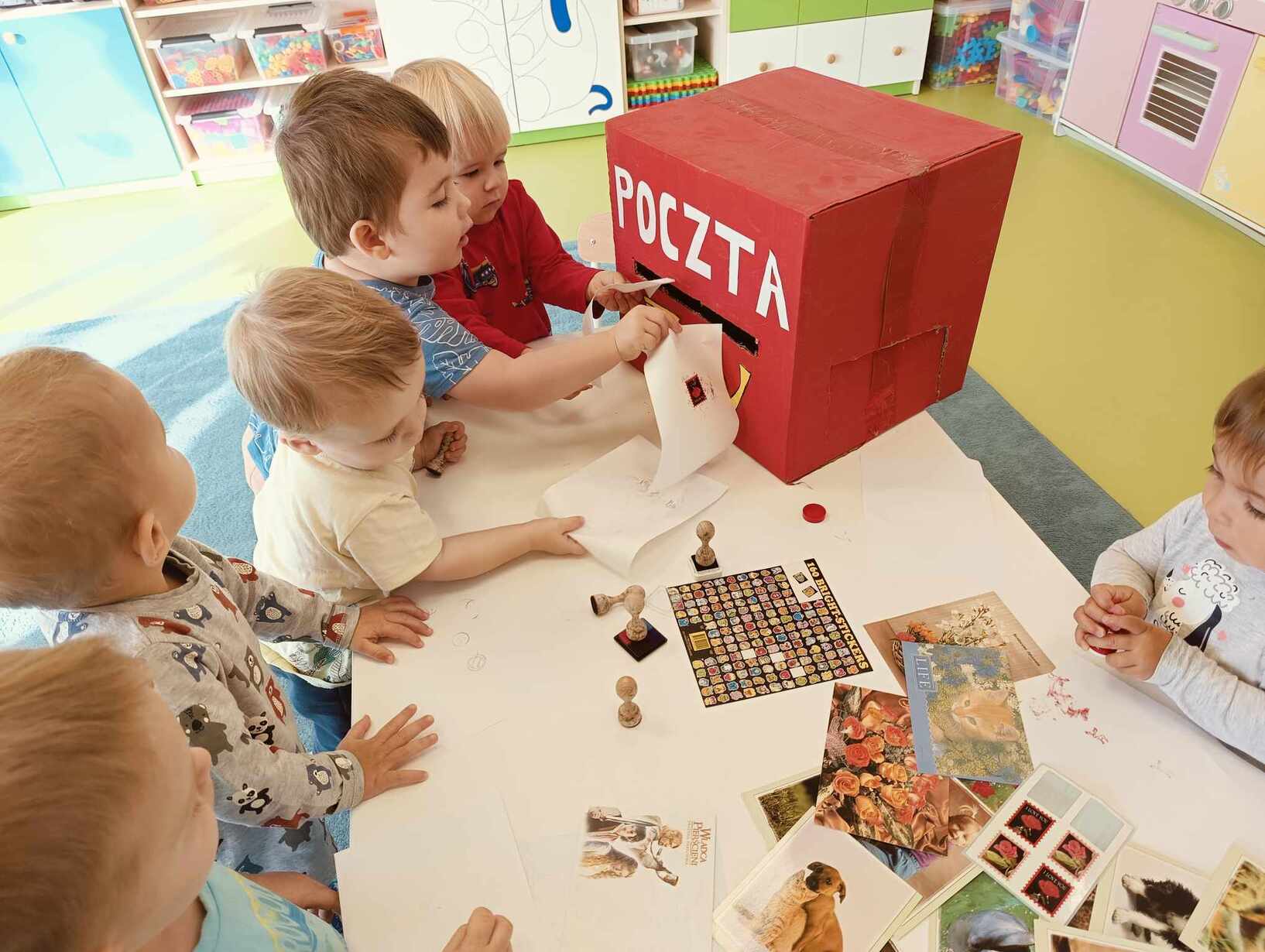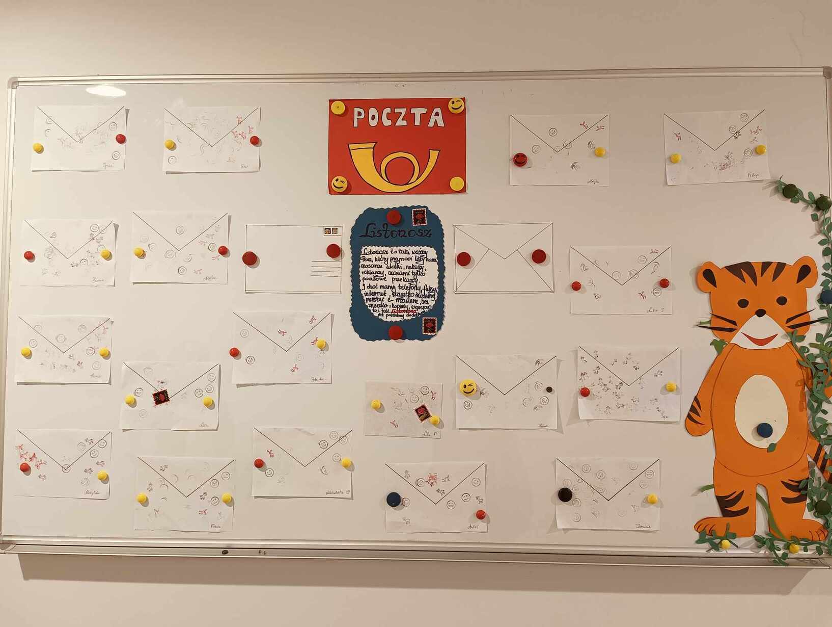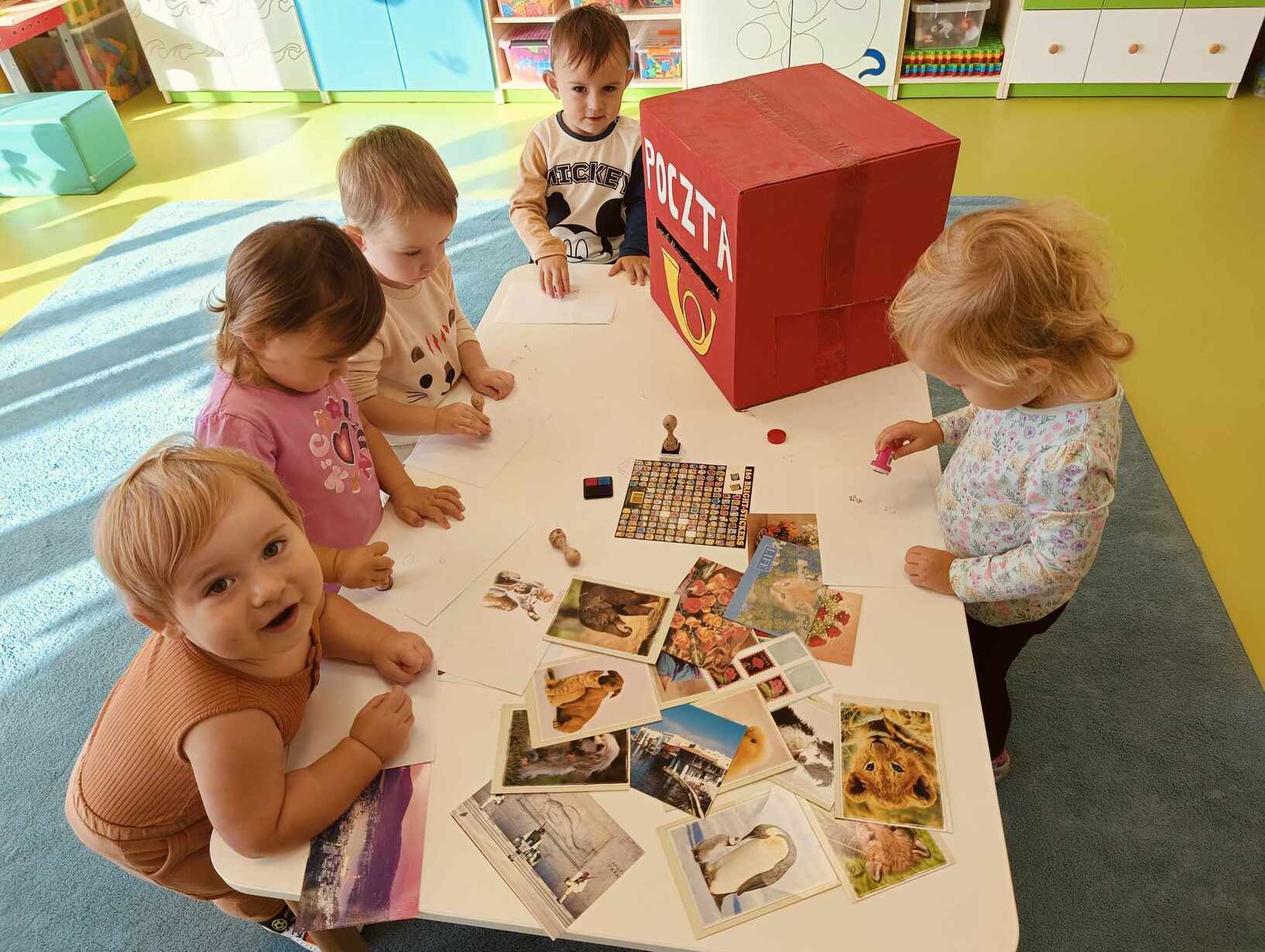 9 października obchodzimy Dzień Poczty Polskiej. Z tej okazji Tygryski podczas zajęć dydaktycznych zapoznały się ze specyfiką pracy listonosza oraz dowiedziały się jak wygląda praca na poczcie. Każde z dzieci miało okazję przykleić znaczek i przybić stempel, a następnie włożyć go do skrzynki. Tygryski były zachwycone i świetnie się bawiły.
