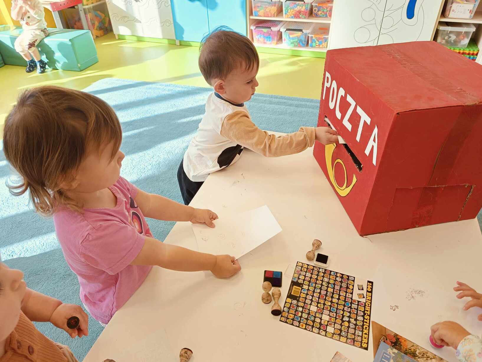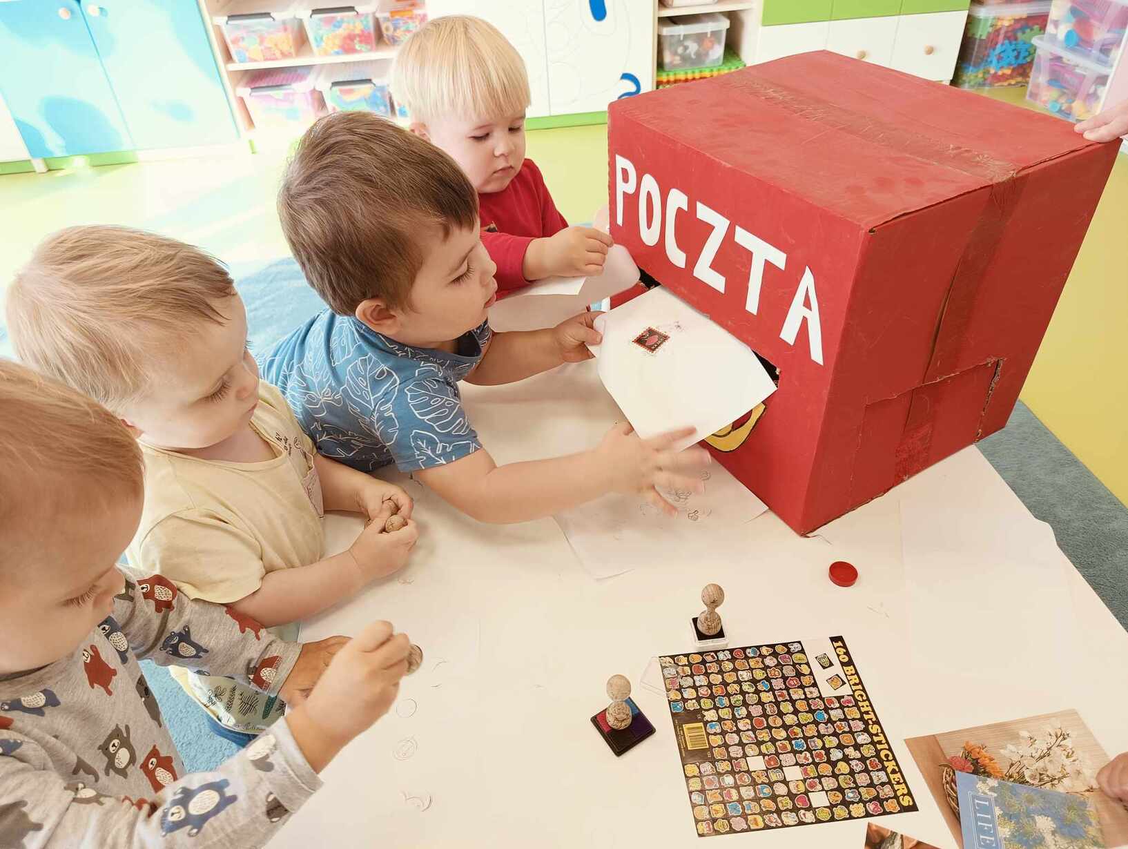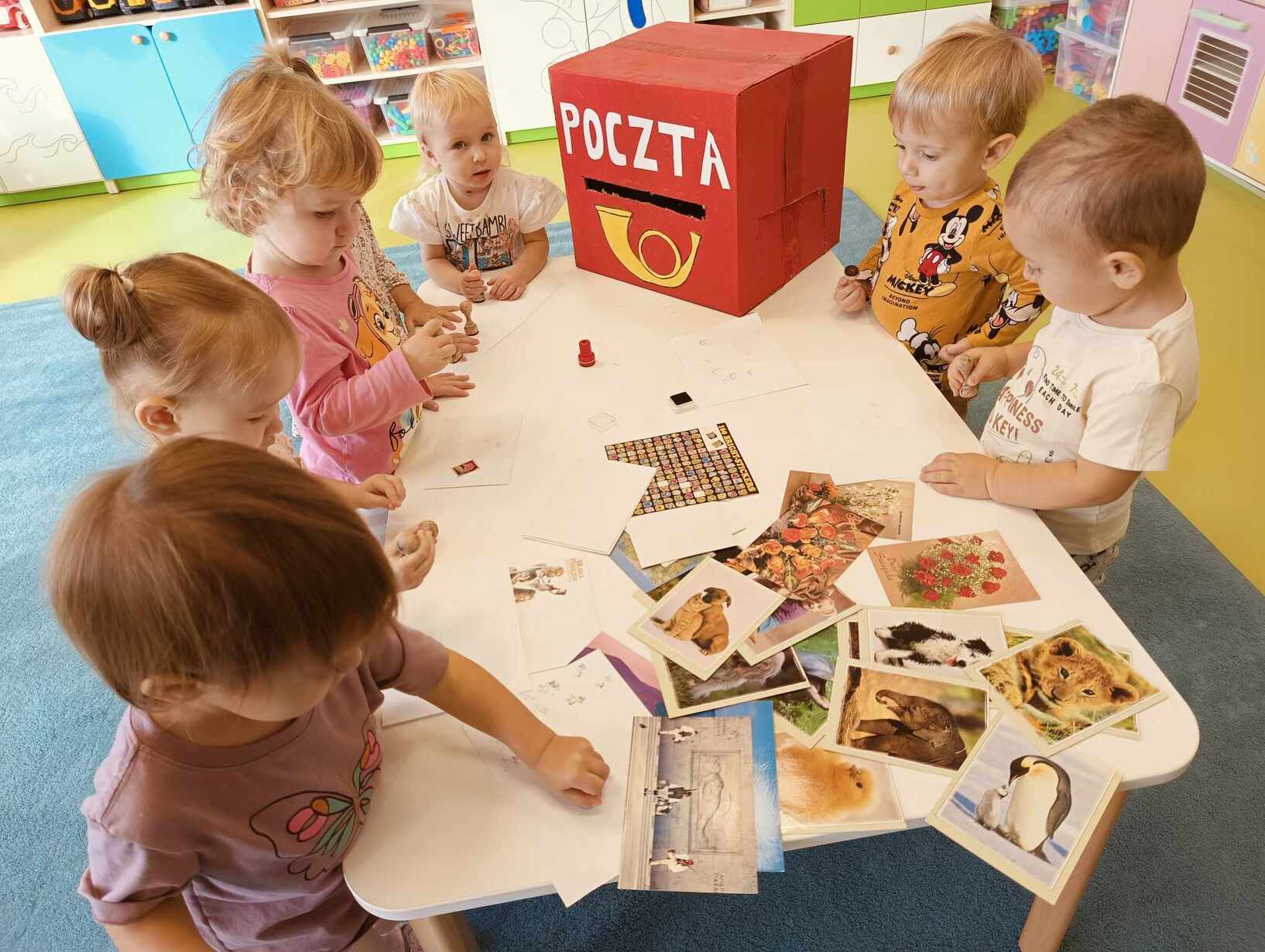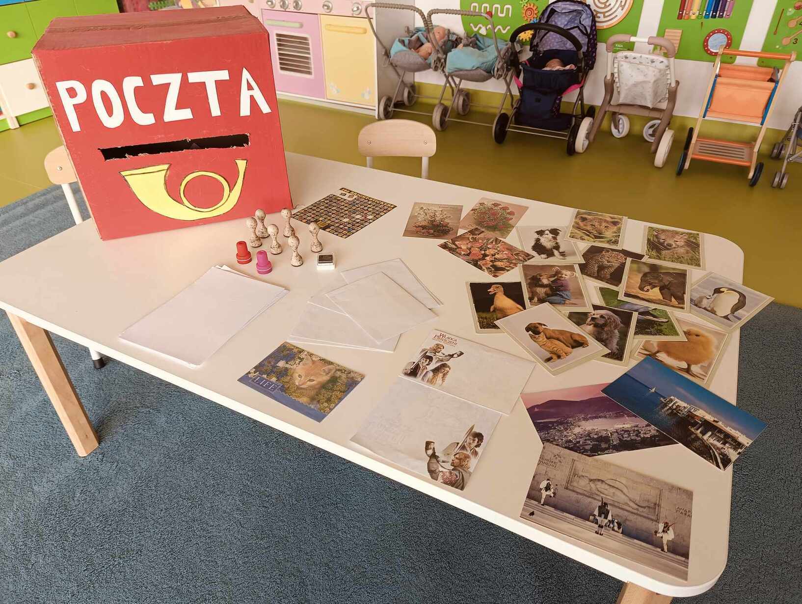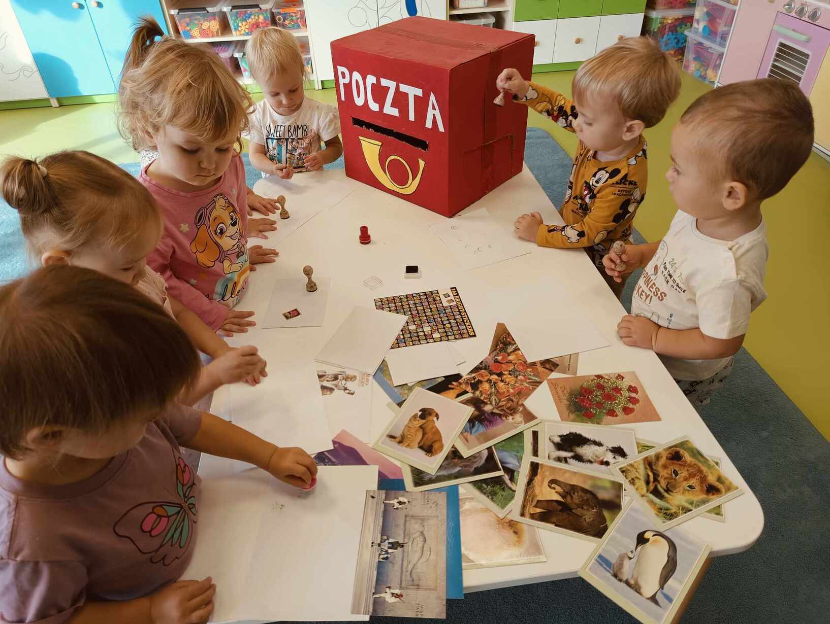 9 października obchodzimy Dzień Poczty Polskiej. Z tej okazji Tygryski podczas zajęć dydaktycznych zapoznały się ze specyfiką pracy listonosza oraz dowiedziały się jak wygląda praca na poczcie. Każde z dzieci miało okazję przykleić znaczek i przybić stempel, a następnie włożyć go do skrzynki. Tygryski były zachwycone i świetnie się bawiły.