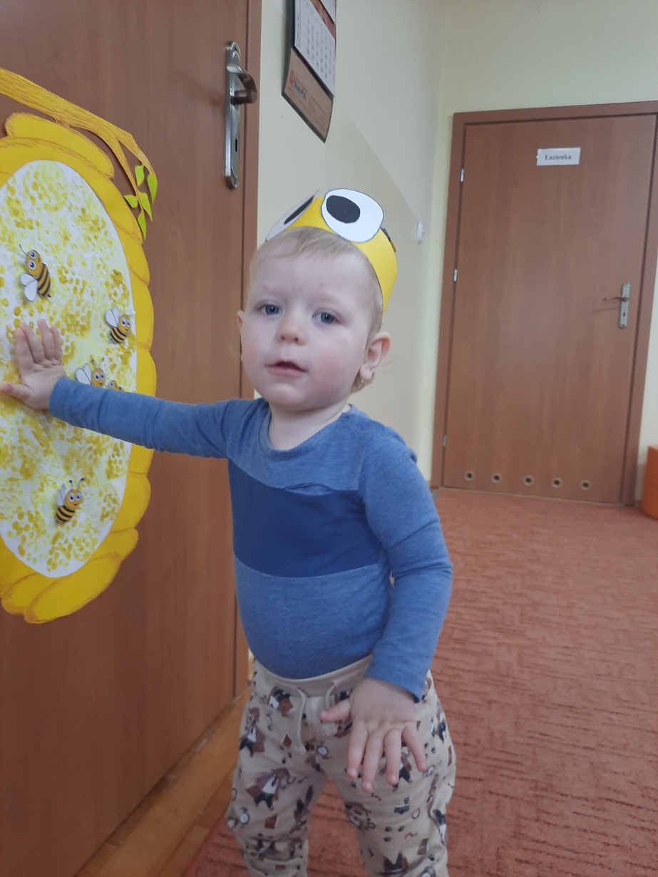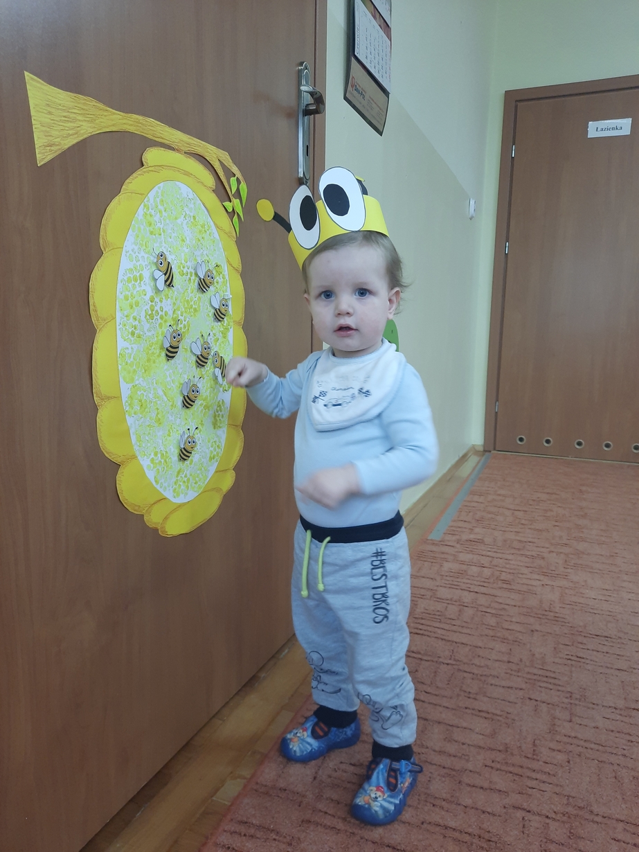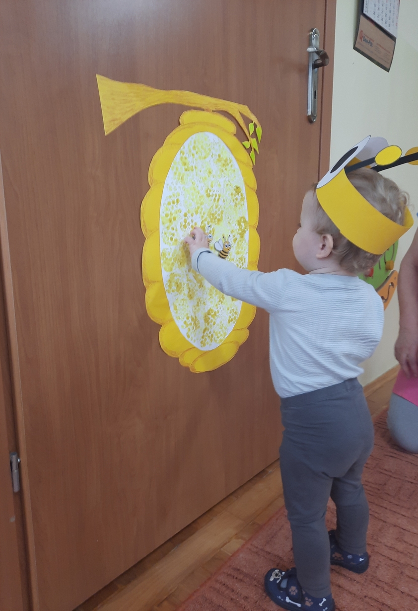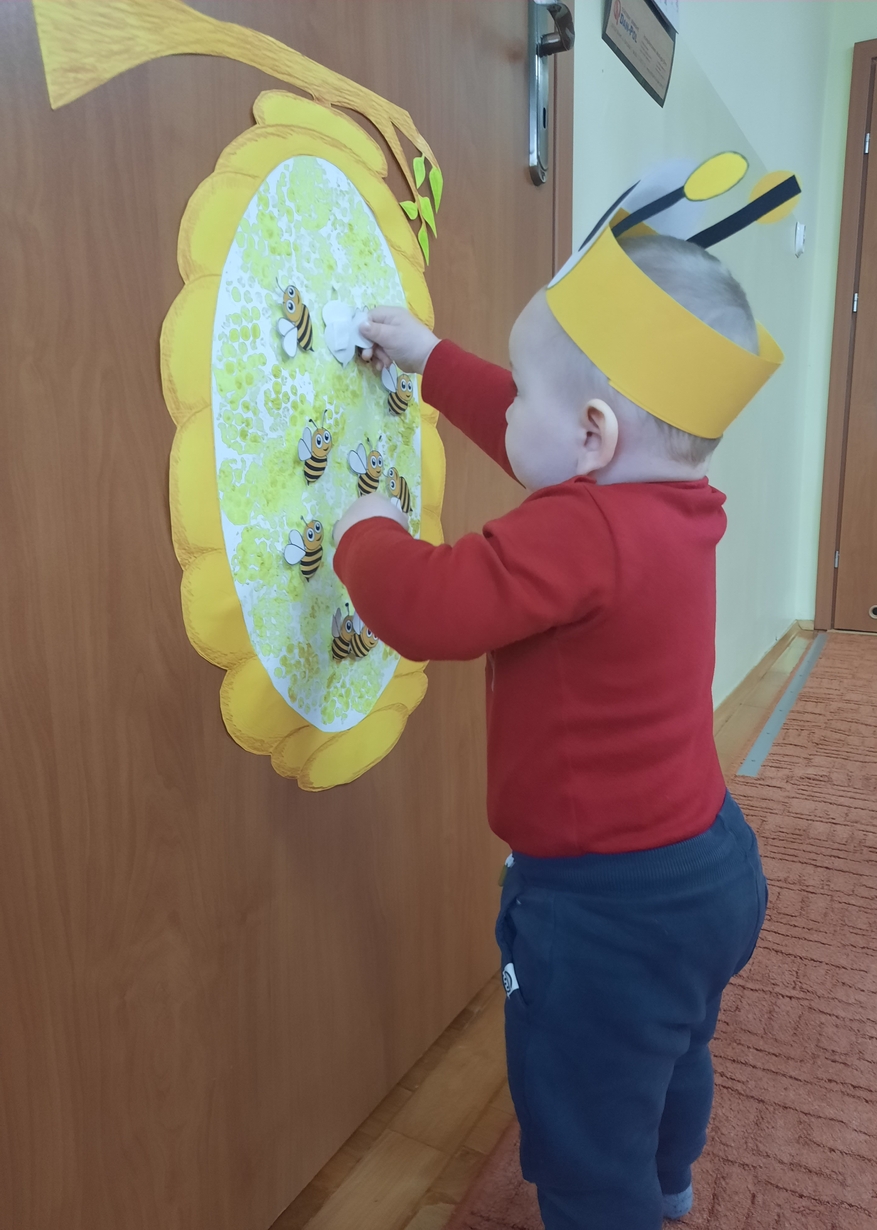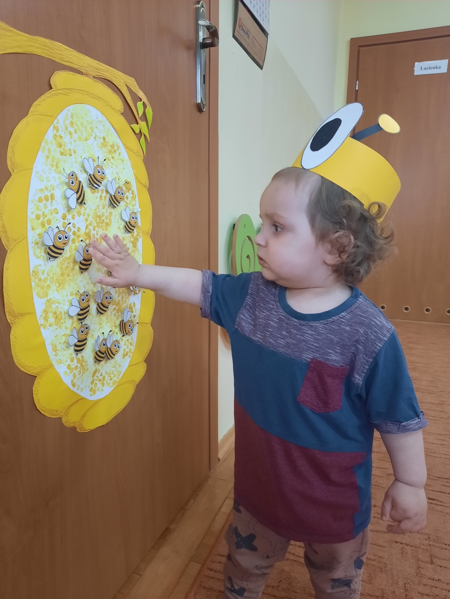 Maluszki ćwiczyły paluszki i przyklejały pszczółki.
