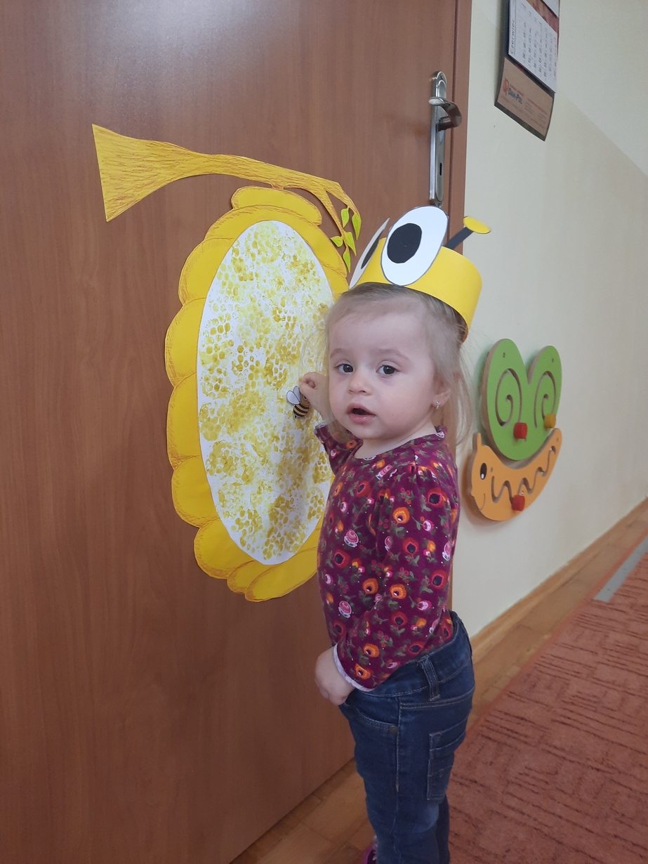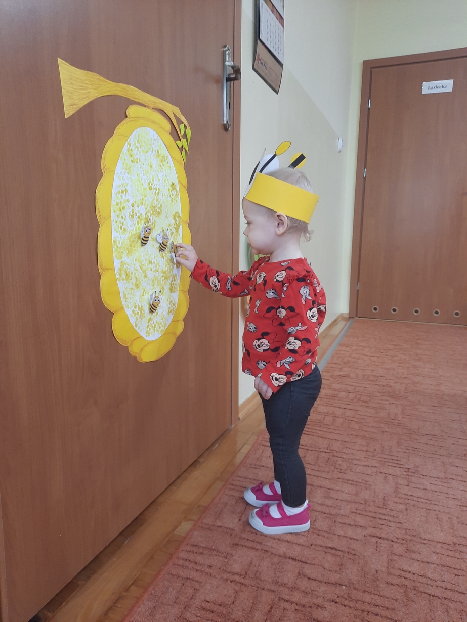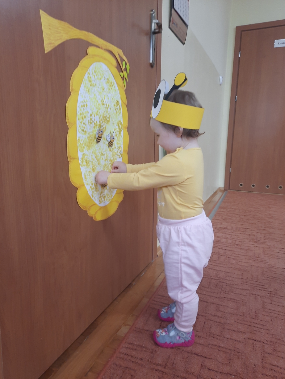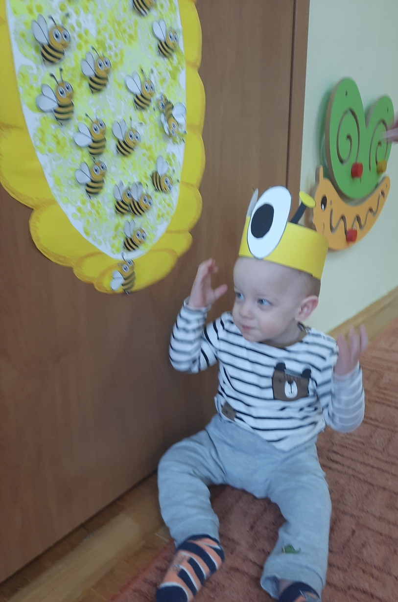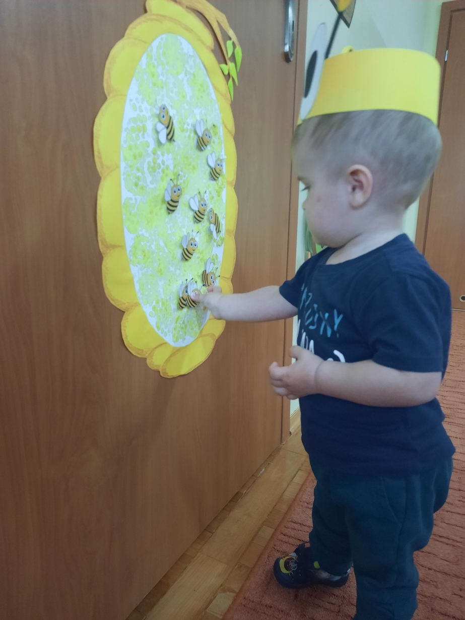 Maluszki ćwiczyły paluszki i przyklejały pszczółki.