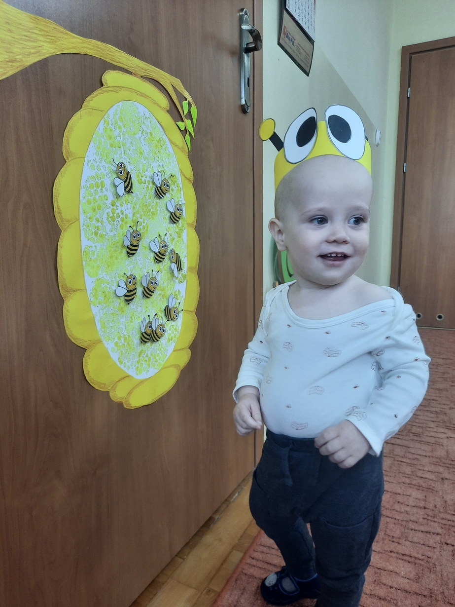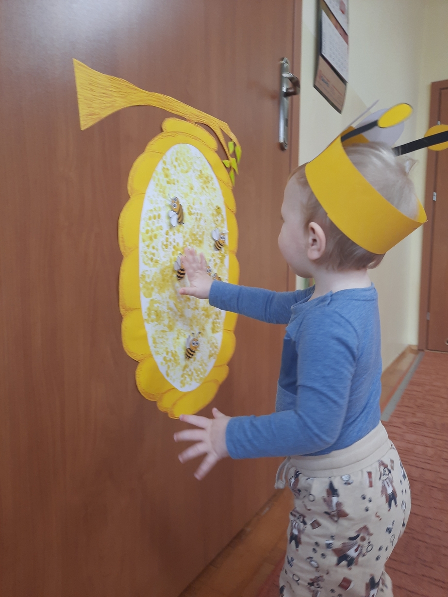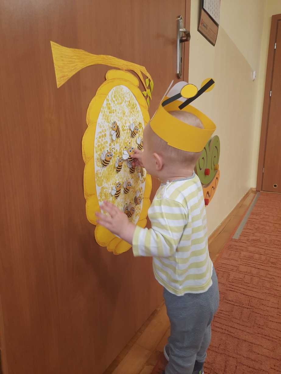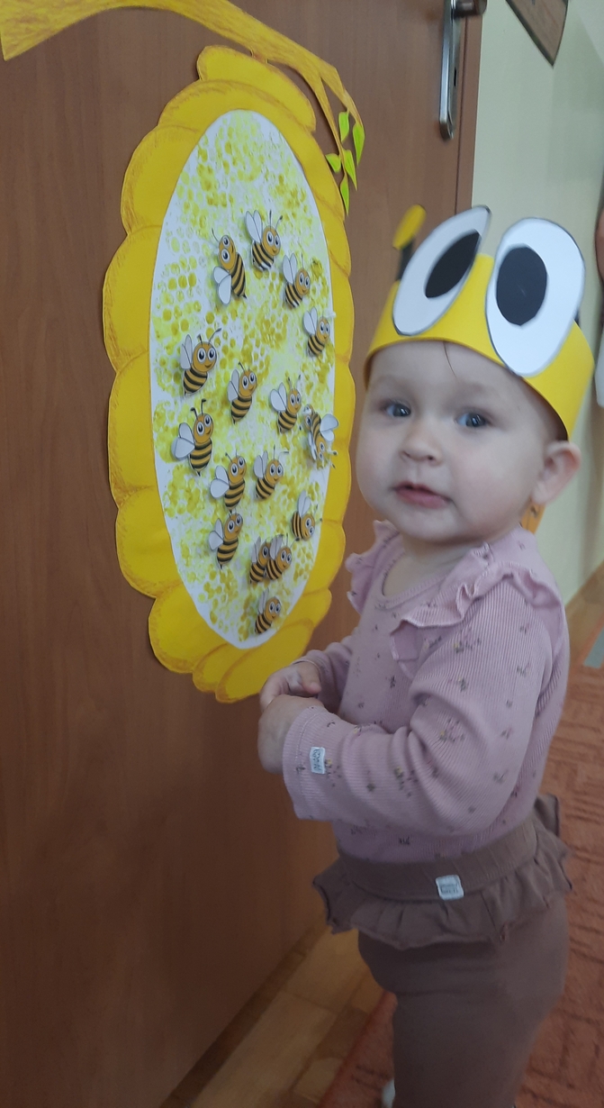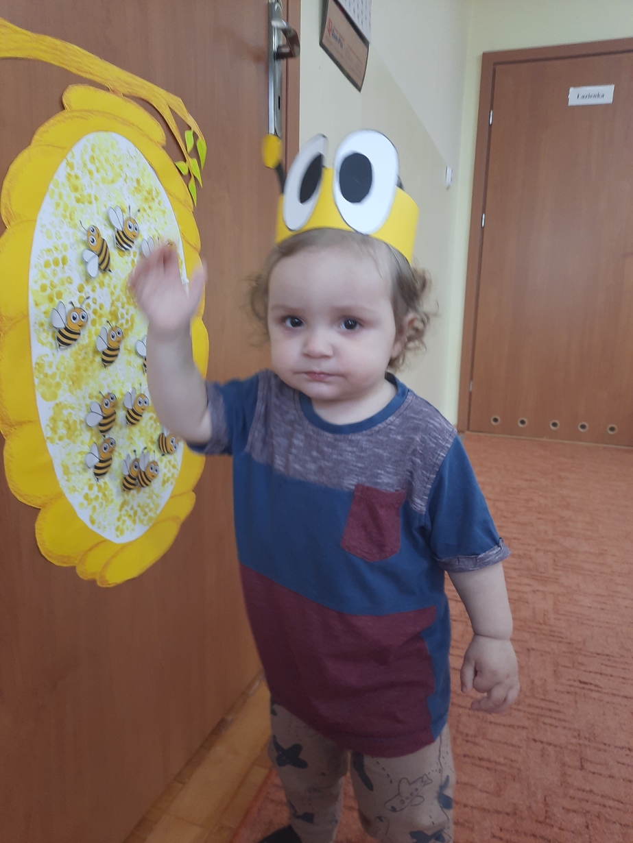 Maluszki ćwiczyły paluszki i przyklejały pszczółki.
