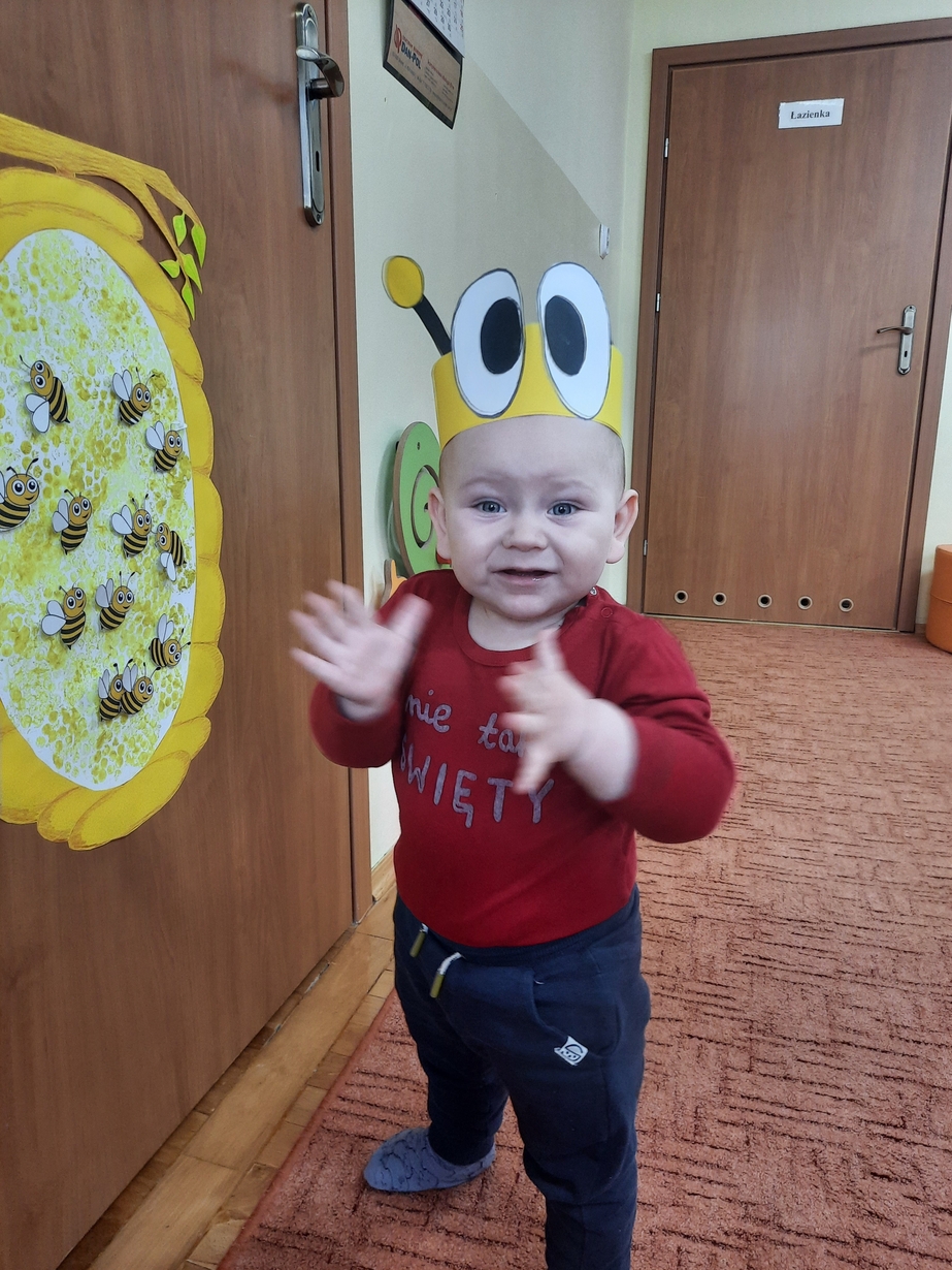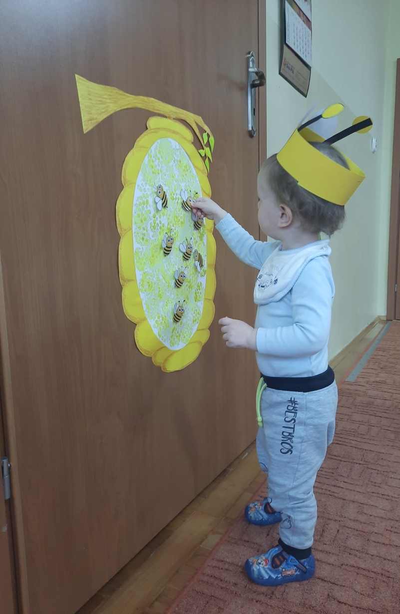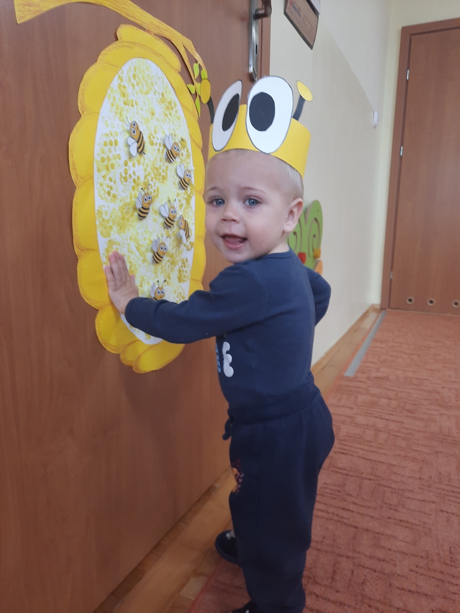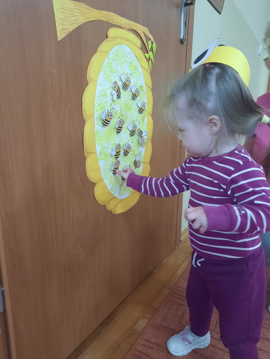 Maluszki ćwiczyły paluszki i przyklejały pszczółki.