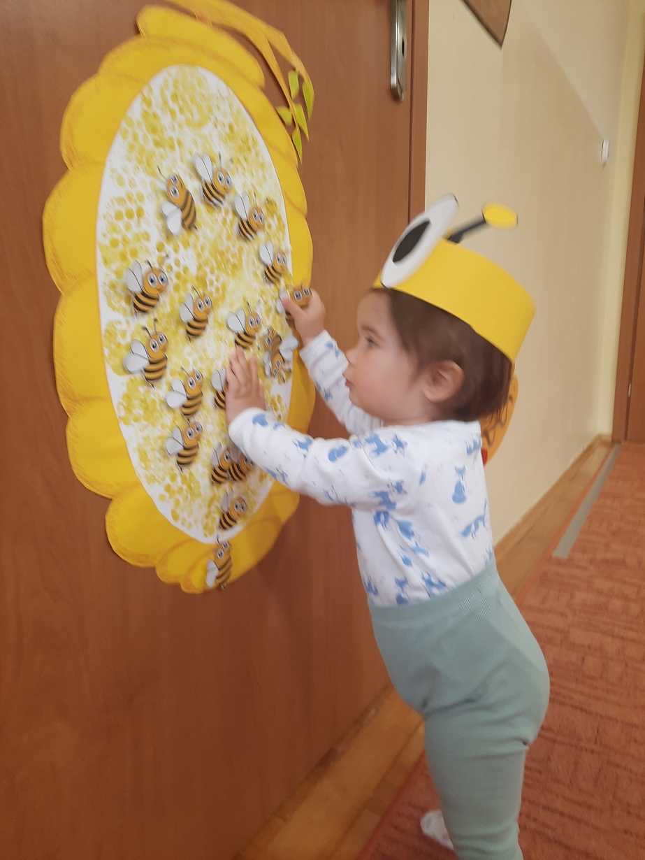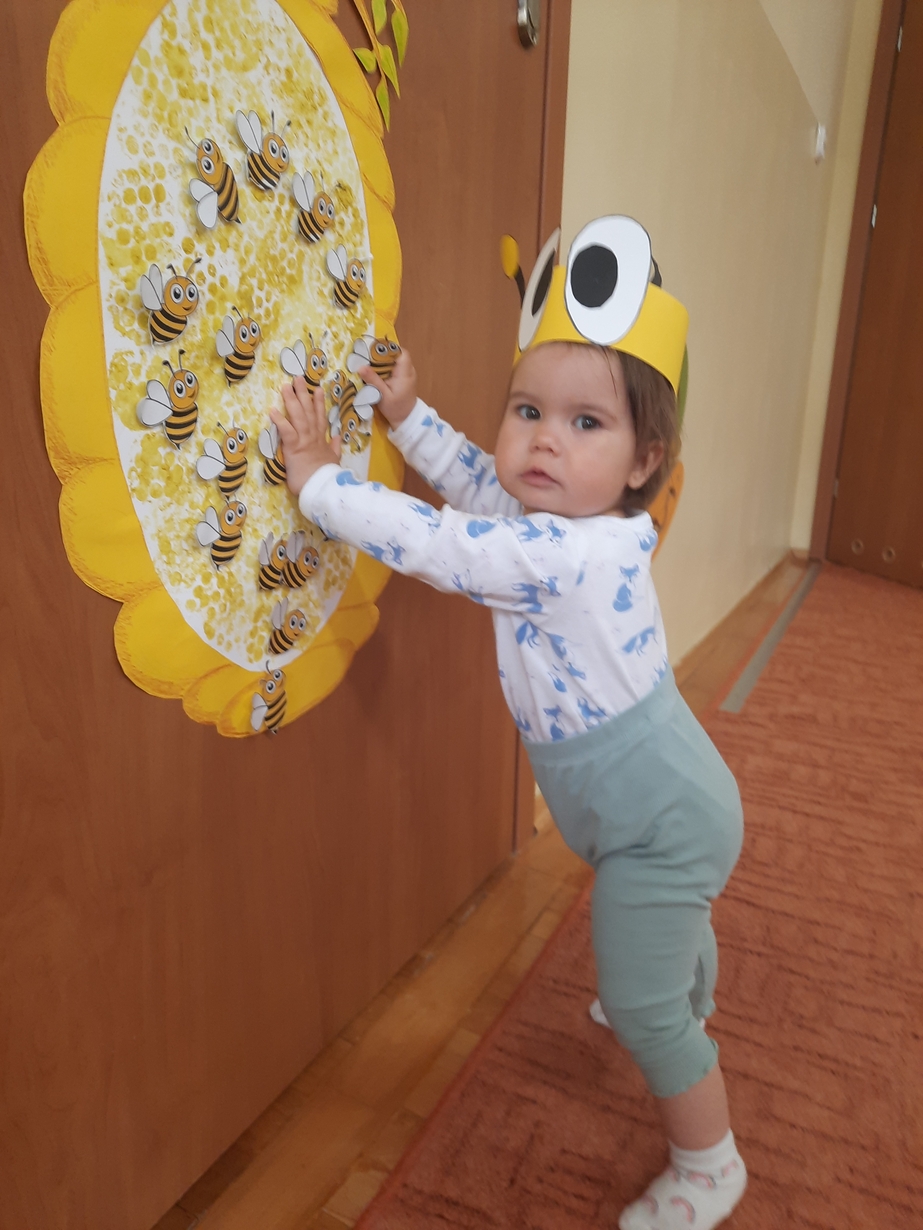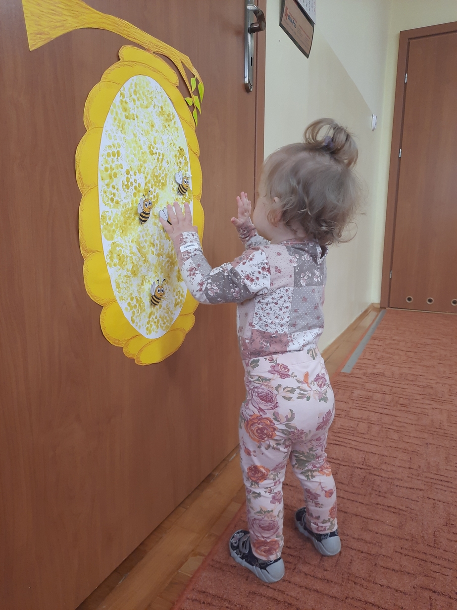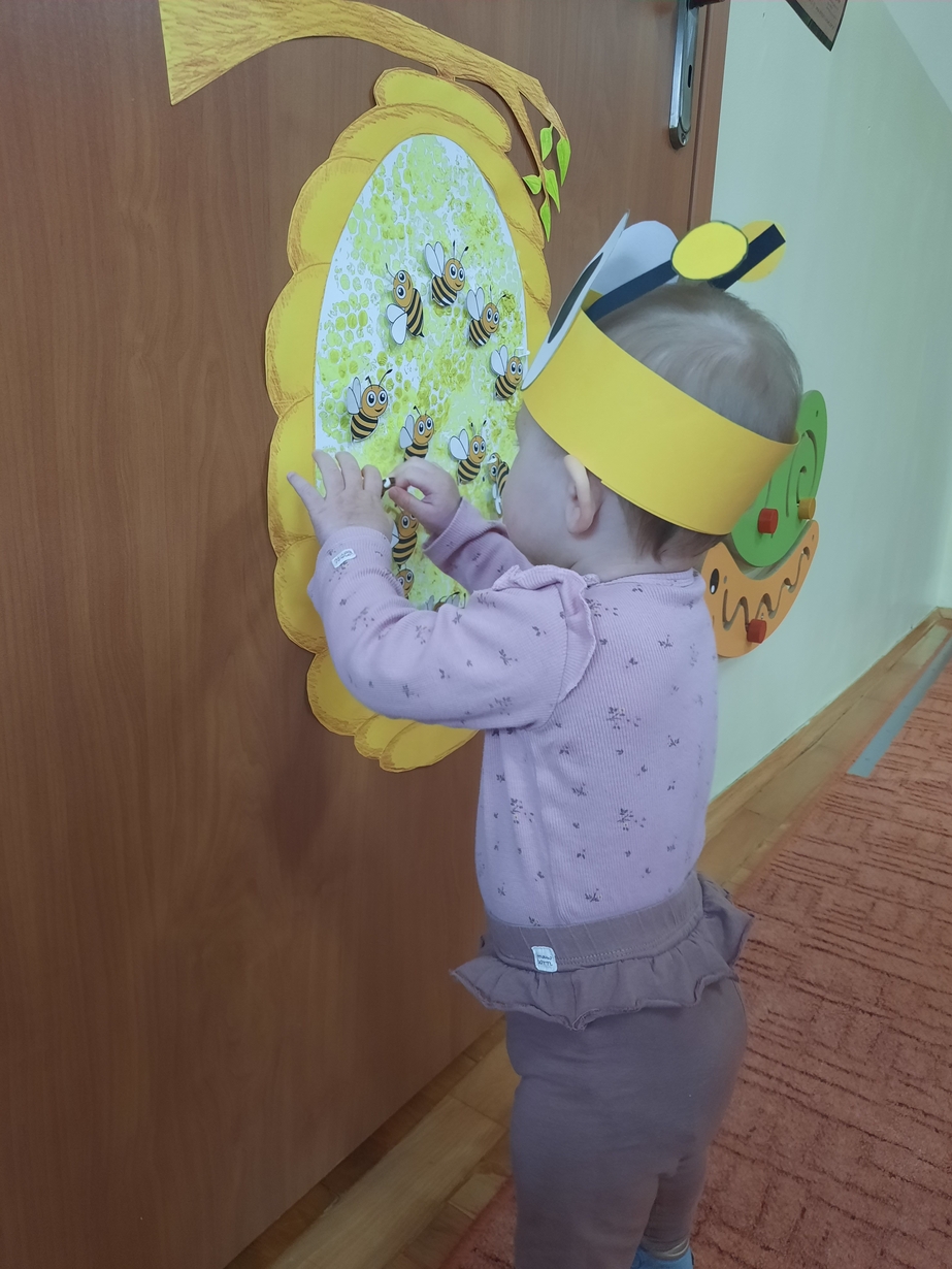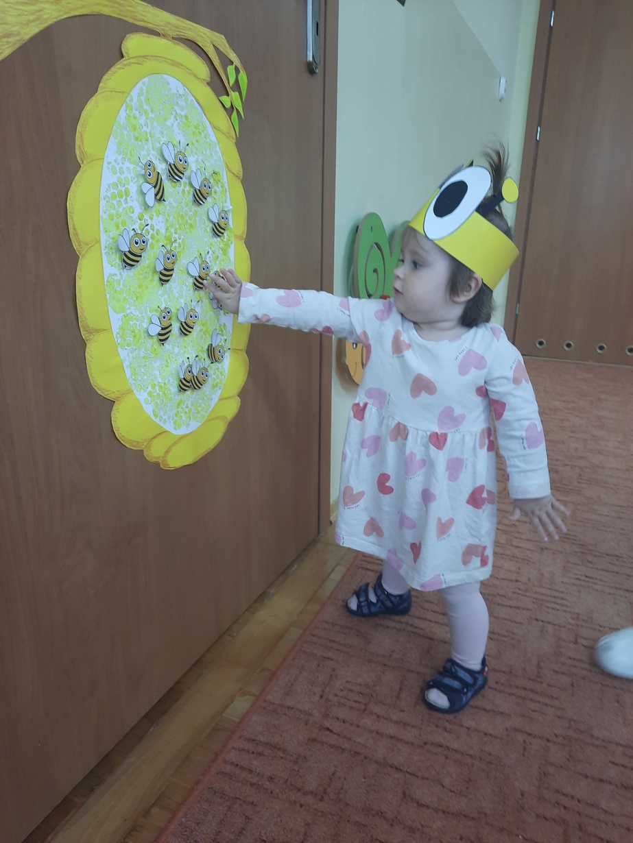 Maluszki ćwiczyły paluszki i przyklejały pszczółki.