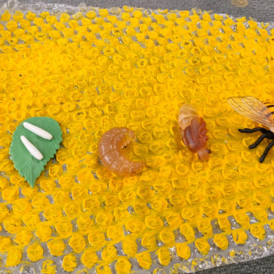 Zdjęcia przedstawiają dzieci podczas zajęć tematycznych z okazji dnia pszczoły