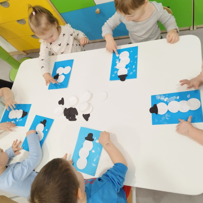 Tygryski wykonały zimową pracę plastyczną - bałwanek.