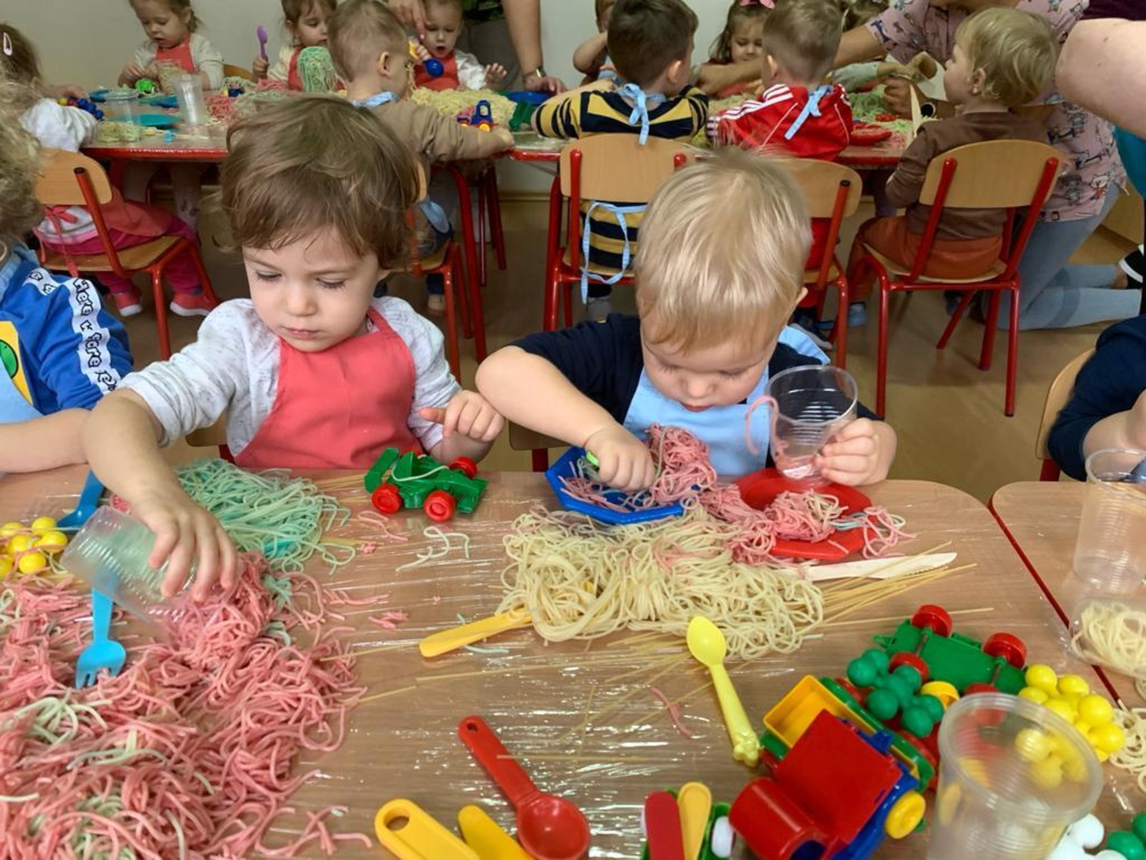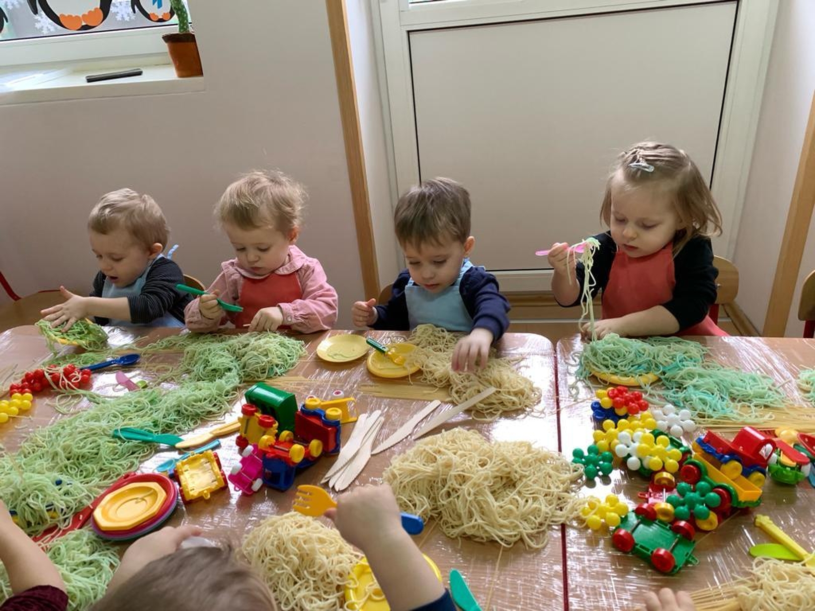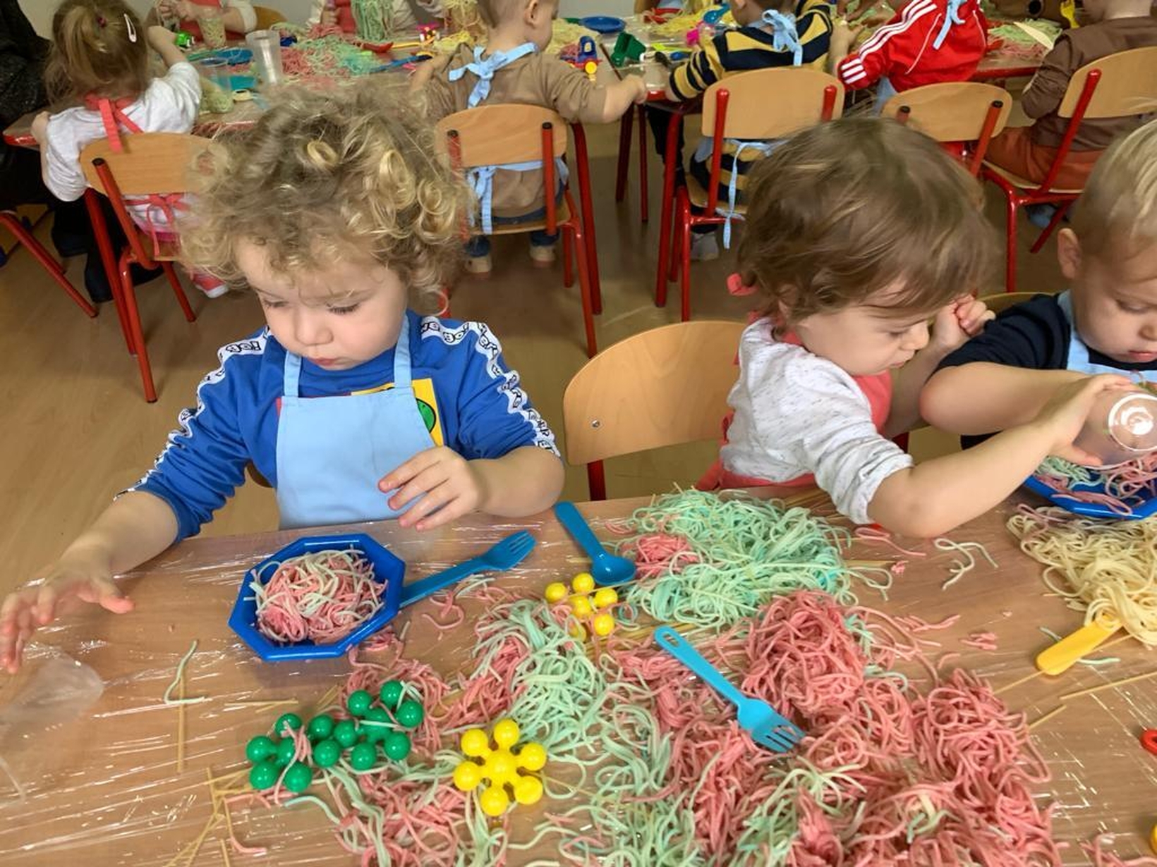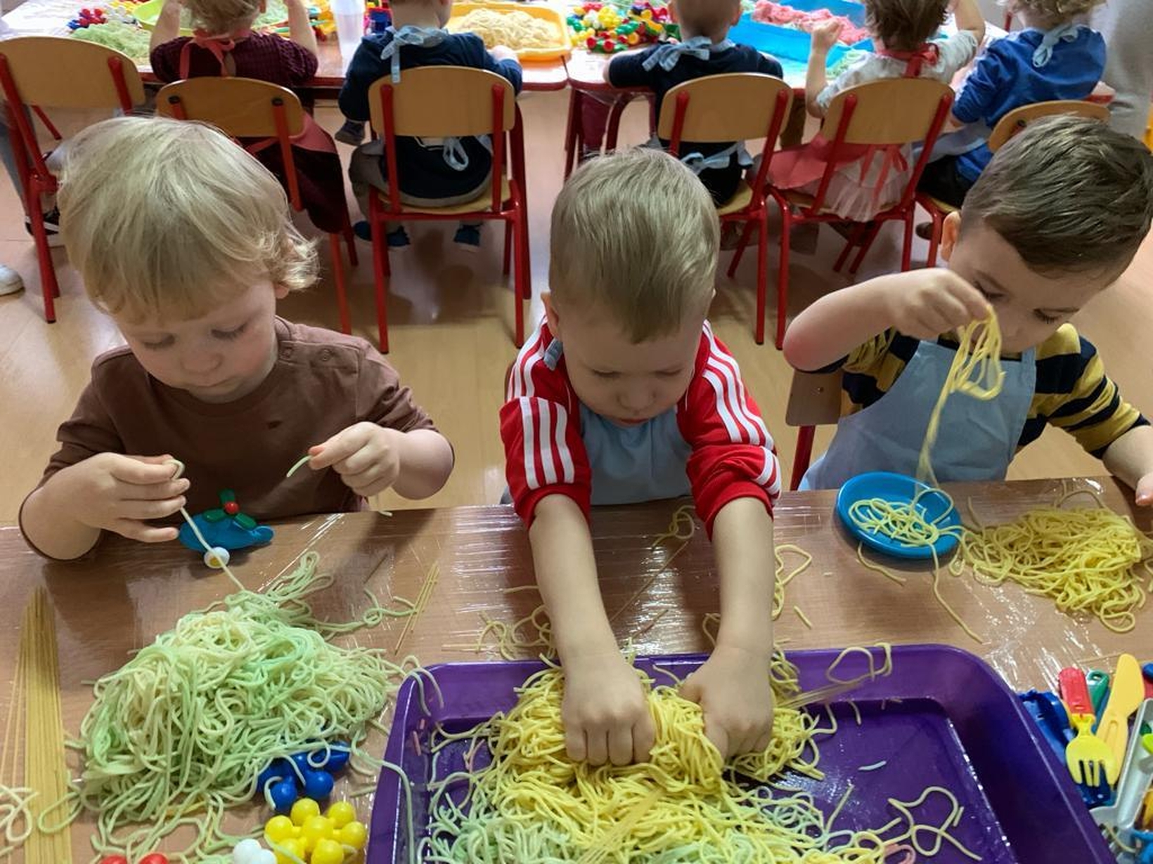 Makaron jest genialnym materiałem do tego typu zabaw. A że dziś obchodzimy dzień spagetti (według kalendarza świąt nietypowych),