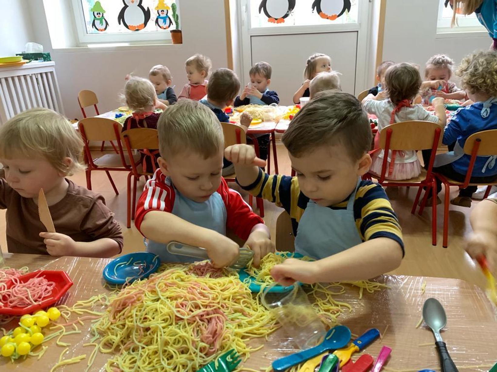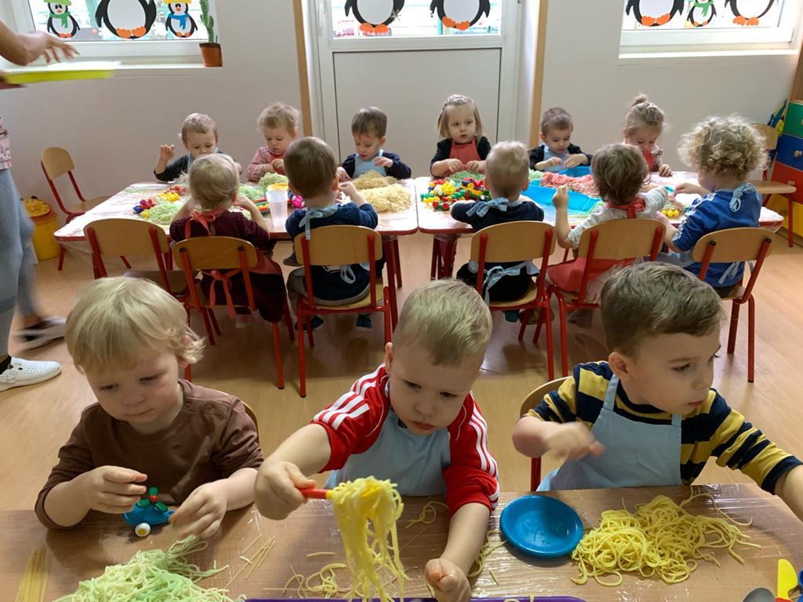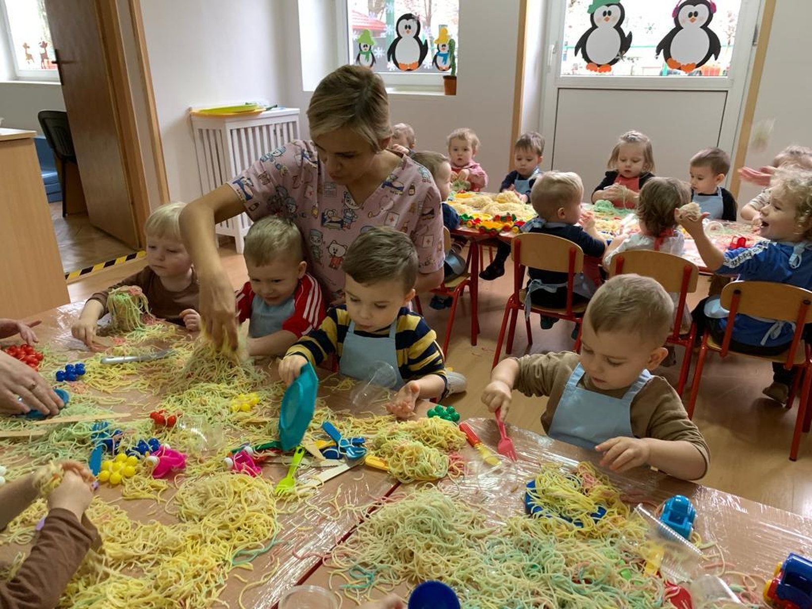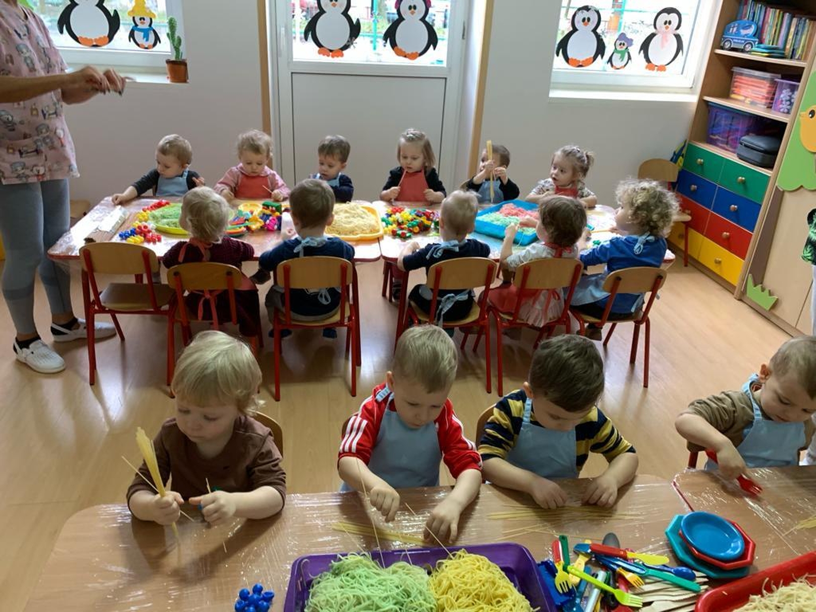 Makaron jest genialnym materiałem do tego typu zabaw. A że dziś obchodzimy dzień spagetti (według kalendarza świąt nietypowych),