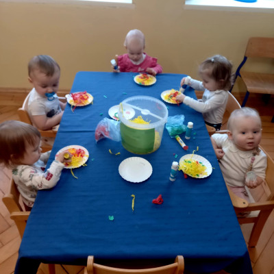 Zdjęcie przedstawia dzieci podczas zajęć w żłobku