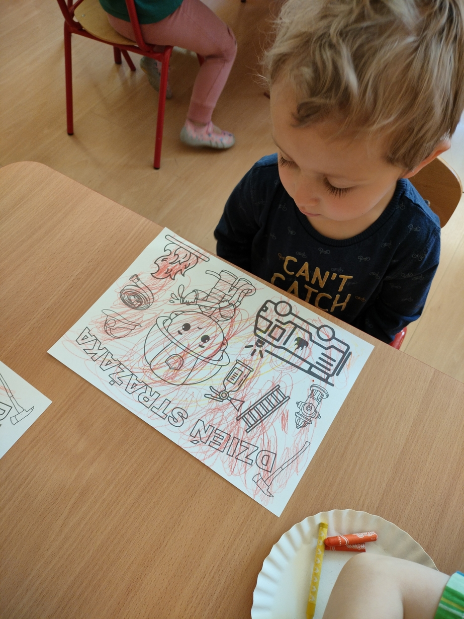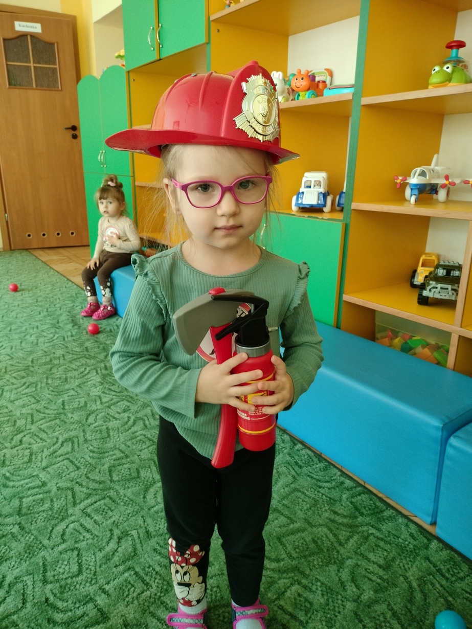Z tej okazji "ciocia praktykantka" starała się przybliżyć dzieciom zawód strażaka oraz ukazać przydatność tego zawodu. Był to dzień, który miał uhonorować pracę strażaków i przypomnieć nam wszystkim jaka jest ona niebezpieczna, a jednocześnie bardzo potrzebna. Podczas zabaw dzieci poznały zagadnienia trudnej i niebezpiecznej pracy strażaków oraz sprzętu, który służy im podczas wykonywania codziennej pracy.