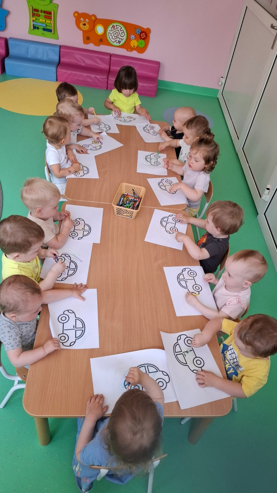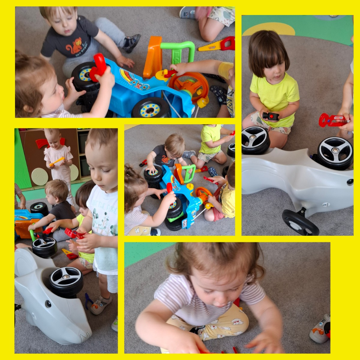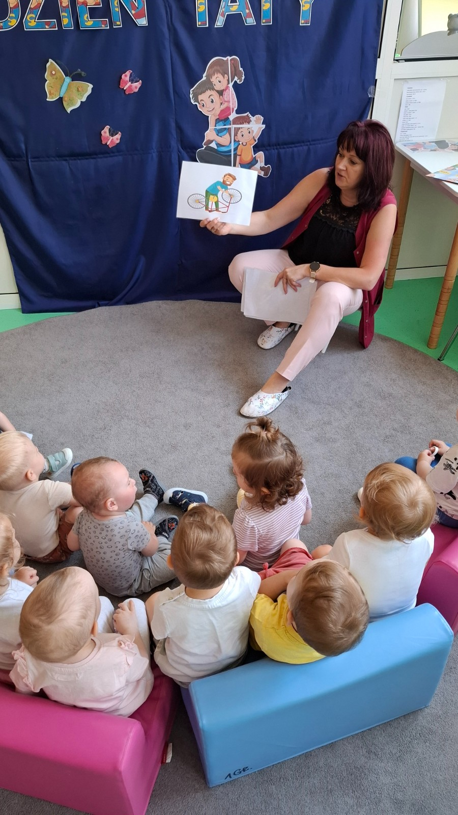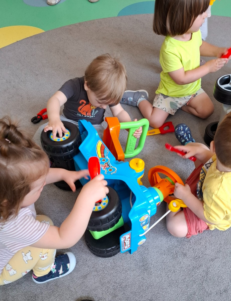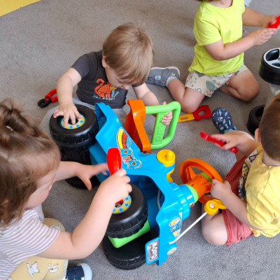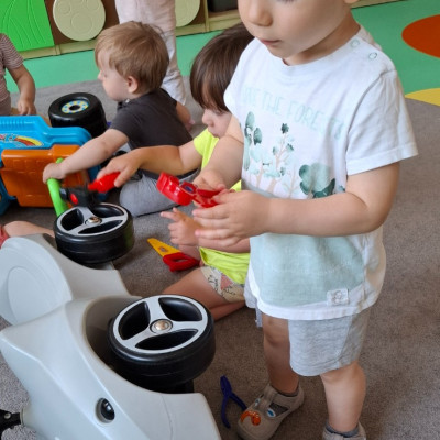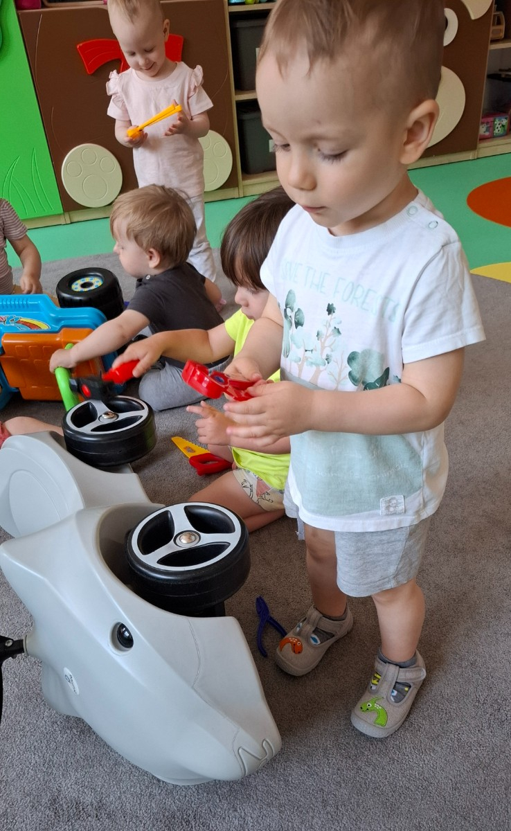 W tym tygodniu na naszej grupie obchodziliśmy Dzień Taty. W ramach zajęć dzieci dowiedziały się jaką rolę pełni tata w rodzinie, jakie czynności najczęściej wykonuje w domu oraz poznały narzędzia, które zazwyczaj znajdują się w jego warsztacie. W celu usprawnienia motoryki małej wykonały pracę plastyczną polegającą na kolorowaniu kredkami samochodów oraz wspólnie z paniami opiekunkami wykonały prezenty niespodzianki które wręczyły swoim tatusiom w podziękowaniu za ich miłość i trud włożony w wychowanie.