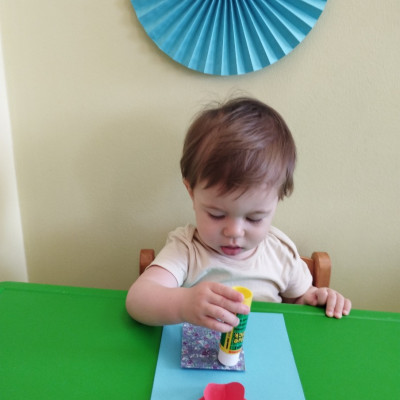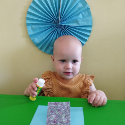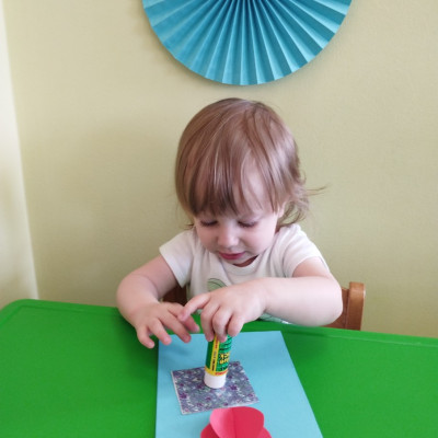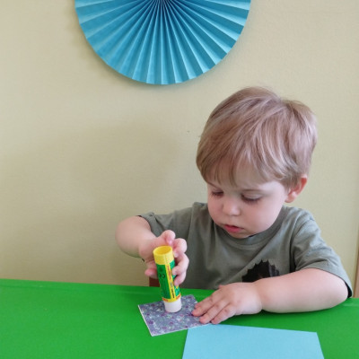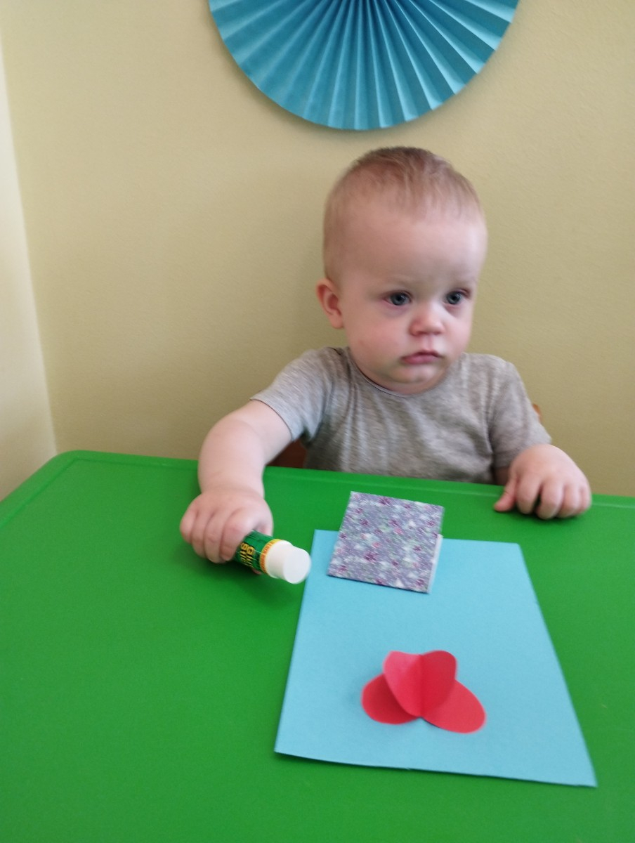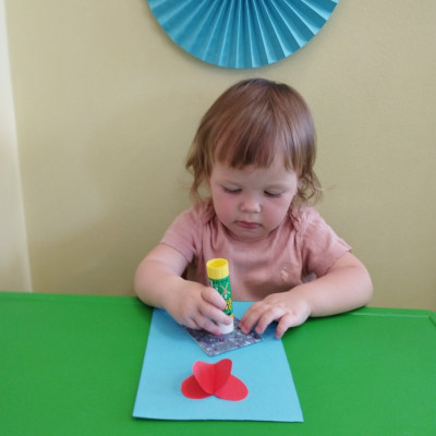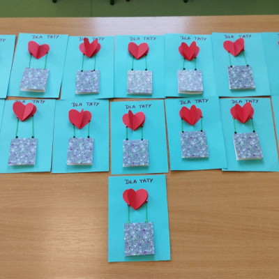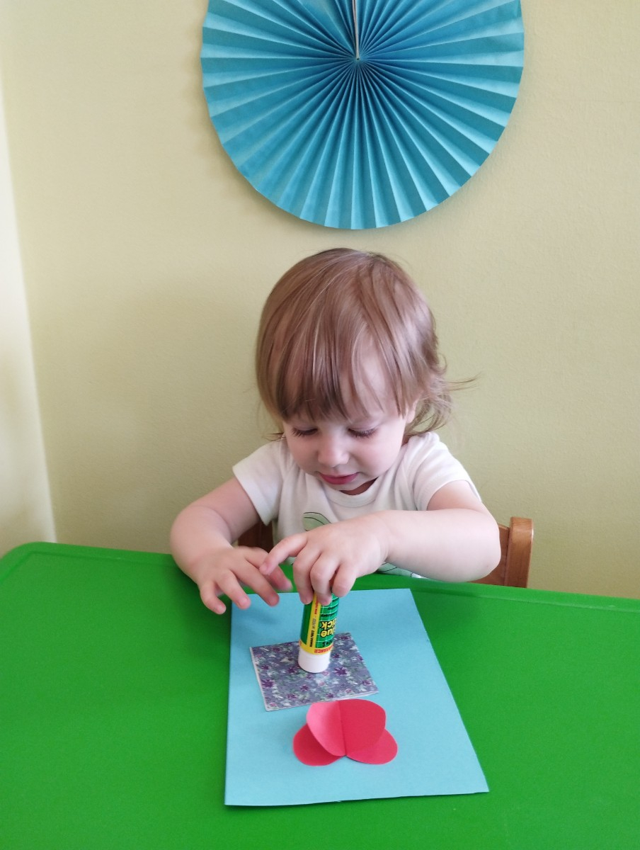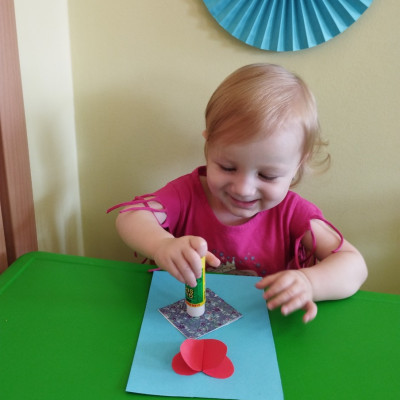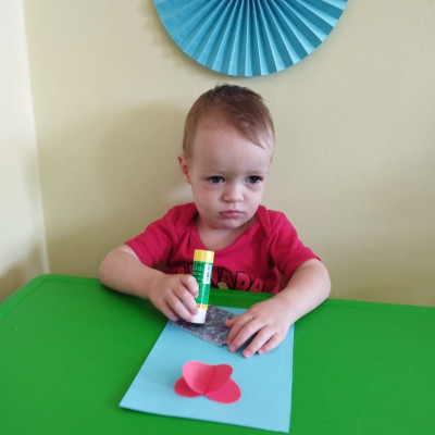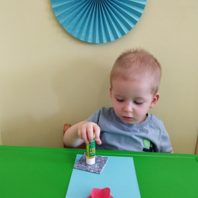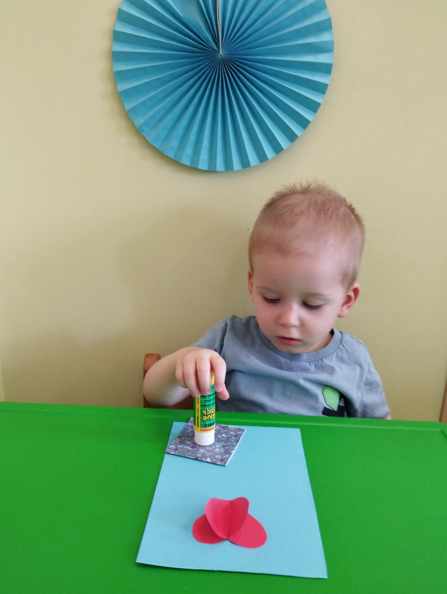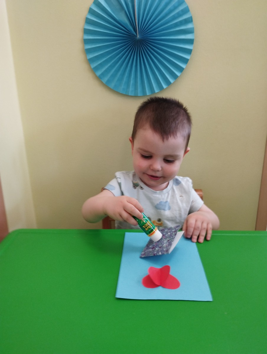 Dzieci z grupy,, Żabki" wykonują laurki na Dzień Taty.