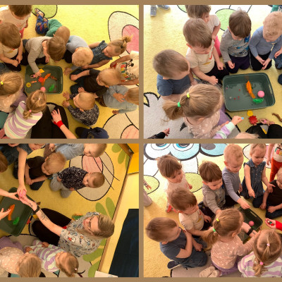 Zdjęcie przedstawia dzieci podczas zajęć w żłobku.
