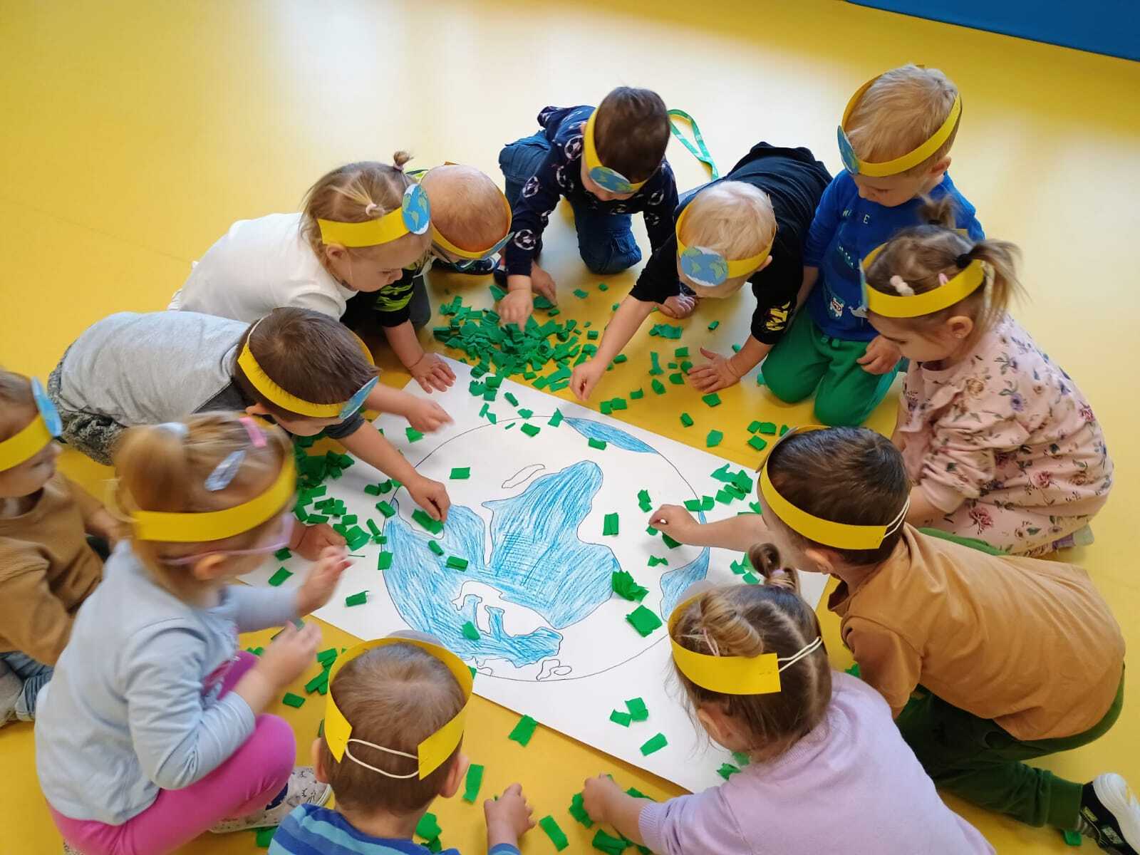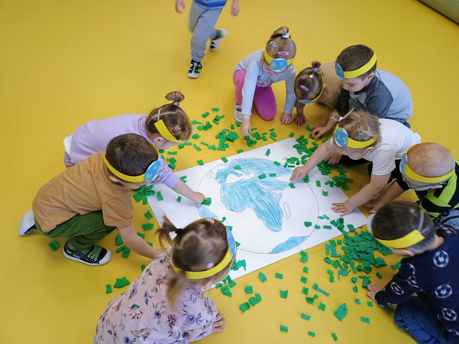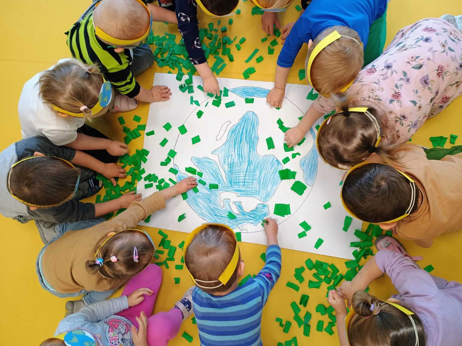 22 kwietnia obchodzimy "Międzynarodowy Dzień Ziemi". Z tej okazji dzieci z grupy Rybek dowiedziały się, jak dbać o środowisko i otaczającą nas przyrodę. Następnie wykonały pracę plastyczną.