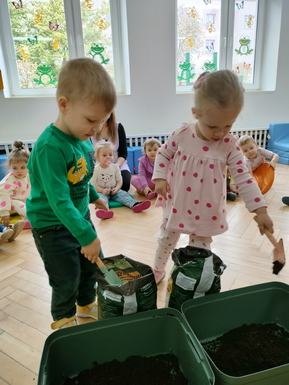 Międzynarodowy Dzień Ziemi ? to Święto, które mamy wpisane na stałe w naszym planie pracy. Jest to święto obchodzone uroczyście na całym świecie. Nasi wychowankowie choć jeszcze mali, też pięknie rozumieją potrzebę dbania o naszą Planetę poprzez dbanie o najbliższe im środowisko. W czasie zajęć Misie? przypomniały sobie zasady, których należy przestrzegać, aby chronić środowisko naturalne. Wspólnie utworzyliśmy Kodeks Małego Ekologa??. Dla najmniejszych mieszkańców naszej planety, czyli owadów?? przygotowaliśmy donice, w których mamy nadzieję zakwitnie kwietna łąka. Przygotowaliśmy też kolorowe domki, które zawisły w żłobkowym ogrodzie i czekają na małych mieszkańców???. W taki drobny sposób chcemy przyczynimy się i zadbać o "zdrowie" naszej planety??.