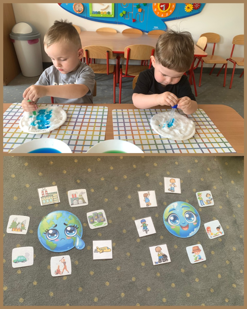 Dowiedziały się co sprawia, że ziemia jest smutna (zanieczyszczona) oraz co możemy zrobić aby była szczęśliwa (czysta). Misie 🐻 bardzo ładnie segregowały śmieci , wykonały prace plastyczną ,, moja ziemia”. Wszystkie te działania miały na celu podkreślić jak ważne jest nasze zaangażowanie w działania na rzecz naszej planety.