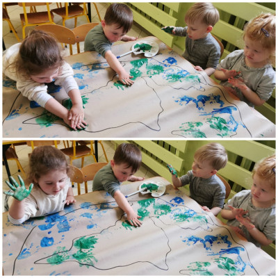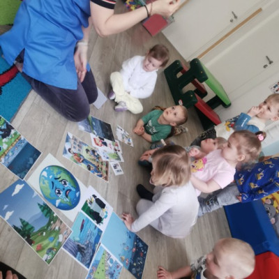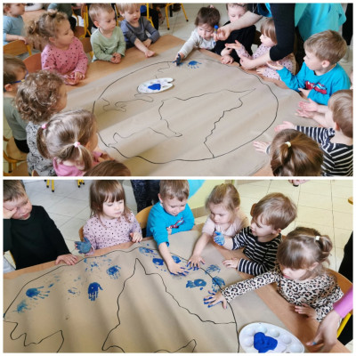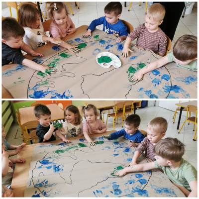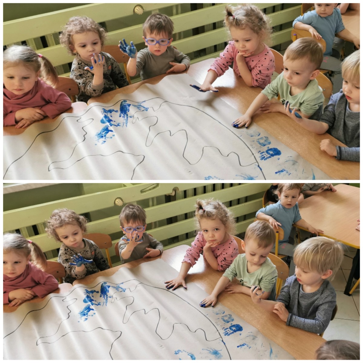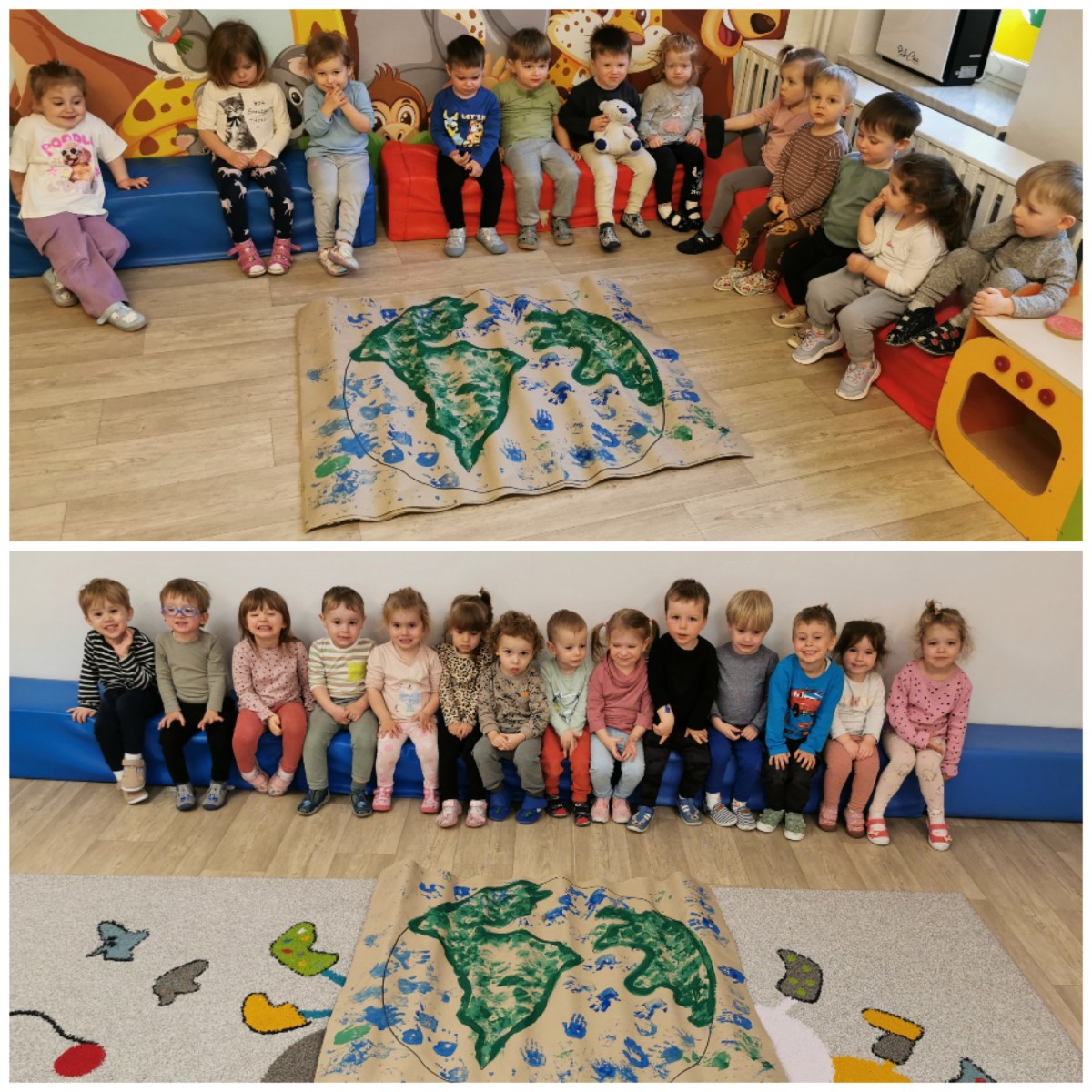 Nasze ma艂e 呕abki uczci艂y 艣wi臋to Naszej Planety Ziemi z okazji zbli偶aj膮cego si臋 Dnia Ziemi. Z tej okazji wykonali艣my wsp贸lnie plakat przedstawiaj膮cy nasz膮 Planet臋. Dzieci odbija艂y na plakacie kolorowymi farbami swoje r膮czki co symbolizowa艂o fakt, 偶e Ziemia jest w naszych r臋kach. Odby艂y si臋 r贸wnie偶 zaj臋cia zwi膮zane z nasz膮 Planet膮 i wszystkim co czyni j膮 przyjazn膮 dla innych. Wysluchali艣my pouczaj膮cej bajeczki, wsp贸lnie segregowalismy 艣mieci bo wiemy, 偶e dbaj膮c o dobro Ziemi - dbamy o nasze wsp贸lne.