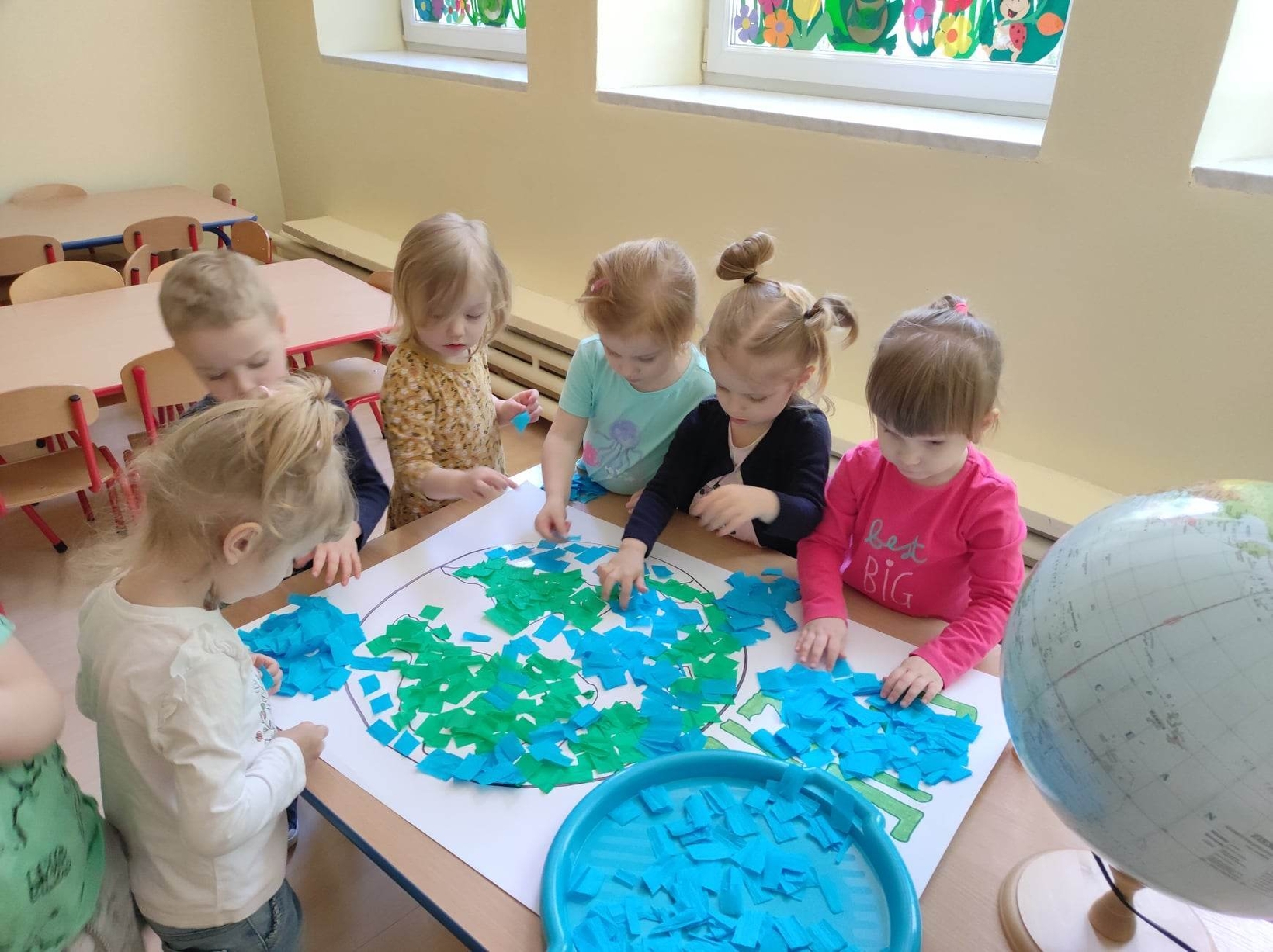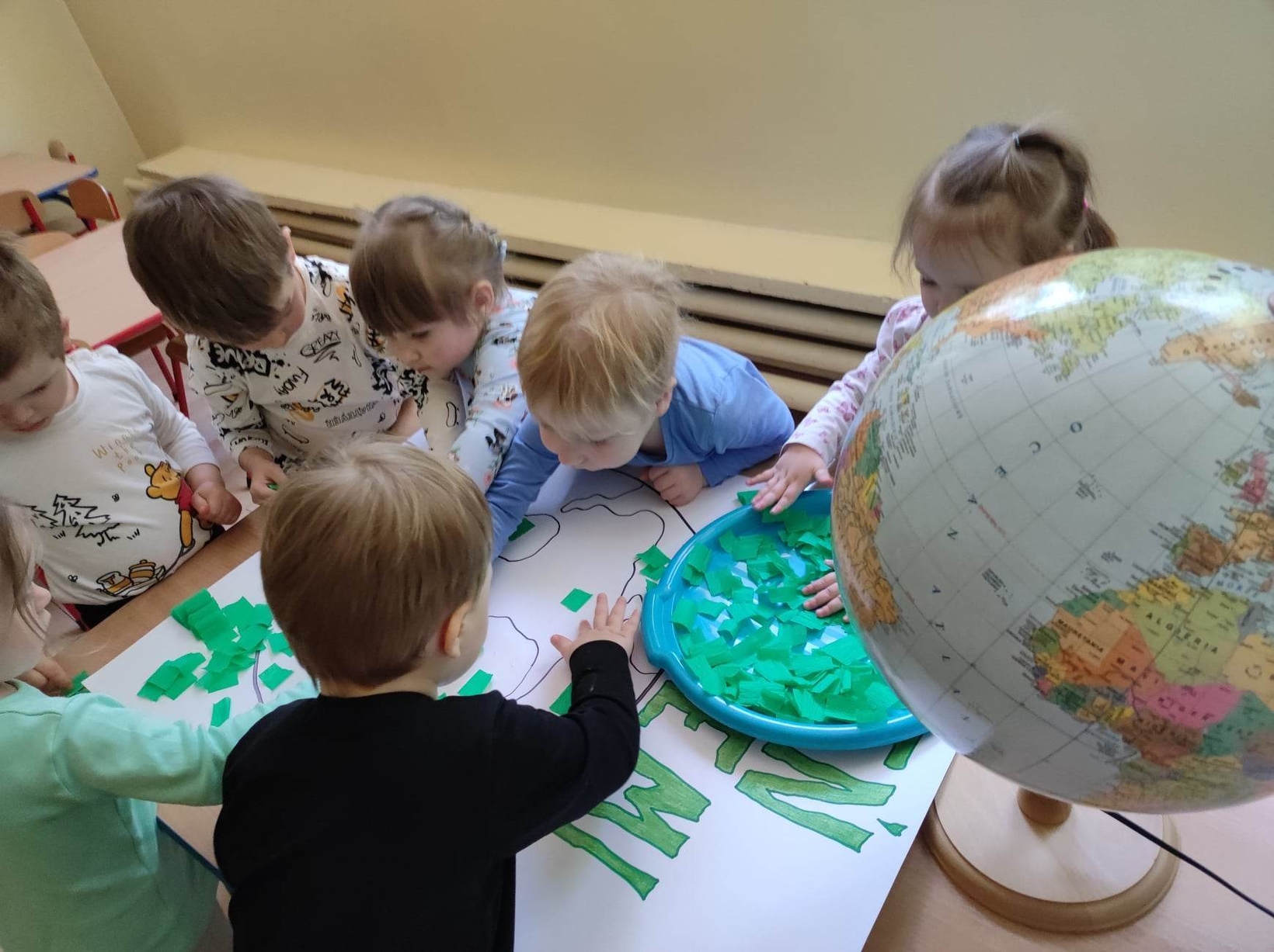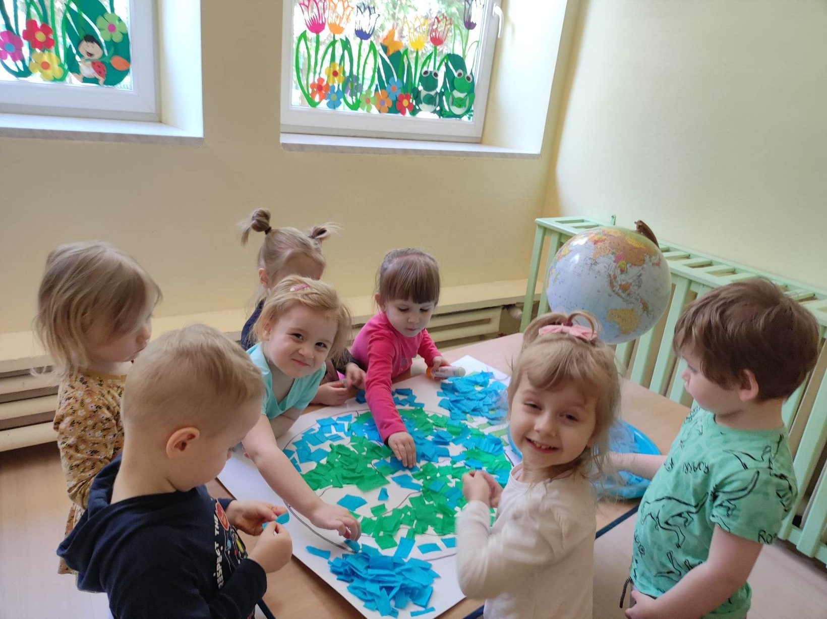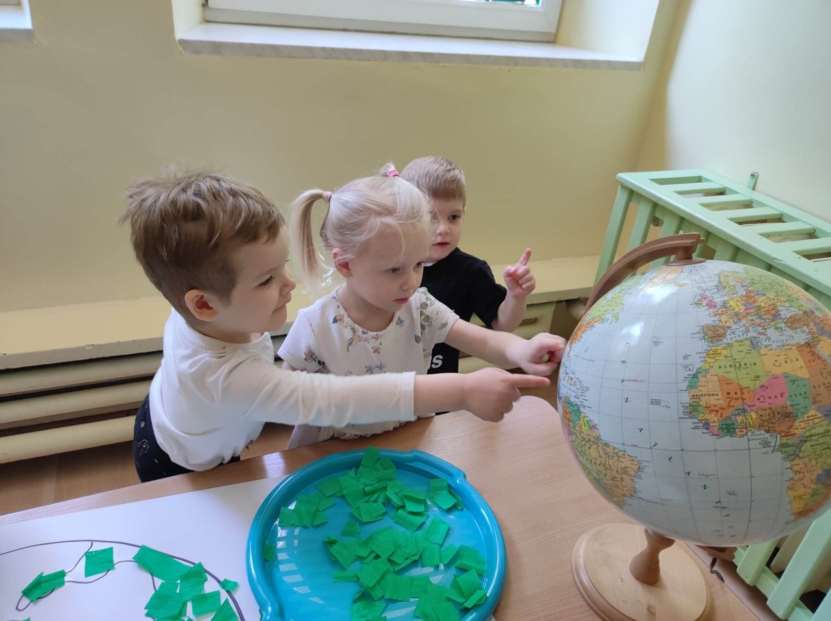 Z okazji tego ważnego dnia w Żłobku odbyły się zajęcia, na których dzieci miały okazję zapoznać pomniejszony model Ziemi - globus.