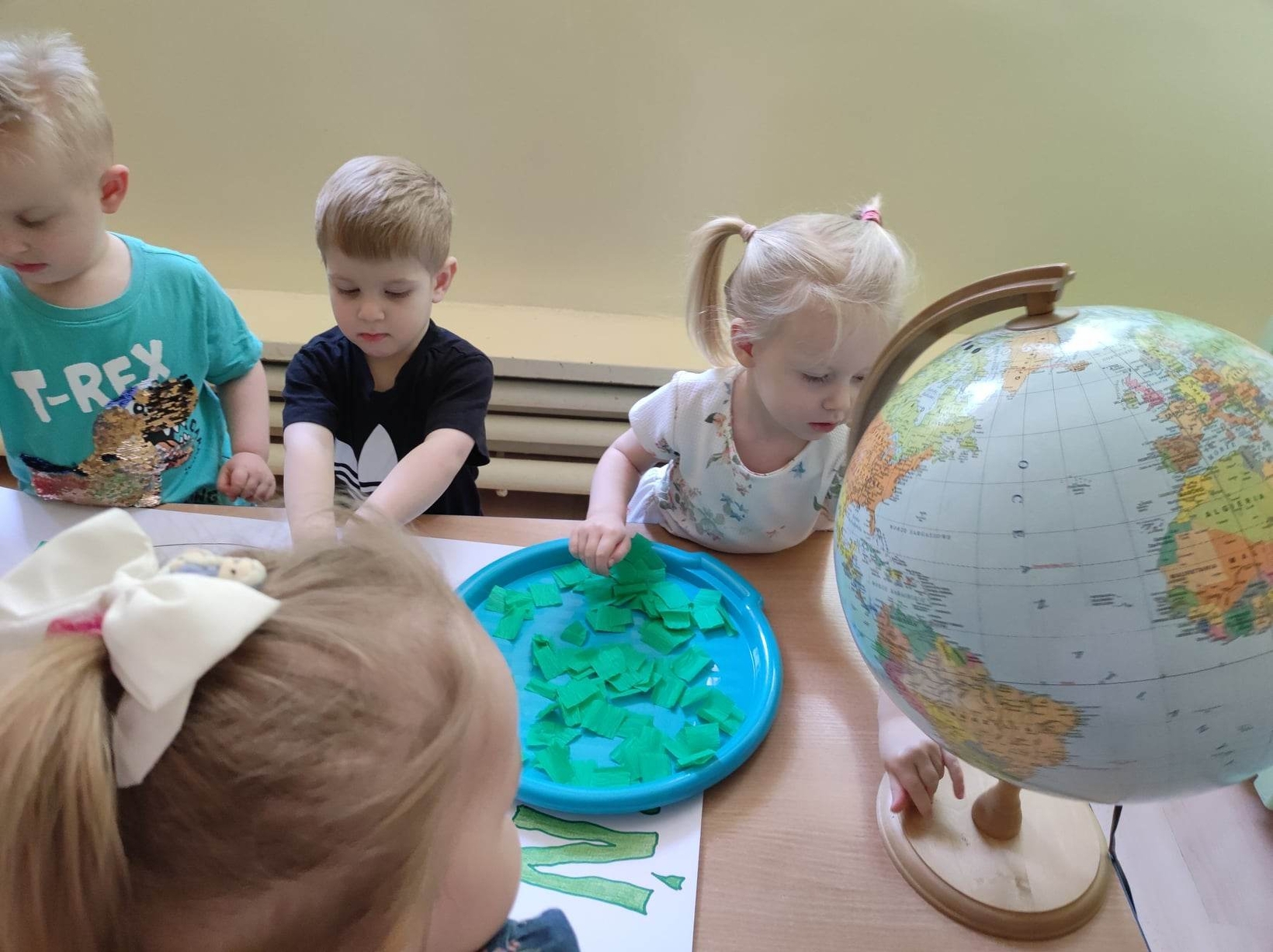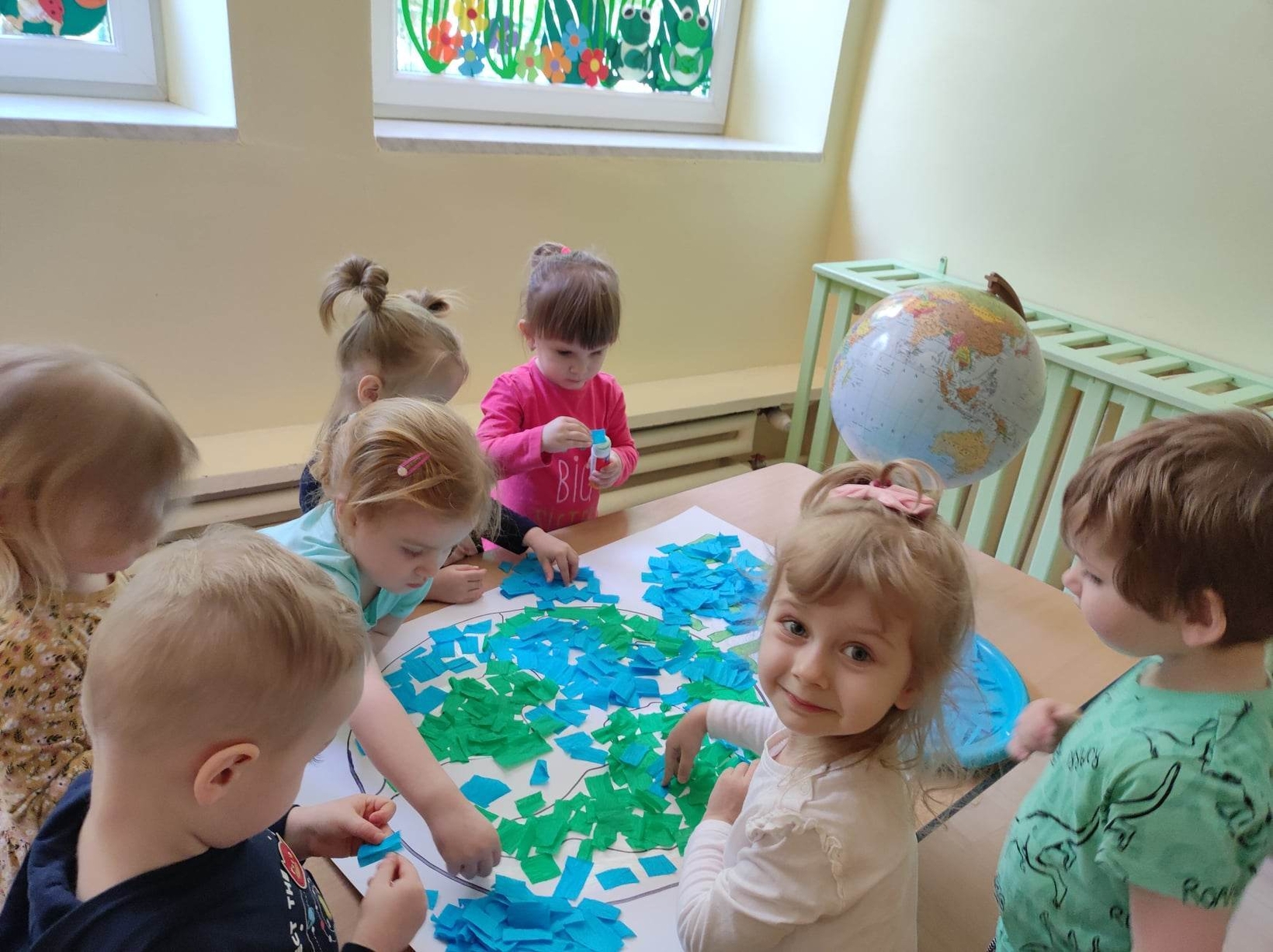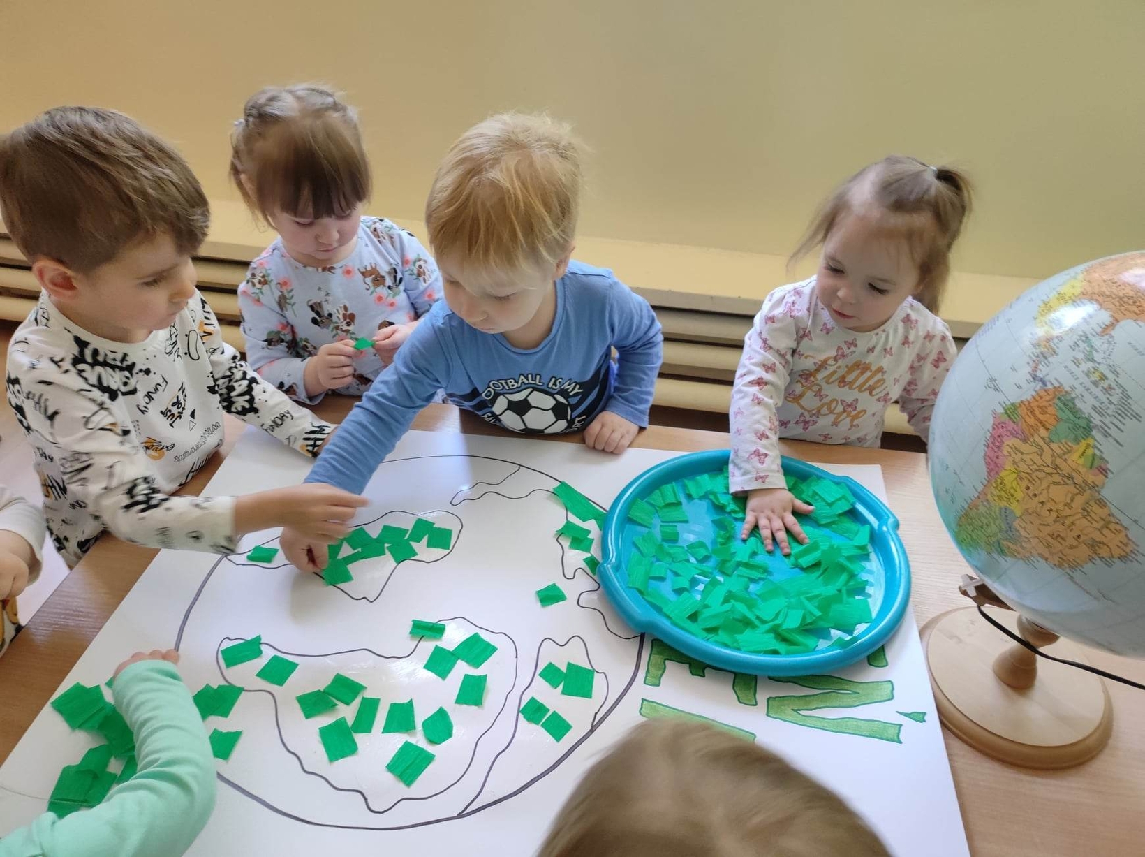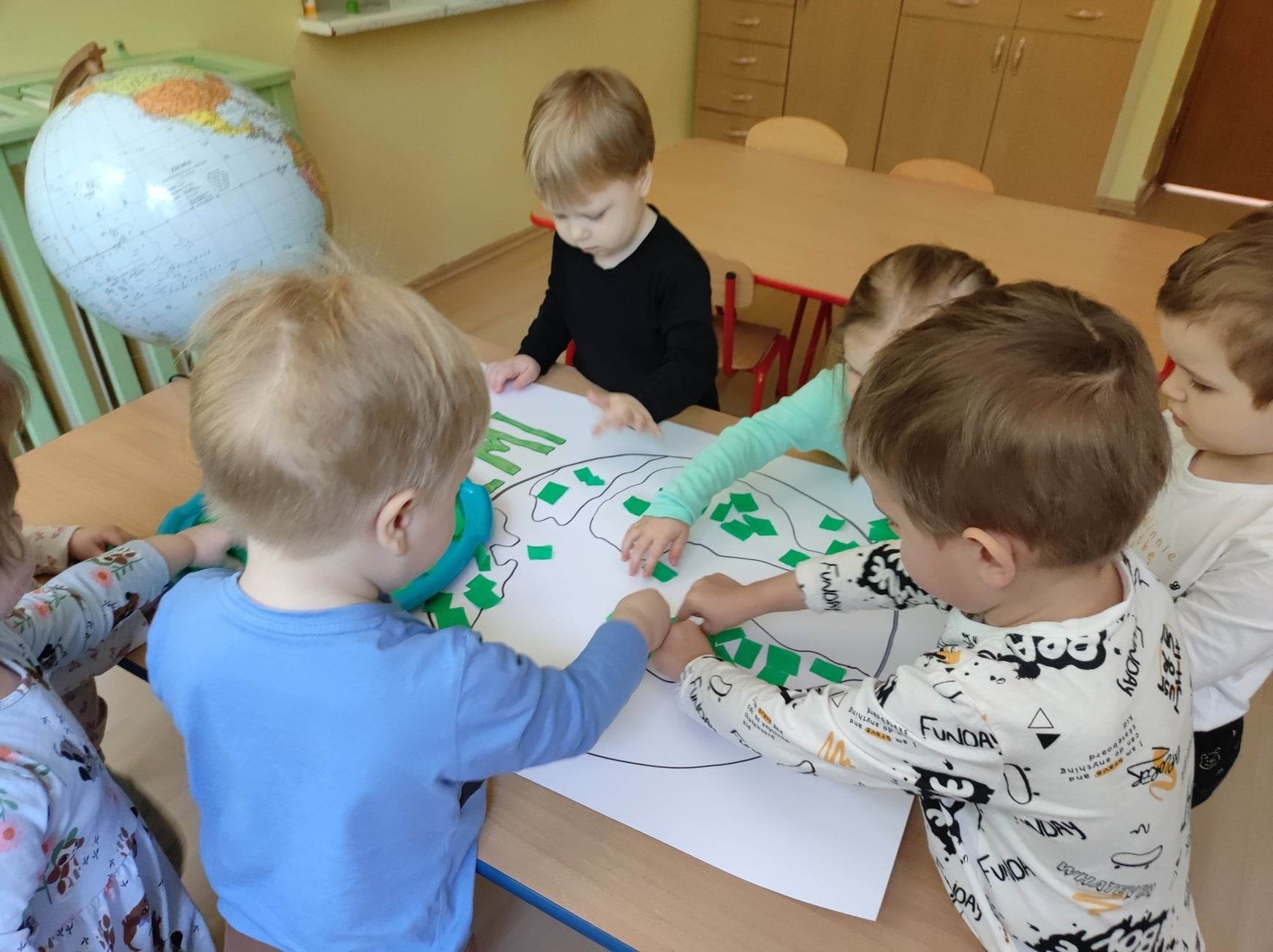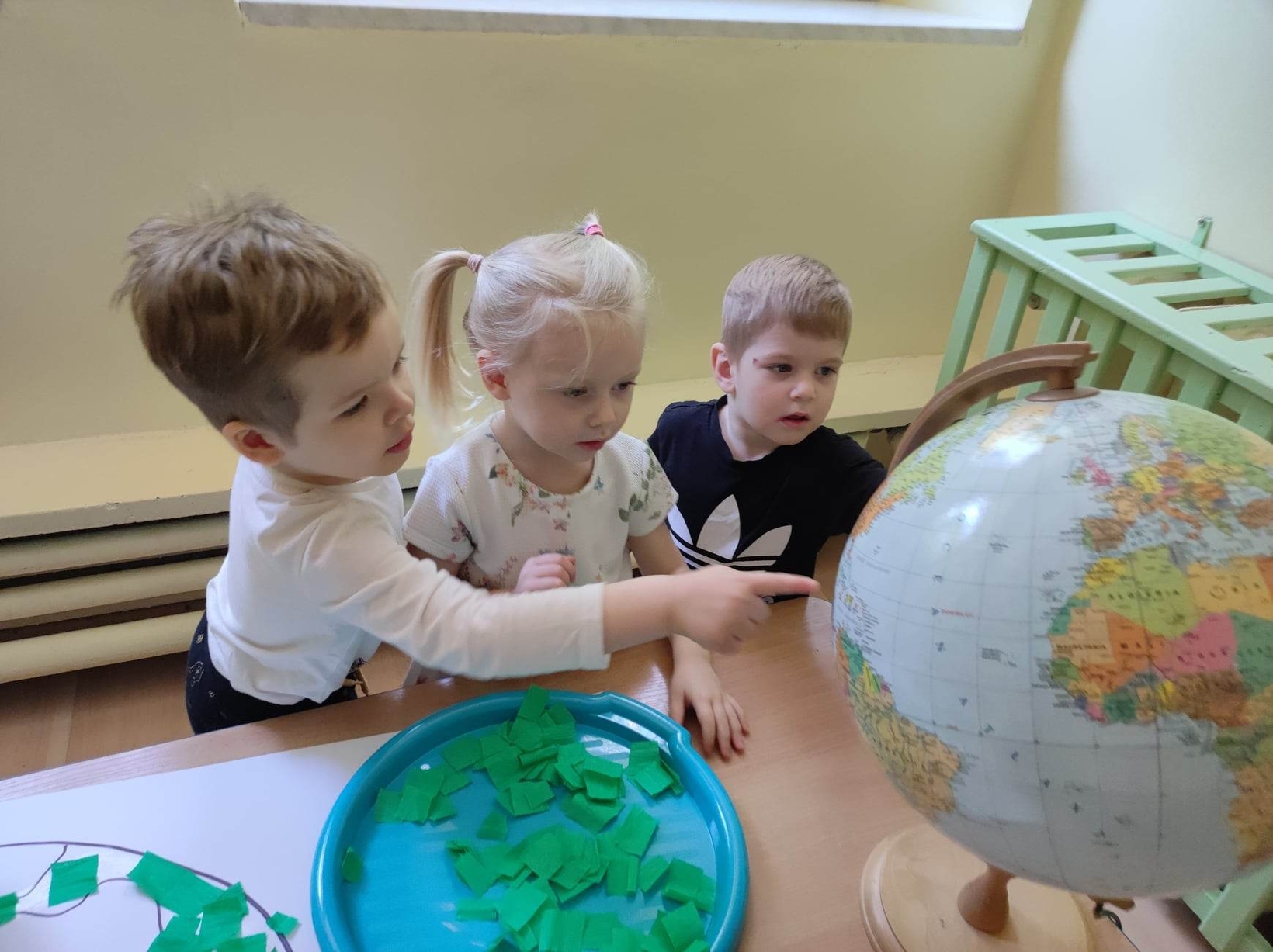 Z okazji tego ważnego dnia w Żłobku odbyły się zajęcia, na których dzieci miały okazję zapoznać pomniejszony model Ziemi - globus.