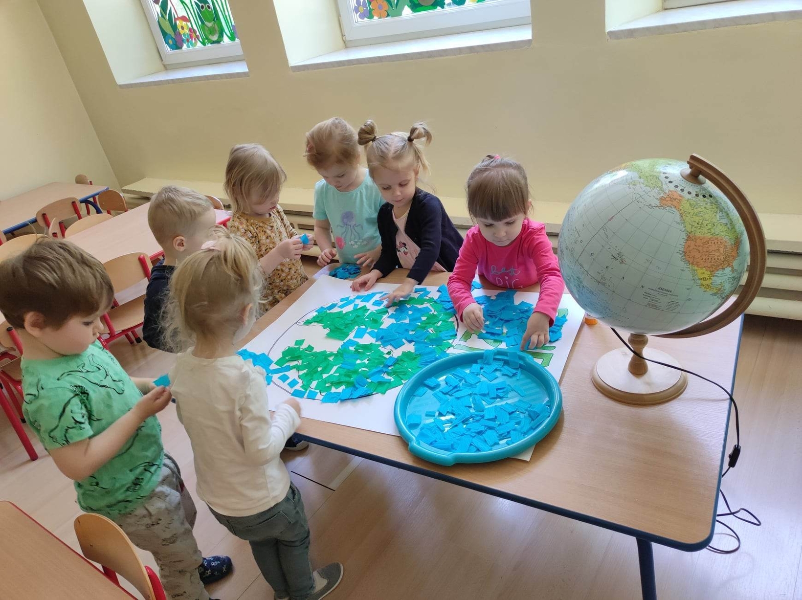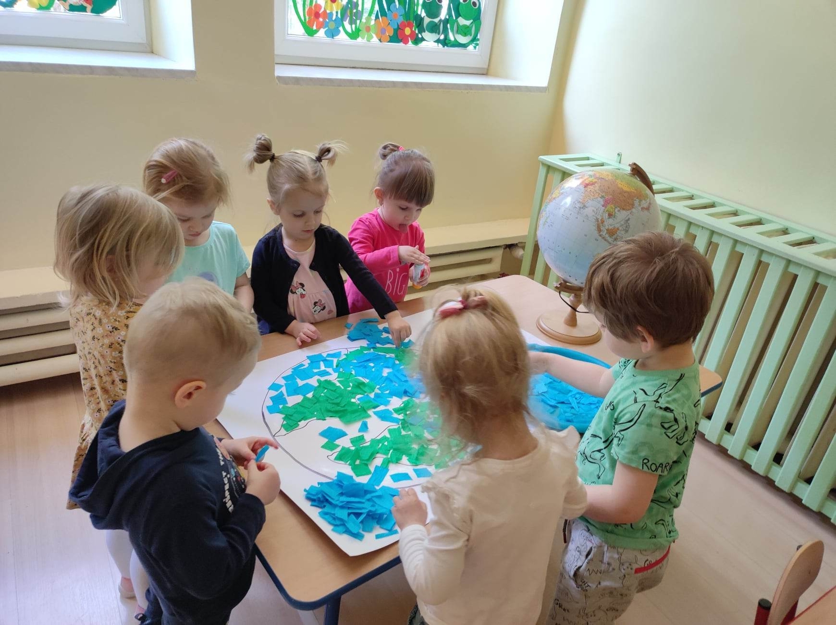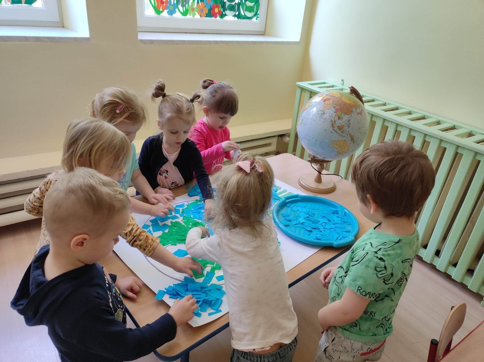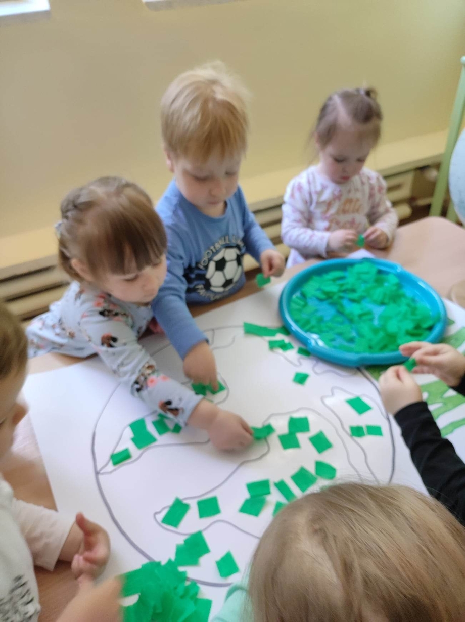 Z okazji tego ważnego dnia w Żłobku odbyły się zajęcia, na których dzieci miały okazję zapoznać pomniejszony model Ziemi - globus.