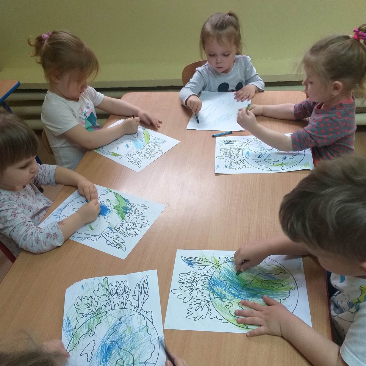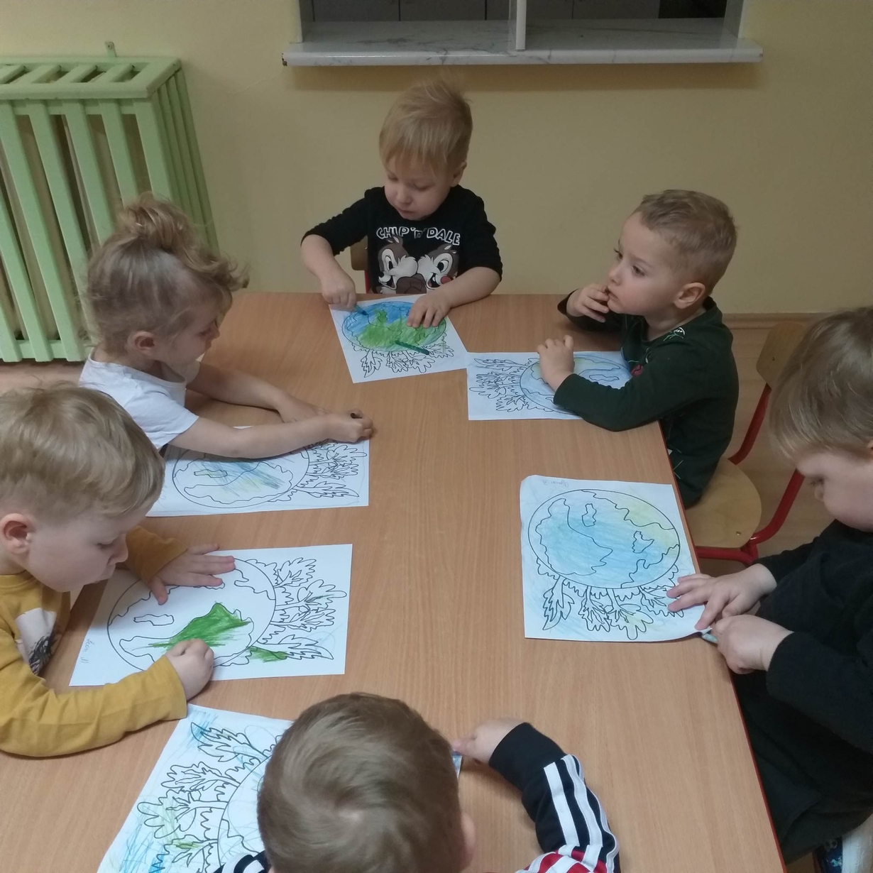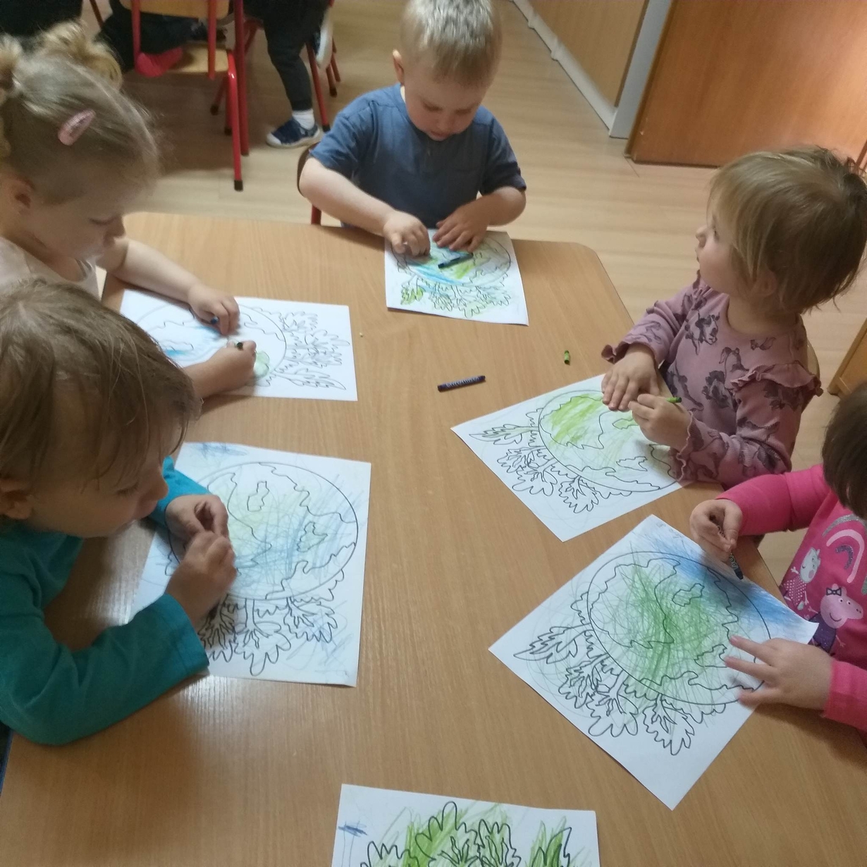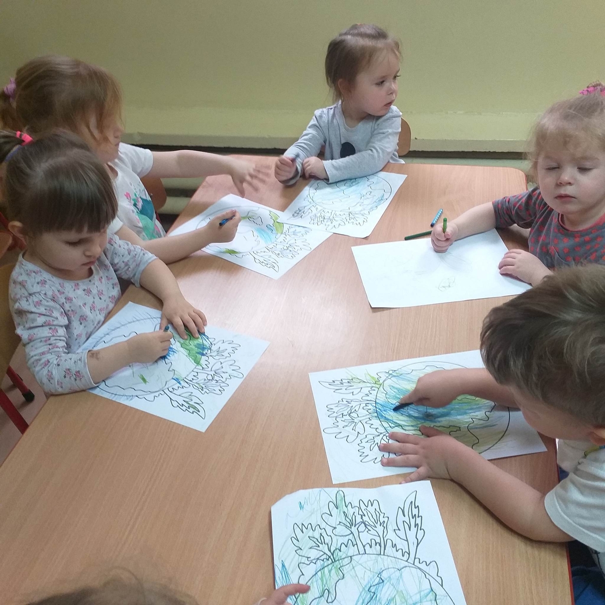 Dzieci miały też okazję porozmawiać o tym co sprawia, że Ziemia jest smutna (zanieczyszczona) oraz co możemy dla niej zrobić aby była szczęśliwa (czysta).