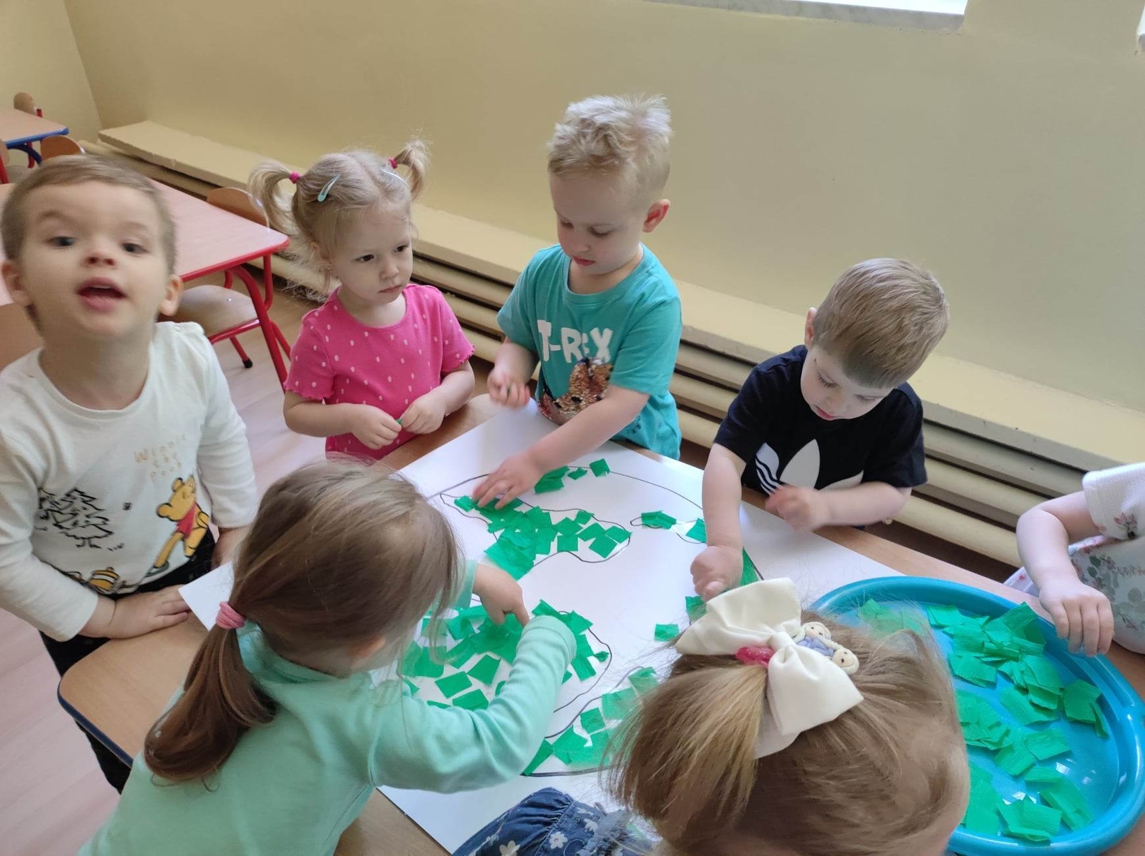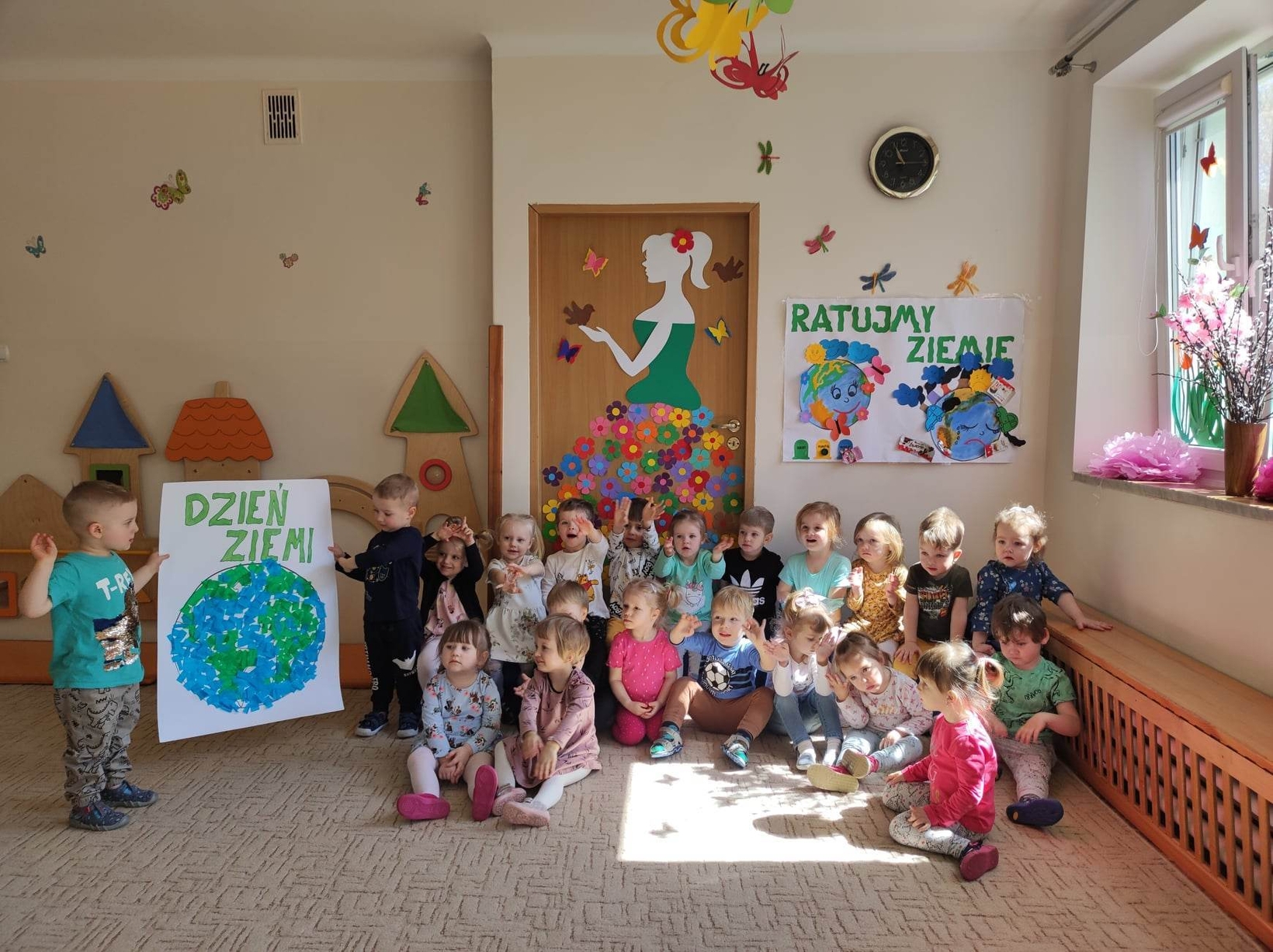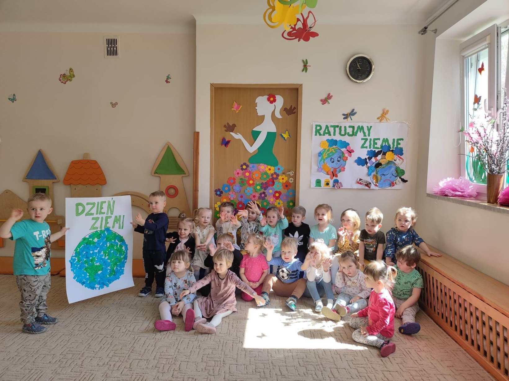 Motylki przypomniały sobie także zasady segregacji śmieci, a na koniec wykonały wspólnie piękną pracę praktyczną.