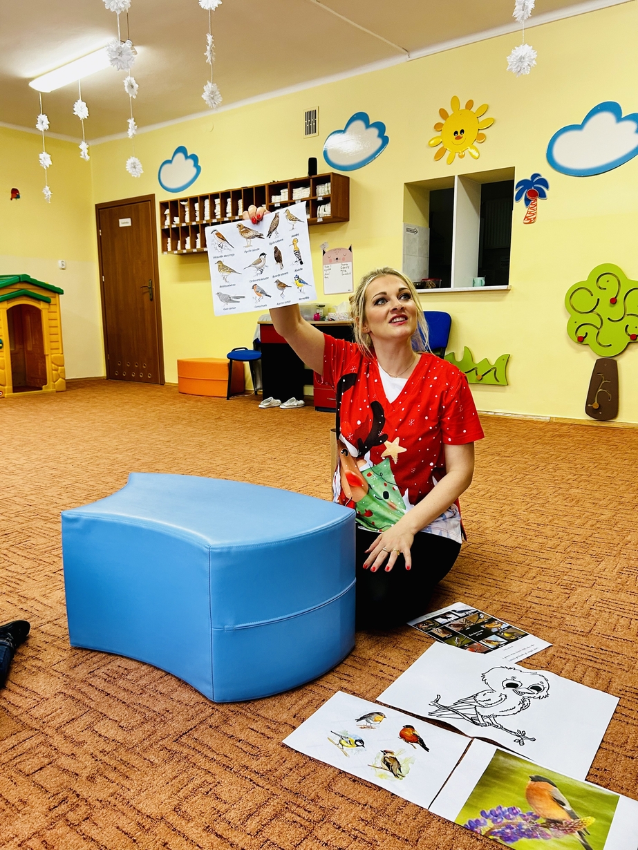 Podczas zajęć edukacyjnych Biedroneczki dowiedziały się o potrzebie dokarmiania ptaków zimą, oraz poznały wybrane gatunki zimujące w Polsce. Następnie obejrzały jak wygląda karmnik i specjalne pożywienie dla ptaków.