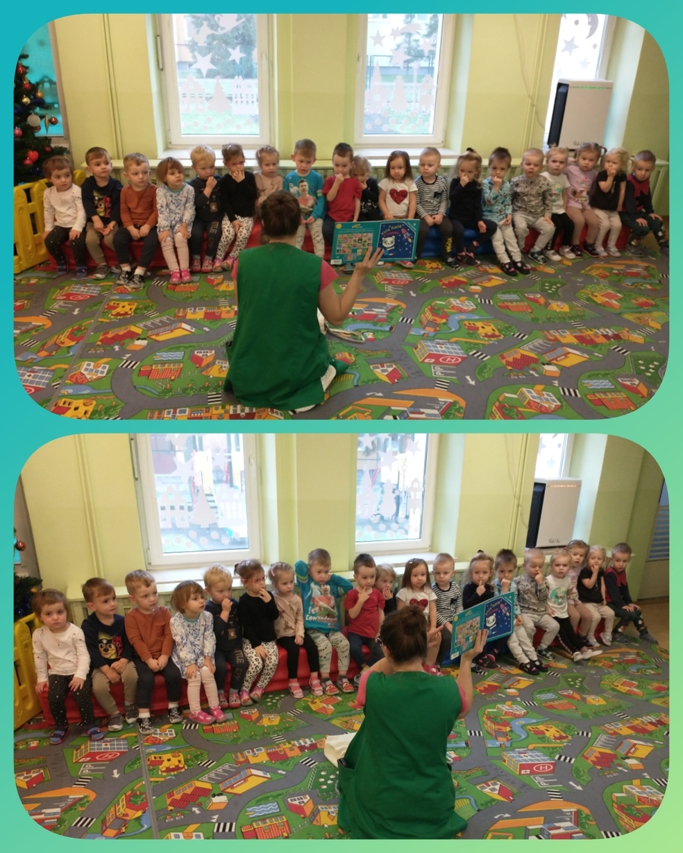 Dzieci uczestniczyły w zajęciach czytelniczych, słuchając czytanych przez opiekunkę książeczek oraz oglądając obrazki w wybranych przez siebie bajkach.
