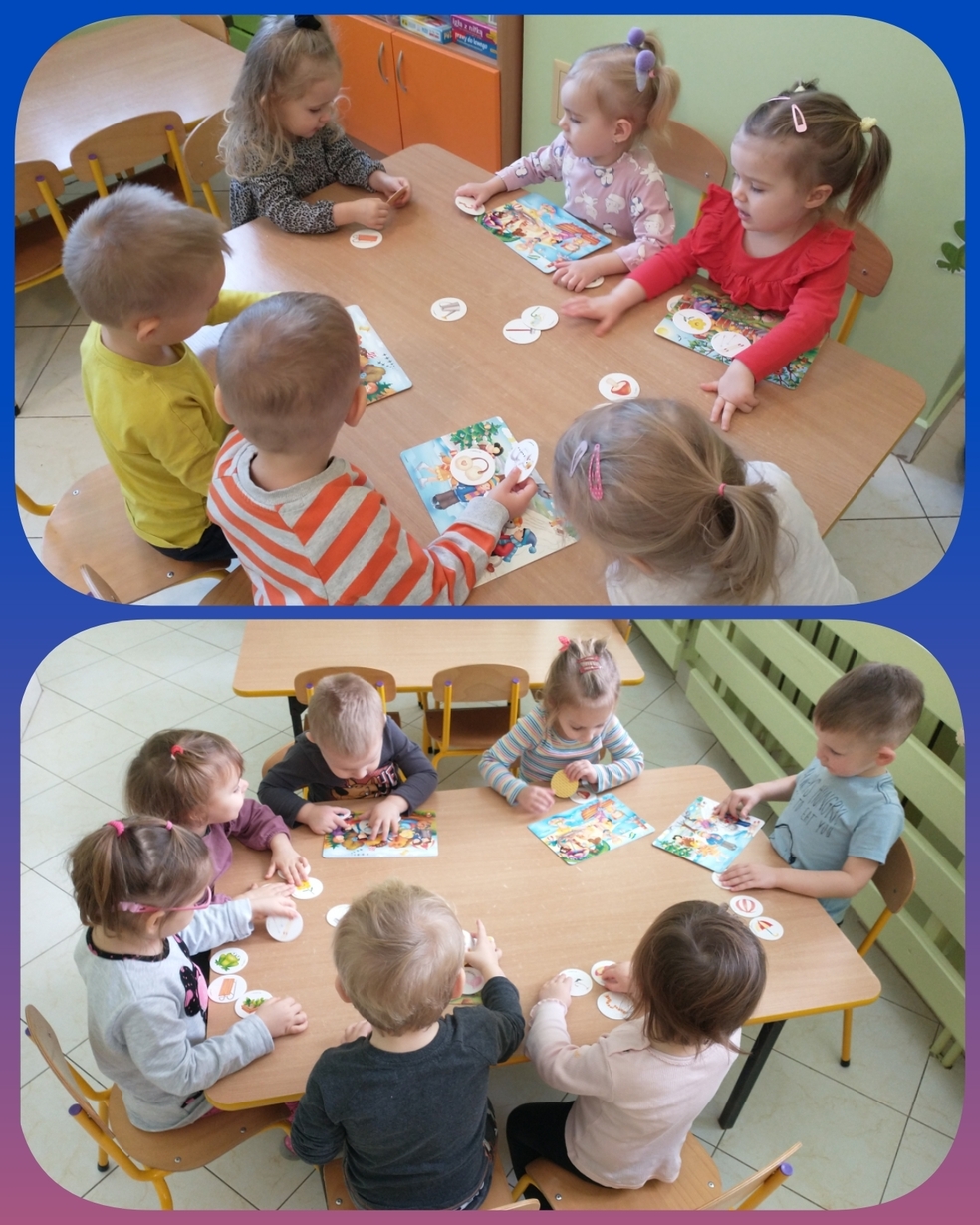 Nasi podopieczni ćwiczyli również koordynację ręka-oko, dopasowując otrzymane kółeczka do obrazka.