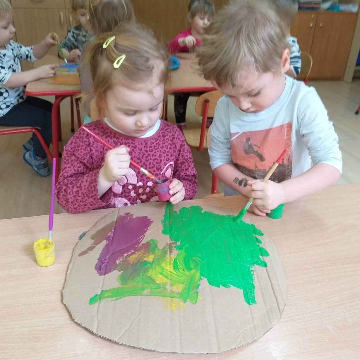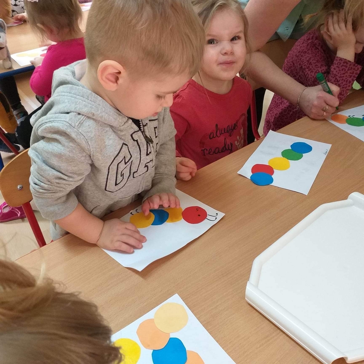 Ten tydzień zaczęliśmy od wyklejania stonogi i malowania jej części.