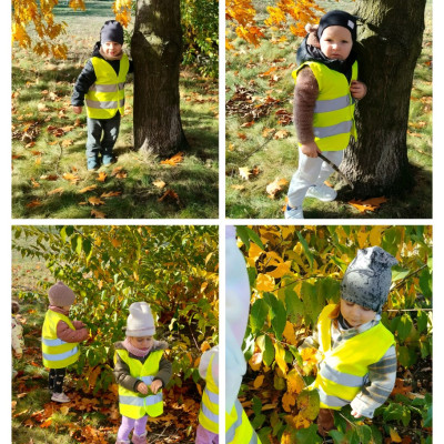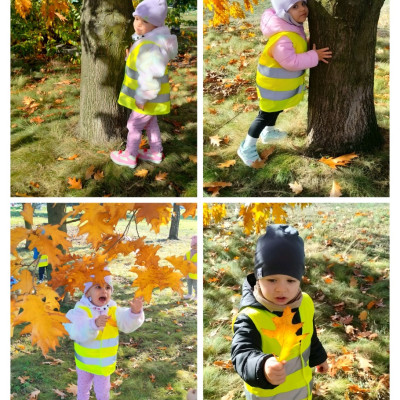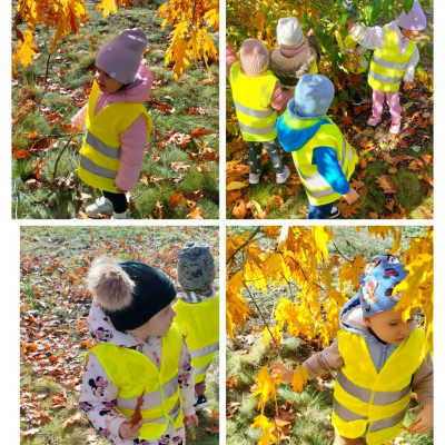 Podczas jesiennego spaceru dzieci obserwowały drzewa, zbierały kolorowe liście i poznawały ich różne kształty🍁🍂. Spacer był okazją do rozmów o zmianach zachodzących w przyrodzie oraz do aktywnego spędzania czasu na świeżym powietrzu. Pozbierane natomiast listki były inspiracją do pracy plastycznej, która miała na celu utrwalenie informacji o obecnej porze roku oraz dominujacych barw tej złotej aury🍂🍁🍂.