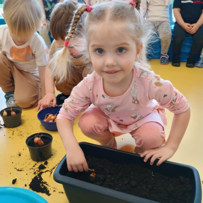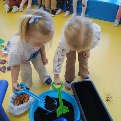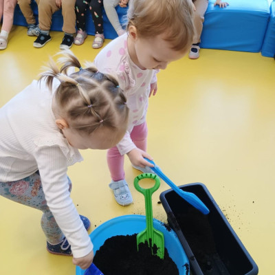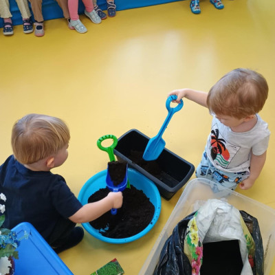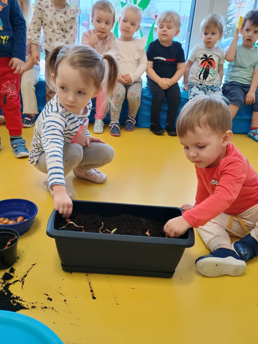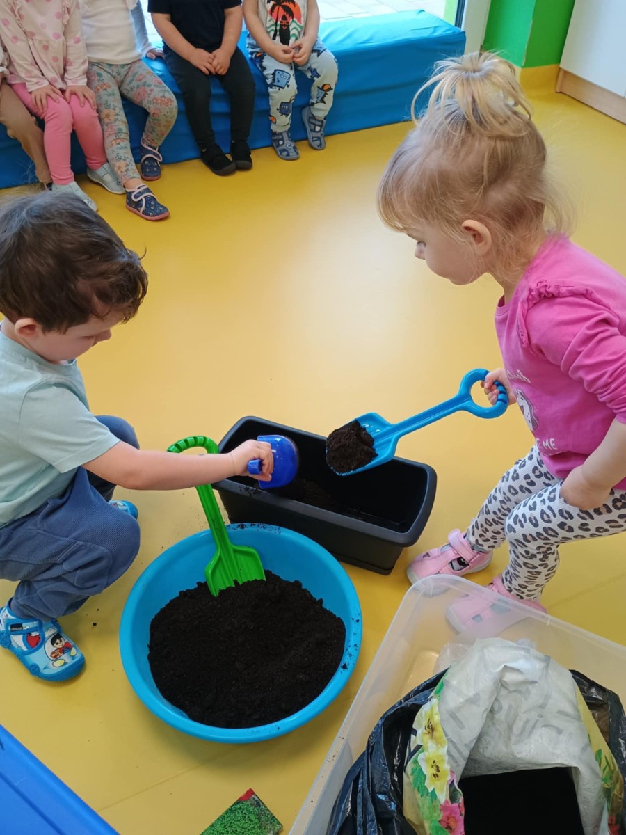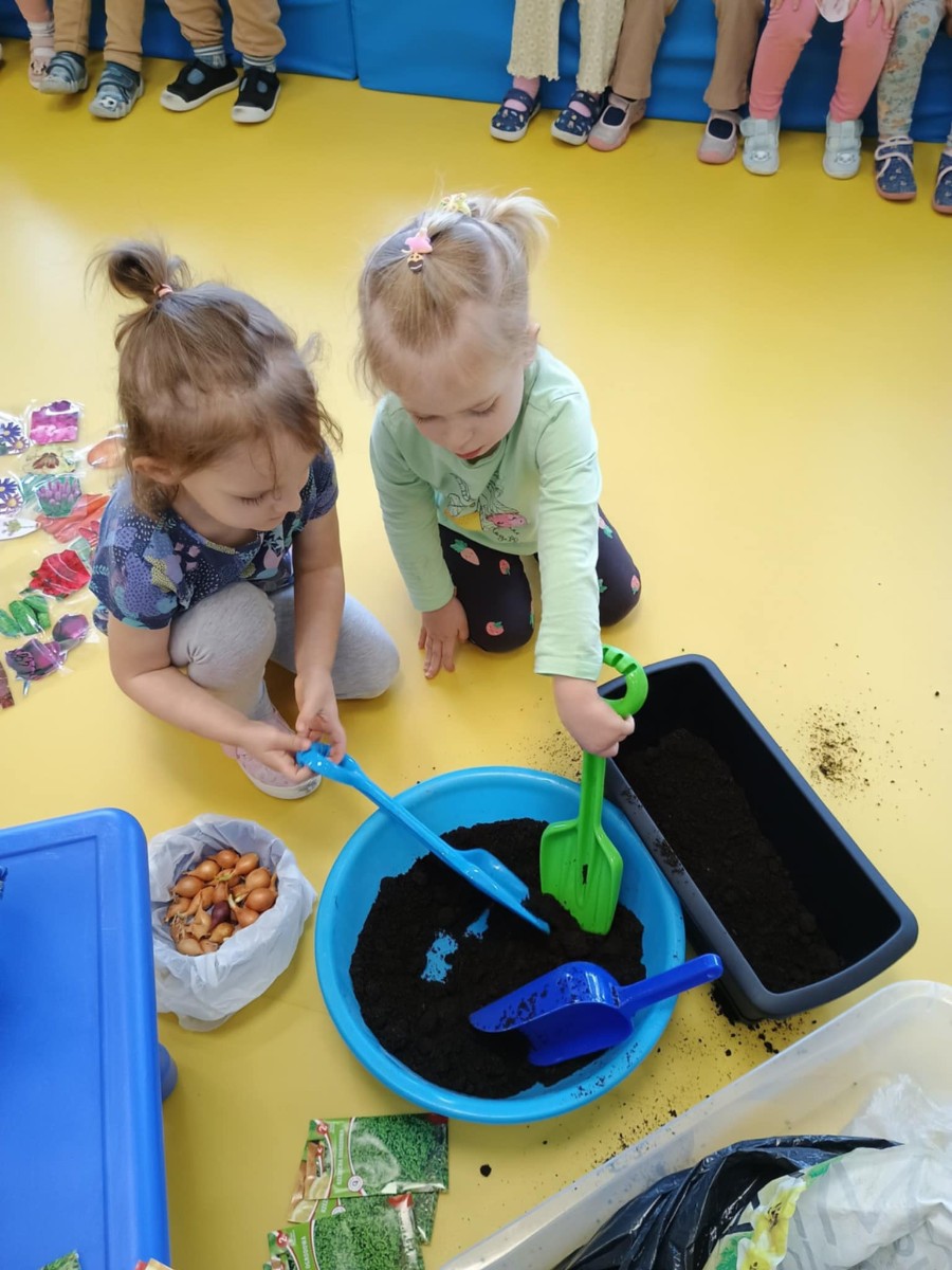 W dniu dzisiejszym w grupie Rybek odbyły się zajęcia pt.„Sadzimy kwiaty”, gdzie dzieci poszerzały wiadomości na temat wiosennych kwiatów i warunków niezbędnych do ich rozwoju. Dzieci miały okazję zabawić się w ogrodników i dowiedzieć się do czego służą odpowiednie sprzęty m.in. doniczka, ziemia, łopatka, sadzonki, rękawiczki, konewka.