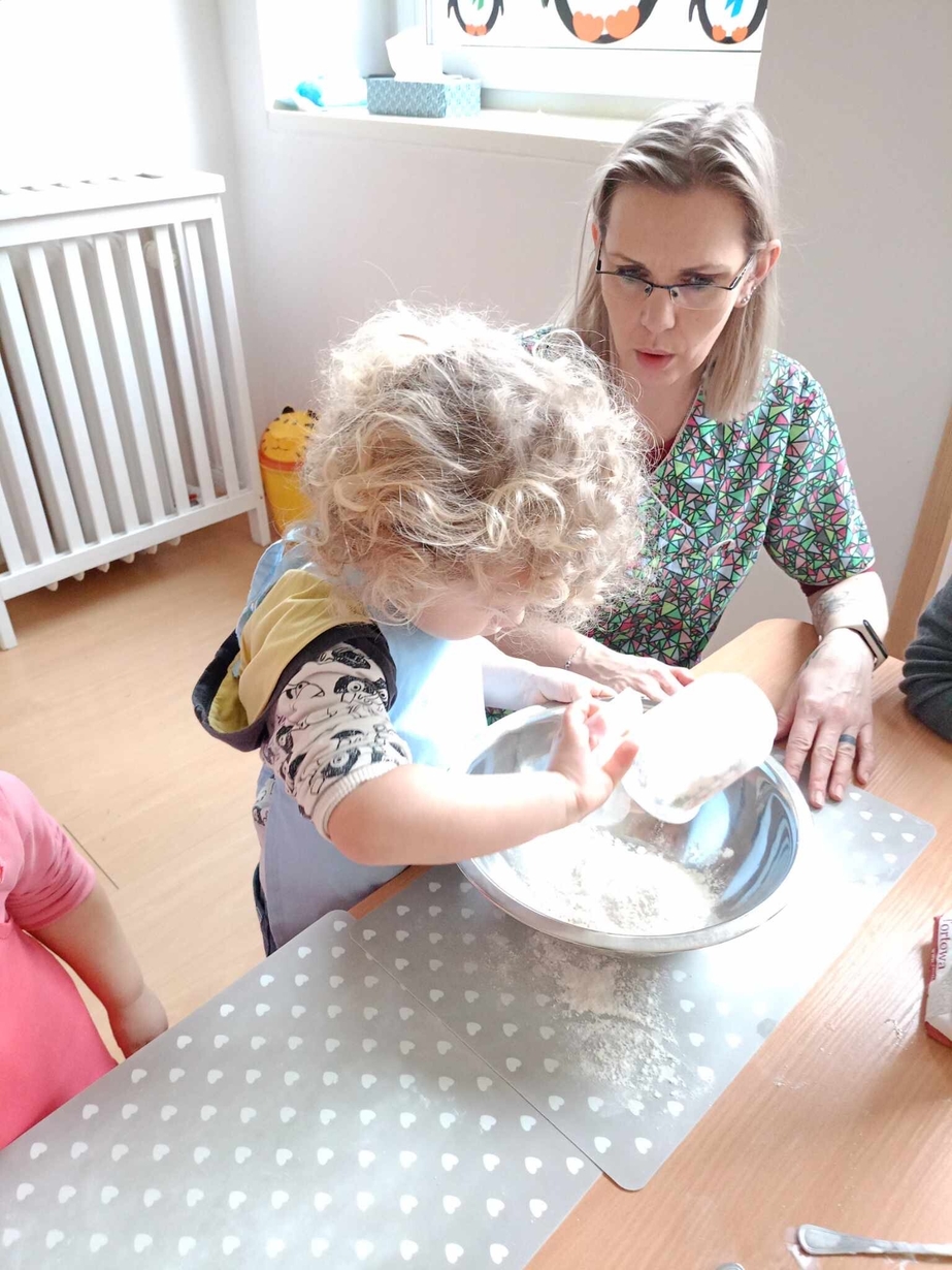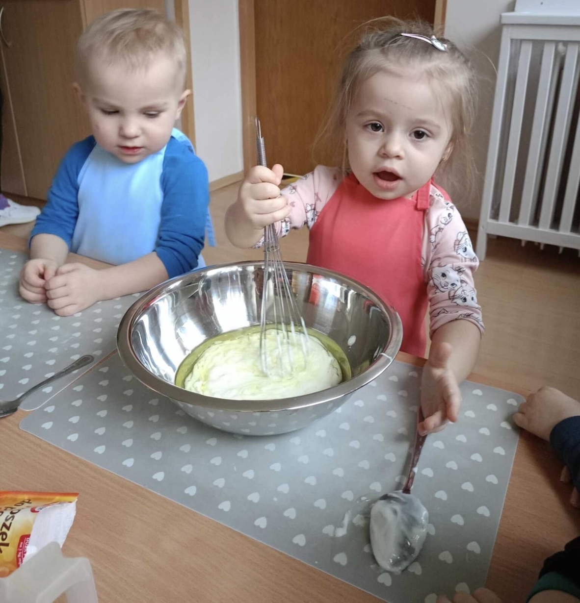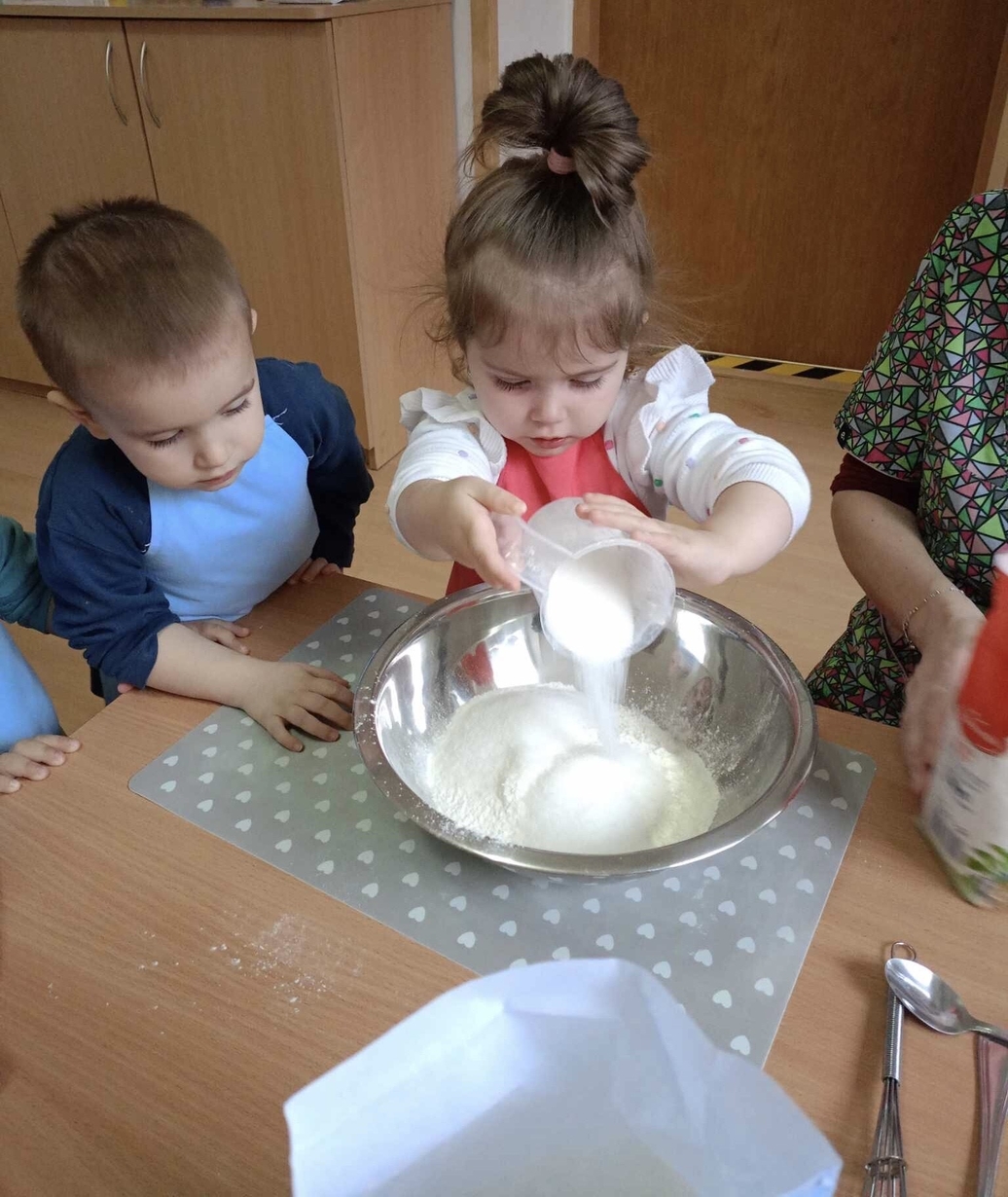 Misie z wielkim zapałem i zaangażowaniem nasypały ziarenek do karmnika.