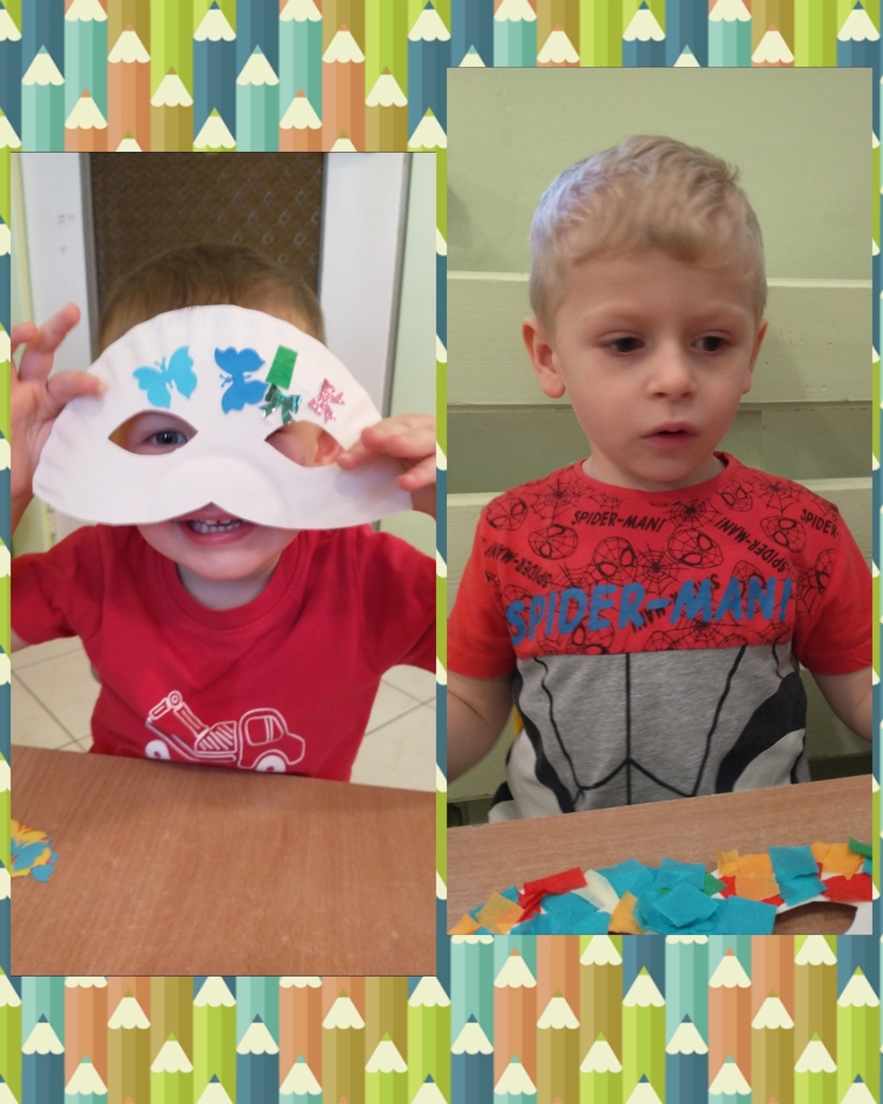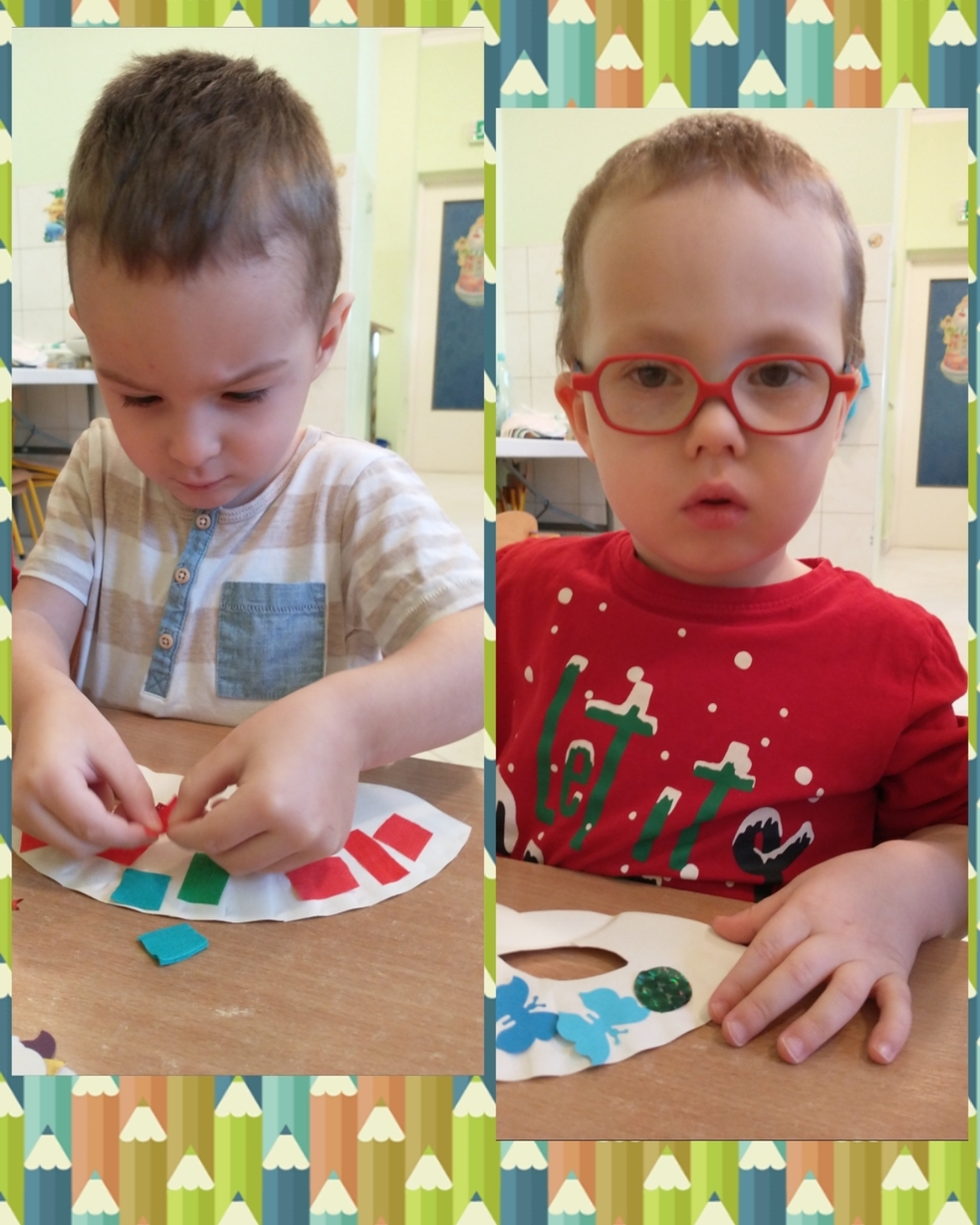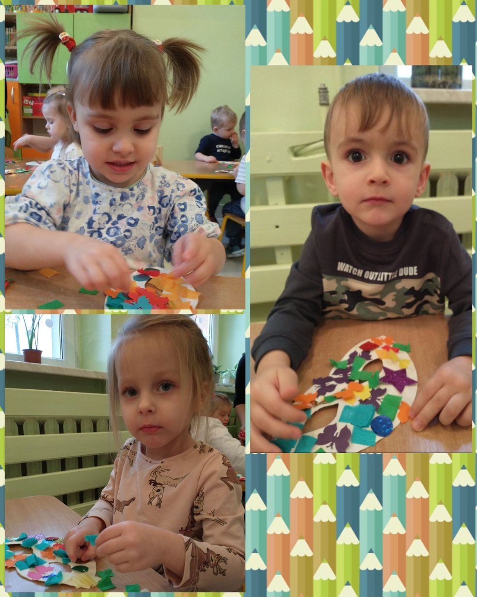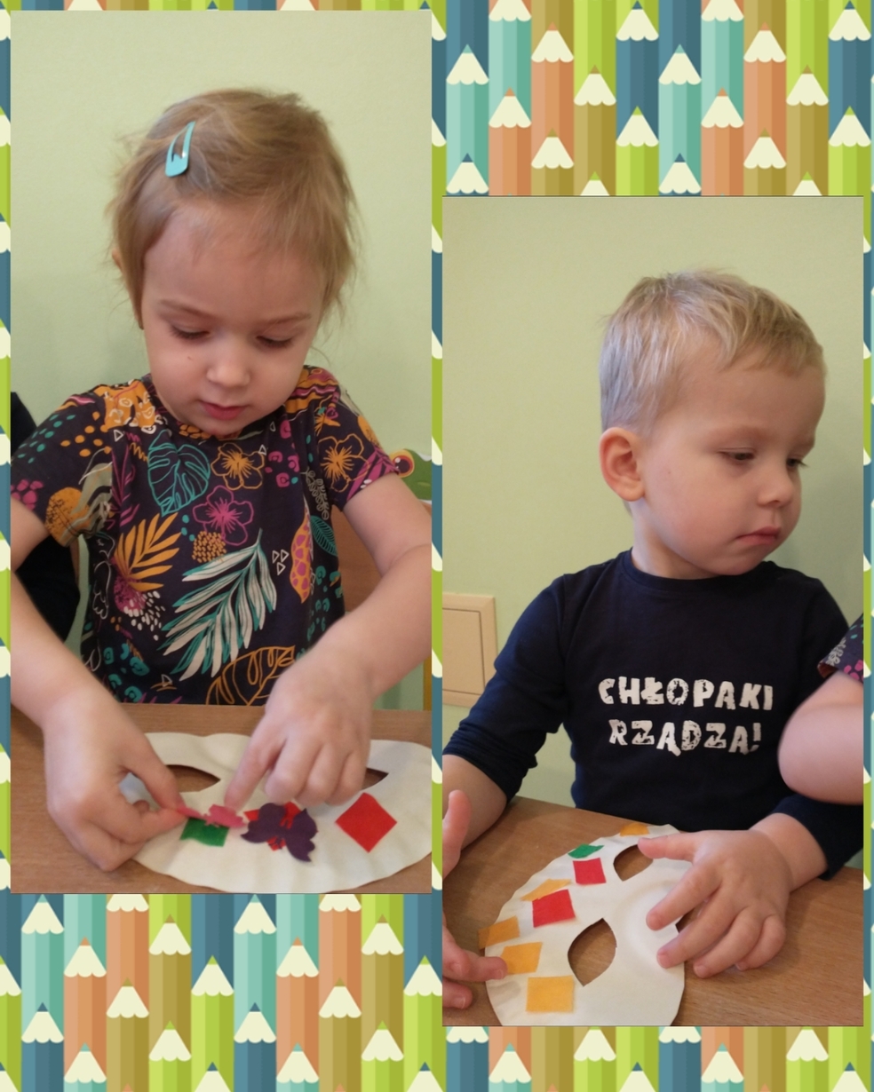 Do dyspozycji miały kolorową bibułę oraz papierowe kształty (błyszczące kółeczka, gwiazdki, kokardki oraz motylki).