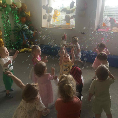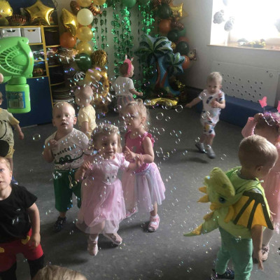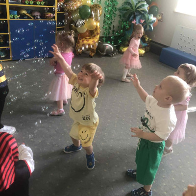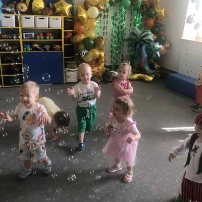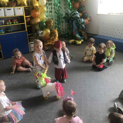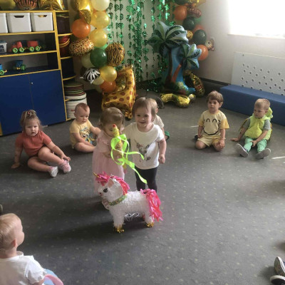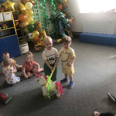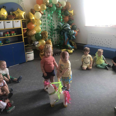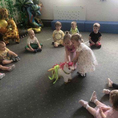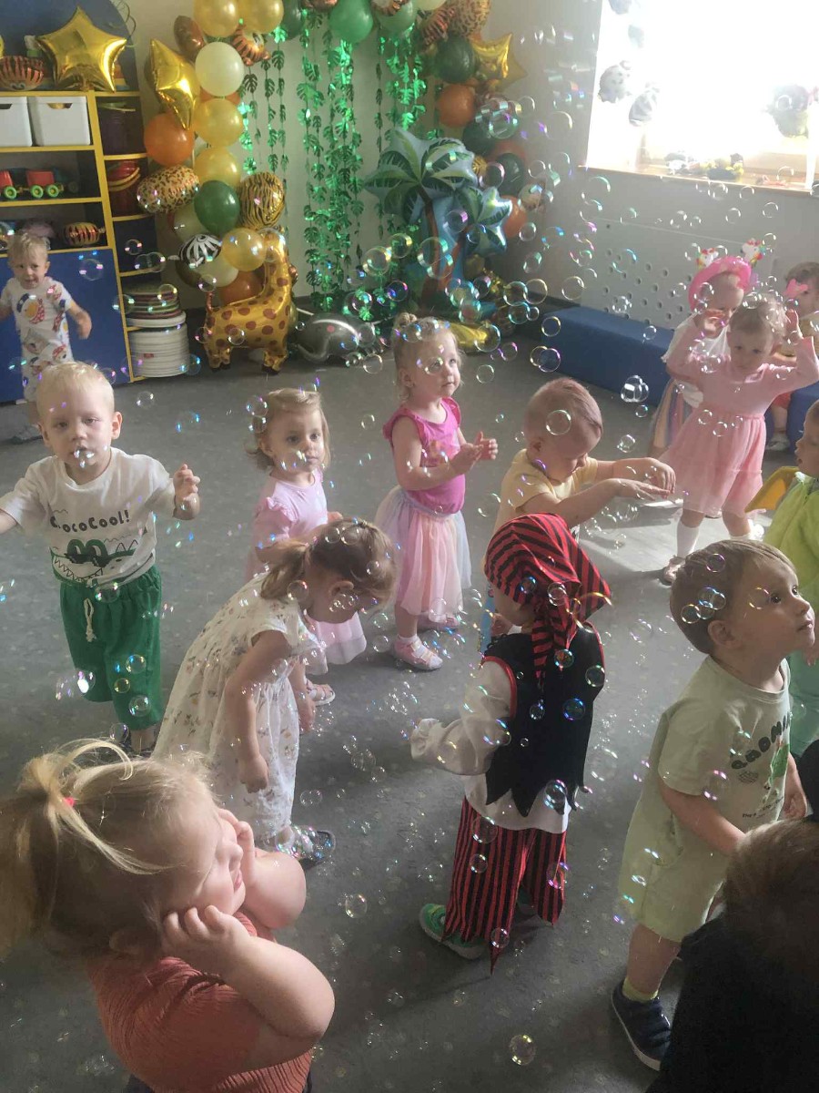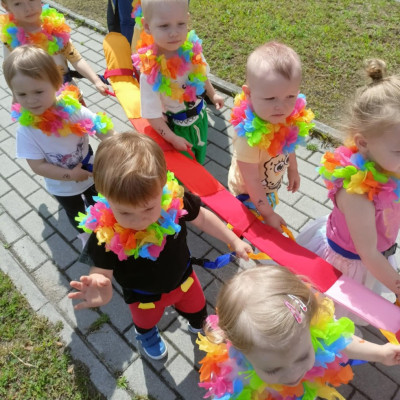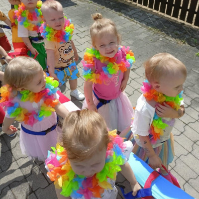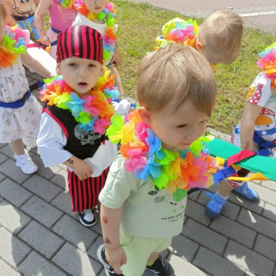 Zdjęcia przedstawiają dzieci podczas zabaw z okazji Dnia Dziecka.