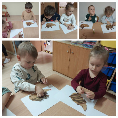 Zdjęcie przedstawia dzieci podczas jesiennych zabaw w żłobku
