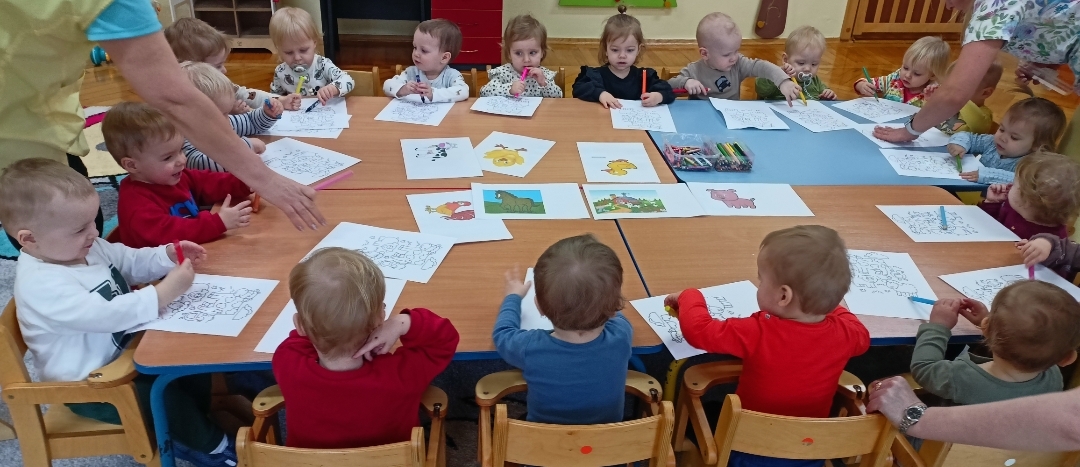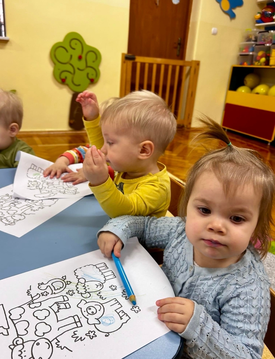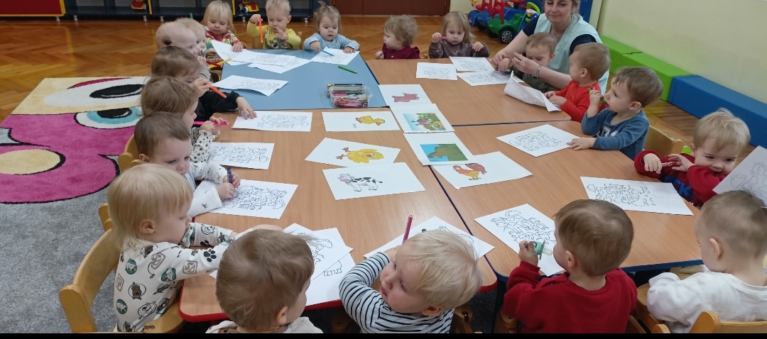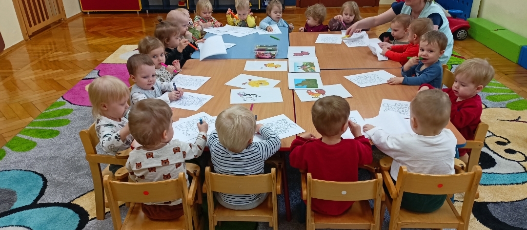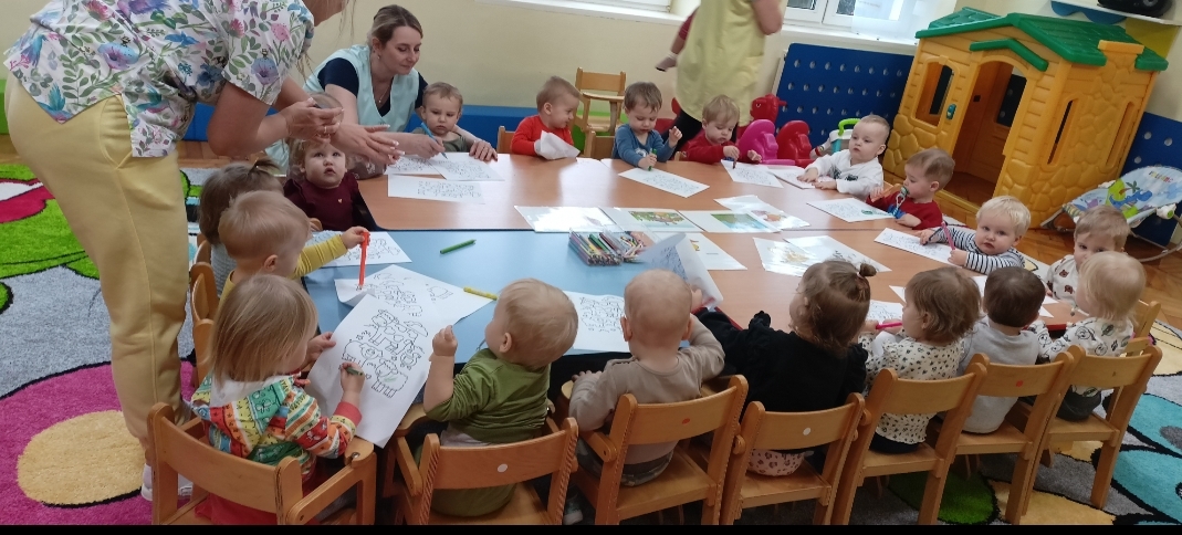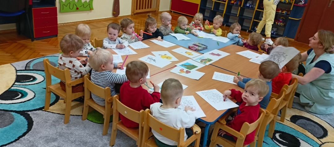 Nasze,, Biedroneczkom'' uwielbiają kolorować obrazki. Kolorowanie wpływa korzystnie na koncentrację i wspiera koordynację wzrokowo - ruchową, rozwija wyobraźnię. Dzieci z chęcią wymieniały się kolorami.