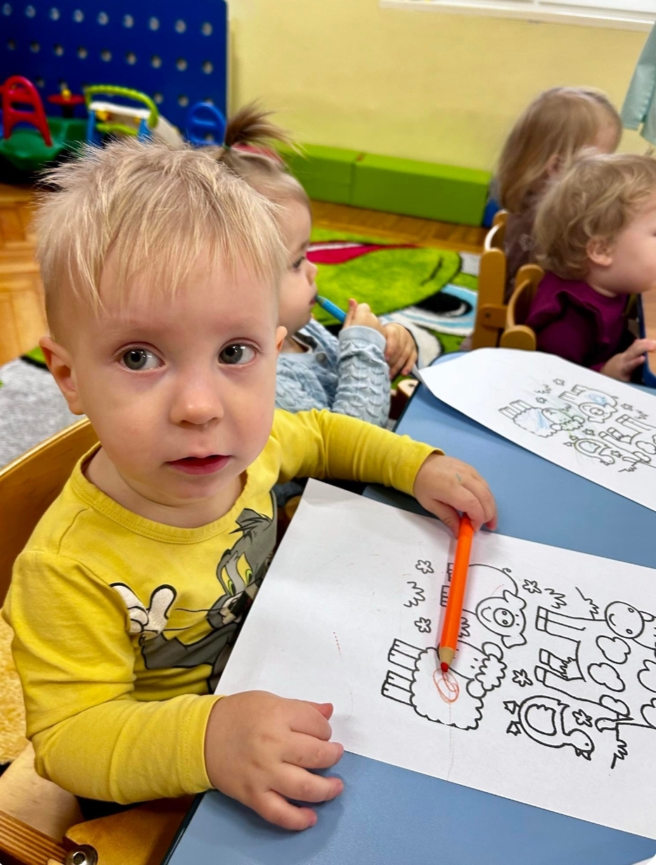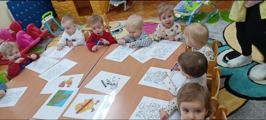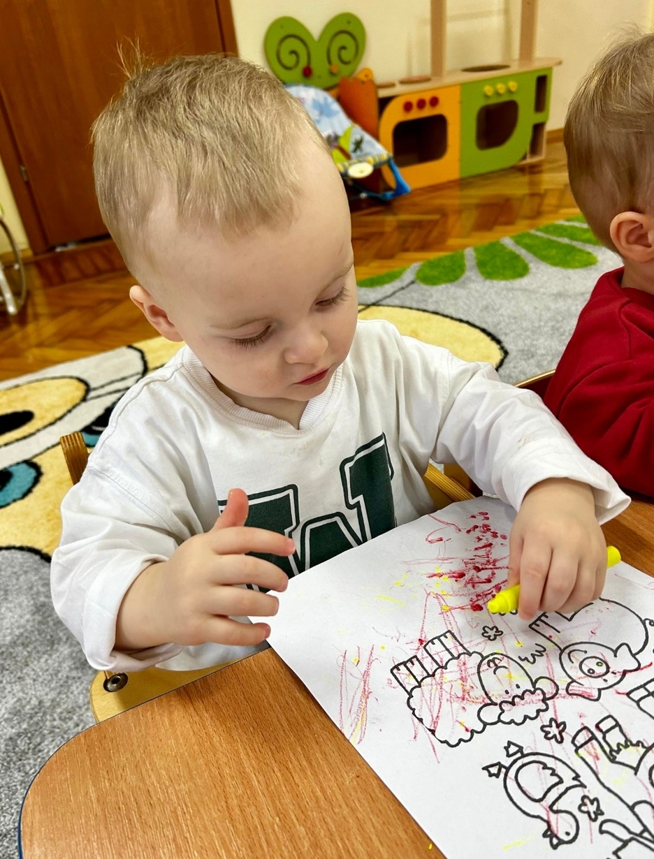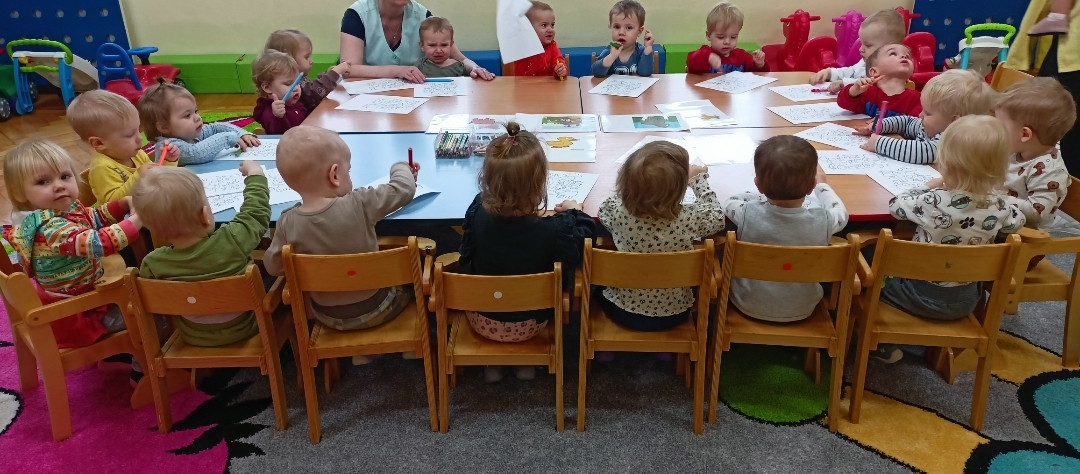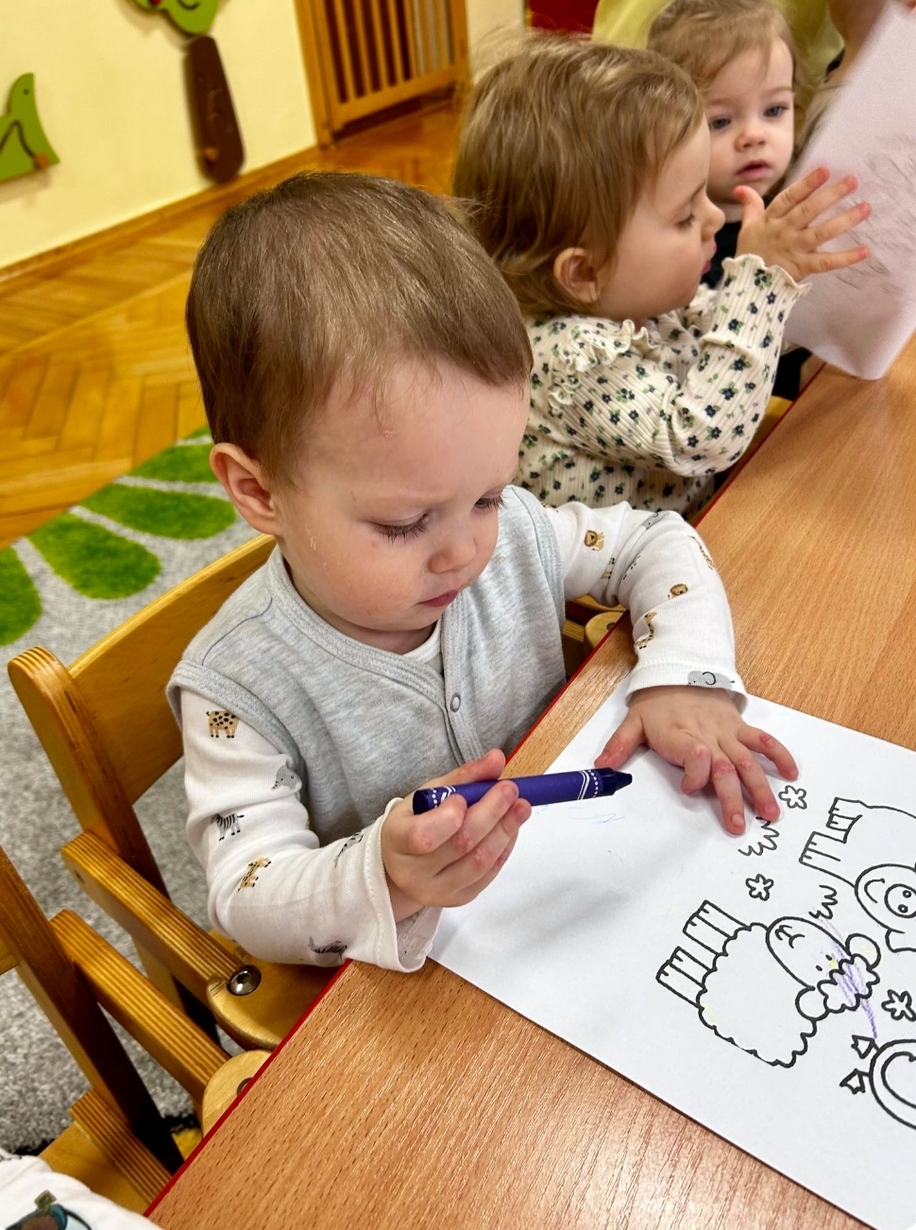 Nasze,, Biedroneczkom'' uwielbiają kolorować obrazki. Kolorowanie wpływa korzystnie na koncentrację i wspiera koordynację wzrokowo - ruchową, rozwija wyobraźnię. Dzieci z chęcią wymieniały się kolorami.